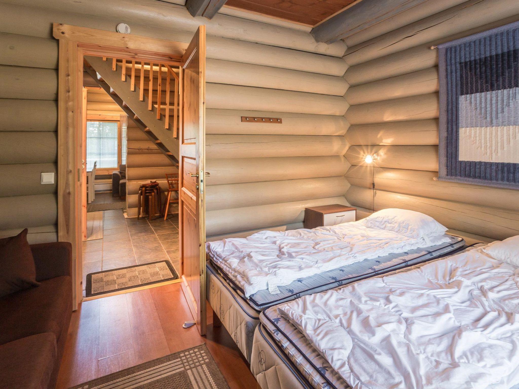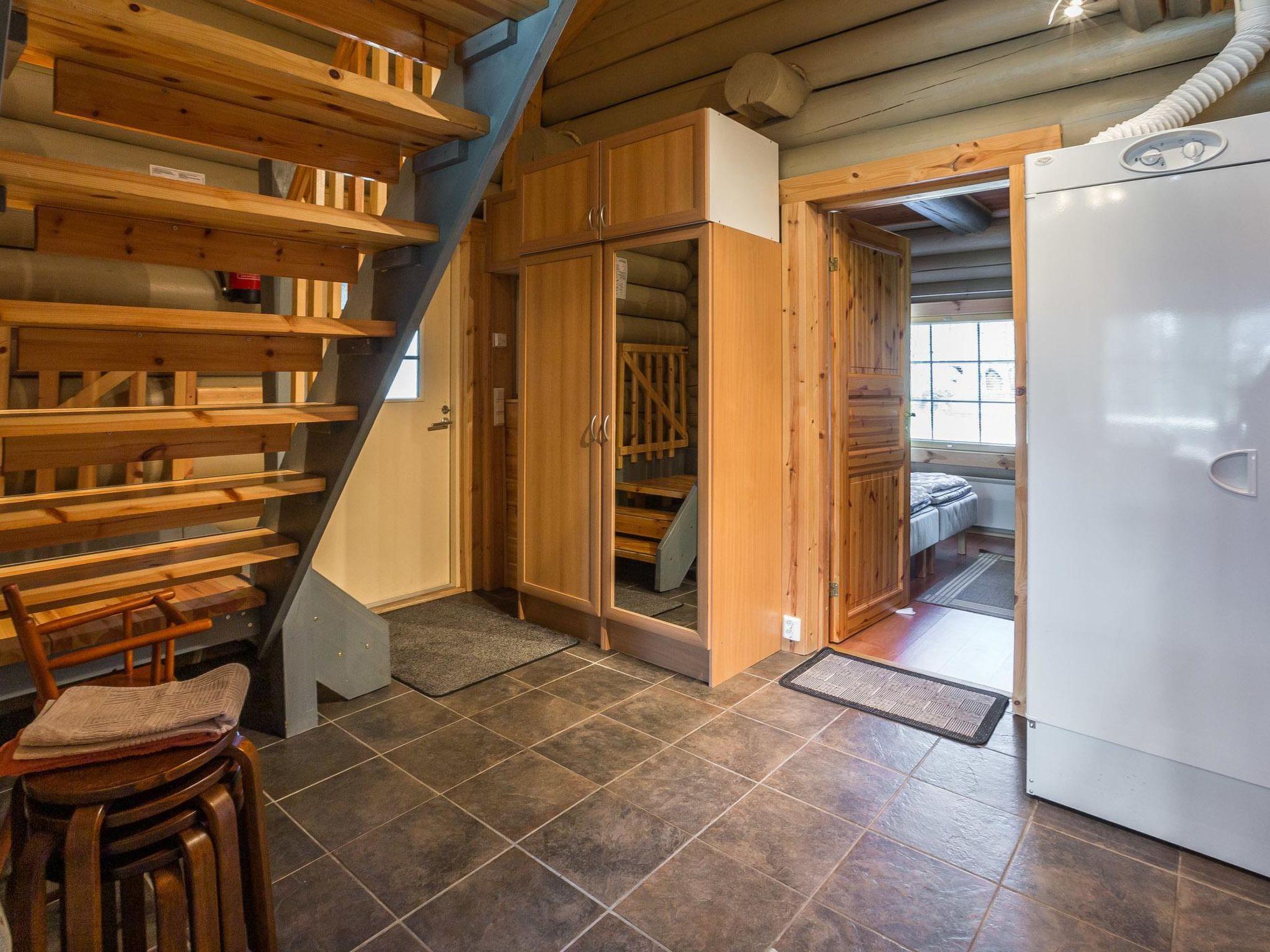 40 km north-east of Kolari, lake Ylläsjärvi 3 km, swimming beach 4,5 km. Log duplex apartment. Area 100 m² of which 30 m² on the loft. Livingroom/kitchen, two bedrooms each with two separate beds, loft with a large alcove with four beds, lobby TV for DVDs. Electric sauna, shower, separate toilet. Two porch, Wifi.