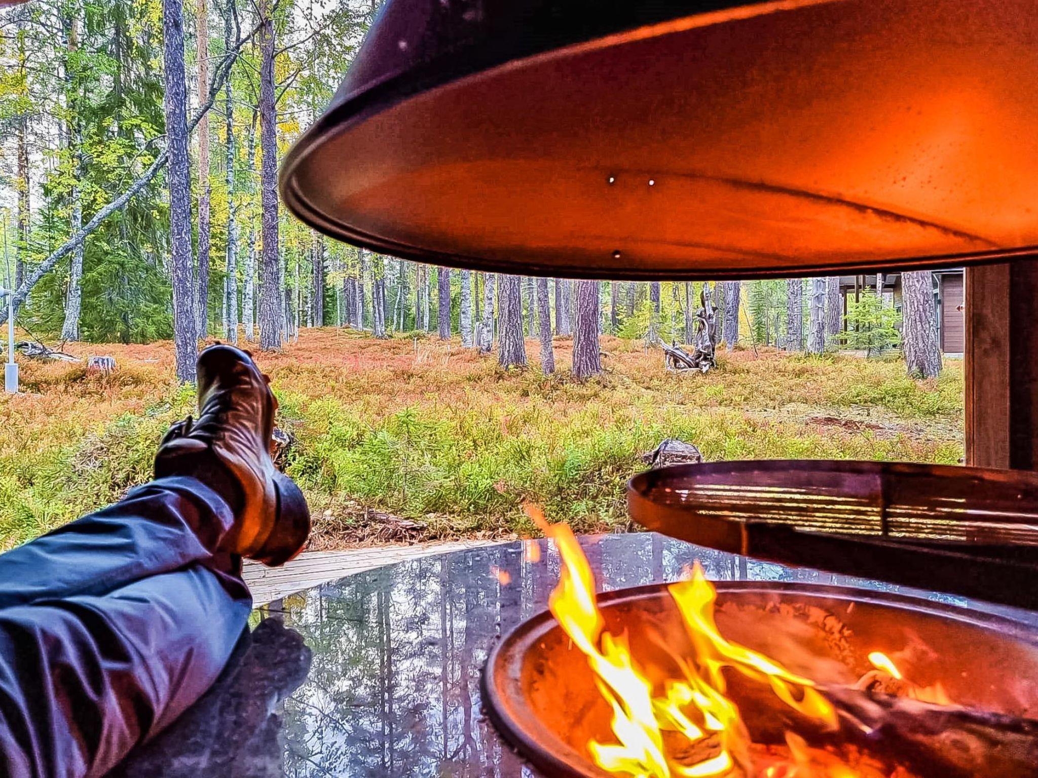 The cabin’s location is excellent—right next to the illuminated cross-country ski trail that circles Ylläs Fell and, in summer, beside the mountain-biking/fitness track. You can ski to the cabin from the west-side ski lift of Finland’s largest ski resort with only a short push.