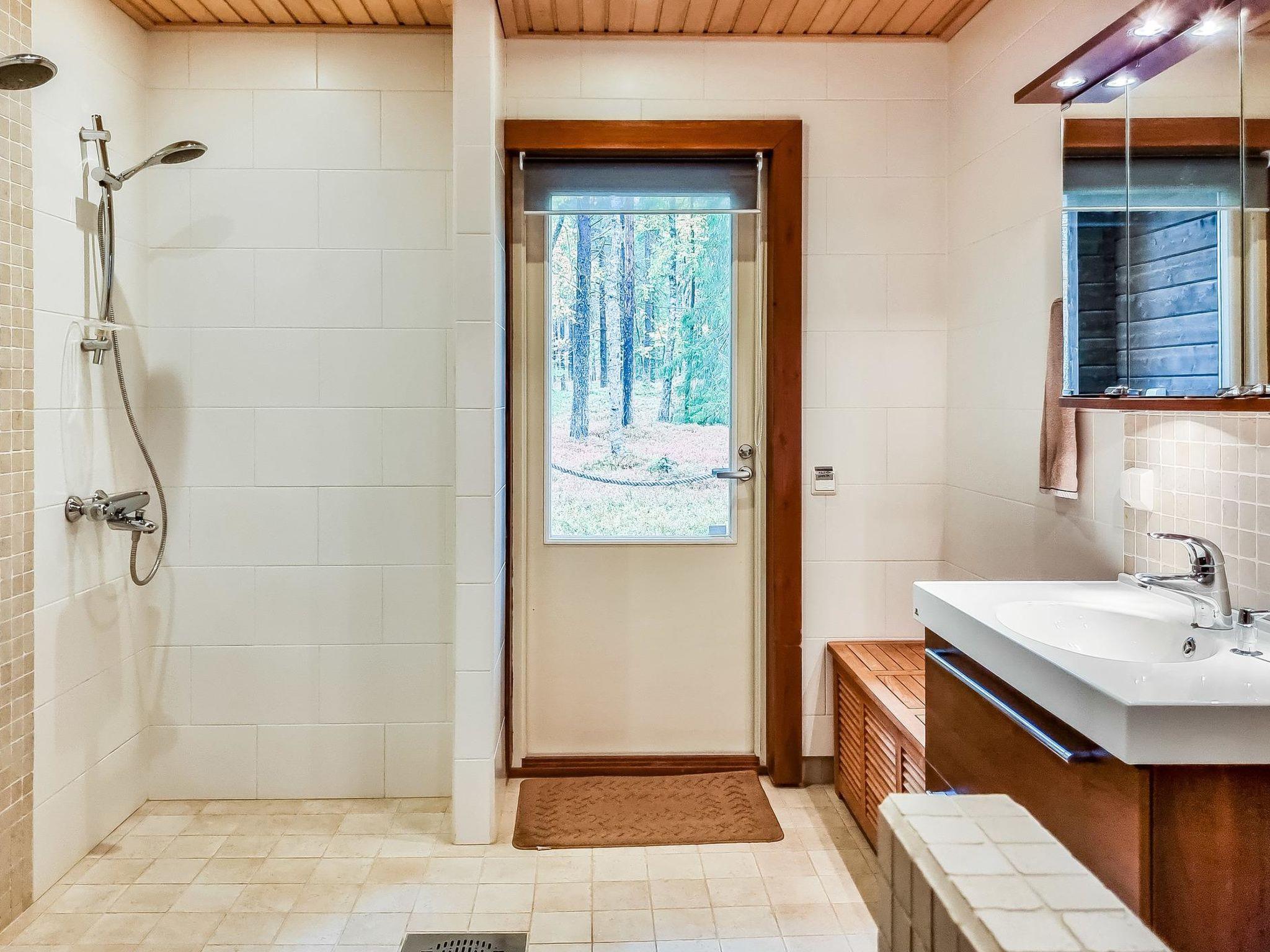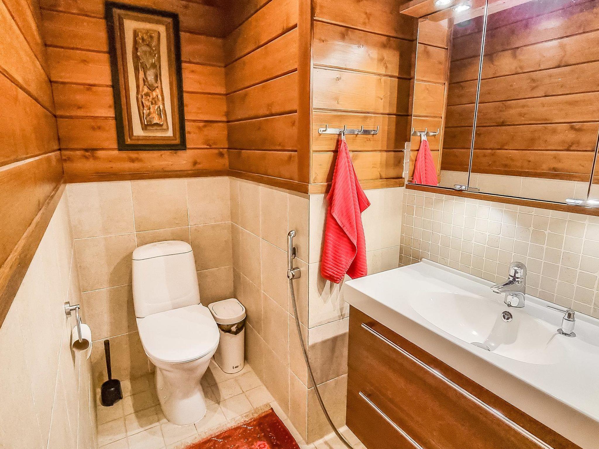High-quality, atmospheric 120 m² cabin with a spacious loft located in Ylläsjärvi village, 37 km northeast of Kolari railway station. The cabin features a well-equipped, high-standard kitchen, dining area, and a high-ceilinged, cozy living room with a fireplace. There are two bedrooms: one with two separate beds and the other with a double bed. The loft has two separate beds, a double bed, and a sofa set. There is a glass wall between the loft and the living room. Sauna (instant ready stove), bathroom with 2 showers and a WC, plus a separate WC. Two drying cabinets and a washer–dryer tower. Covered cooling-off terrace adjacent to the sauna. Heated storage/ski maintenance room and a spacious carport. Covered outdoor spaces on both sides of the house. Separate kota-style lean-to shelter in the yard.