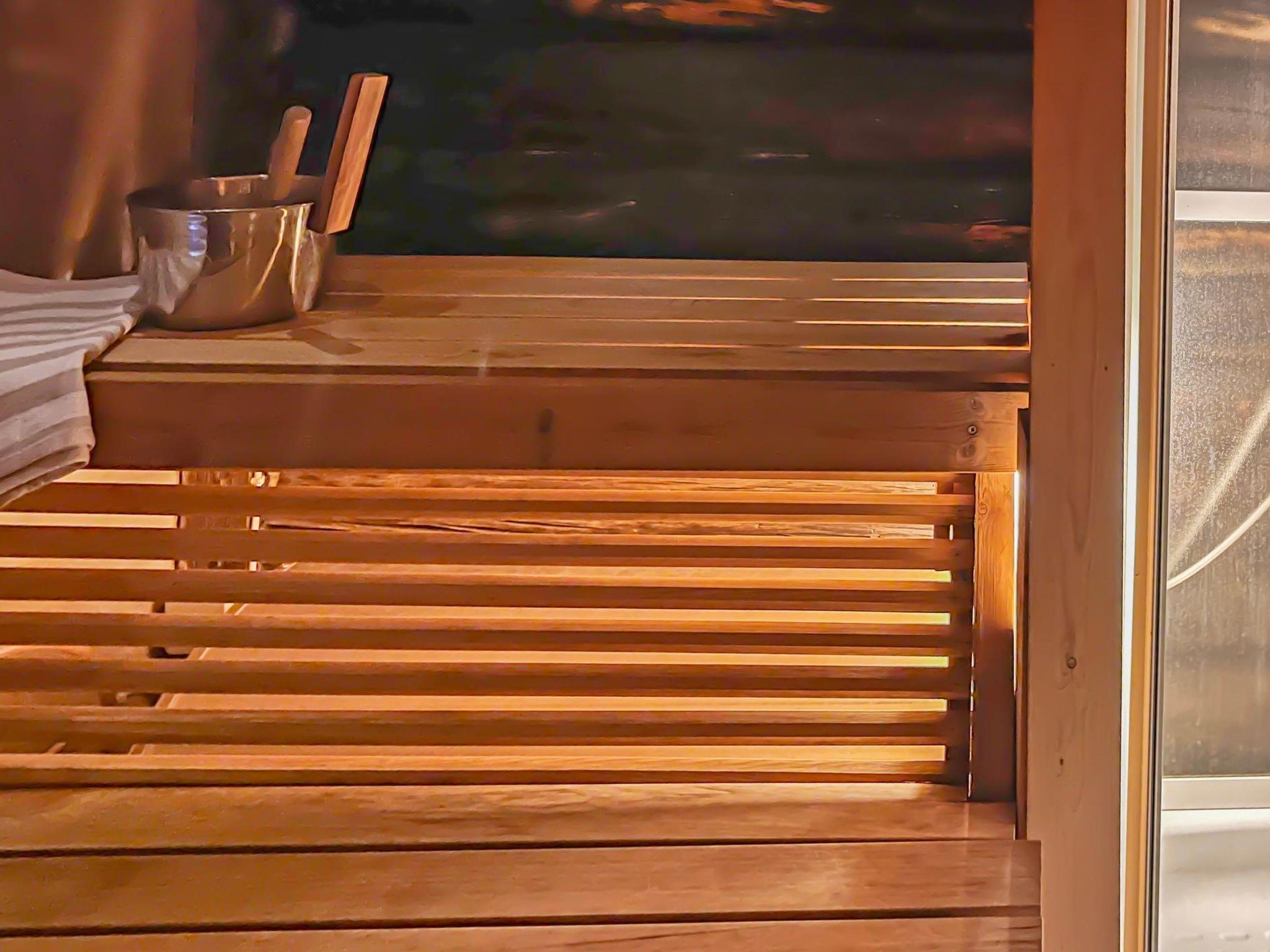 In the upstairs is open loft (15 m²) there is a double bed (width 150 cm) and 2 single beds, plus a child's bed that can be extended at the end. There is a separate toilet in the cottage. In the sauna there is a instantly ready -stove and shower stall next to the benches. Access to the sauna is from the outside.