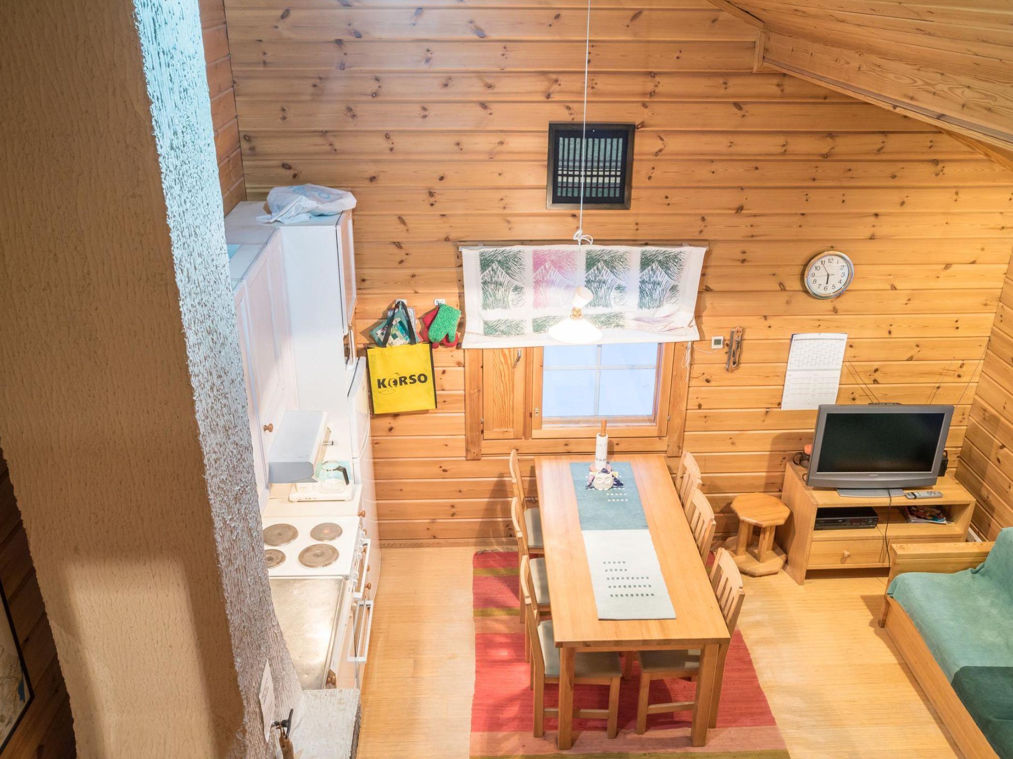 A log duplex apartment located 165 km north of Rovaniemi in Ylläsjärvi village Palovaara area. Built 1989. Distance to the services of Hotel Ylläsrinne is 500 meters. Livingroom/kitchen, two bedrooms (one with a double bed and one with a bunk beds), loft (9 m², steep stairs) with two beds, electric sauna, washing room, terrace, storage room, toilet.