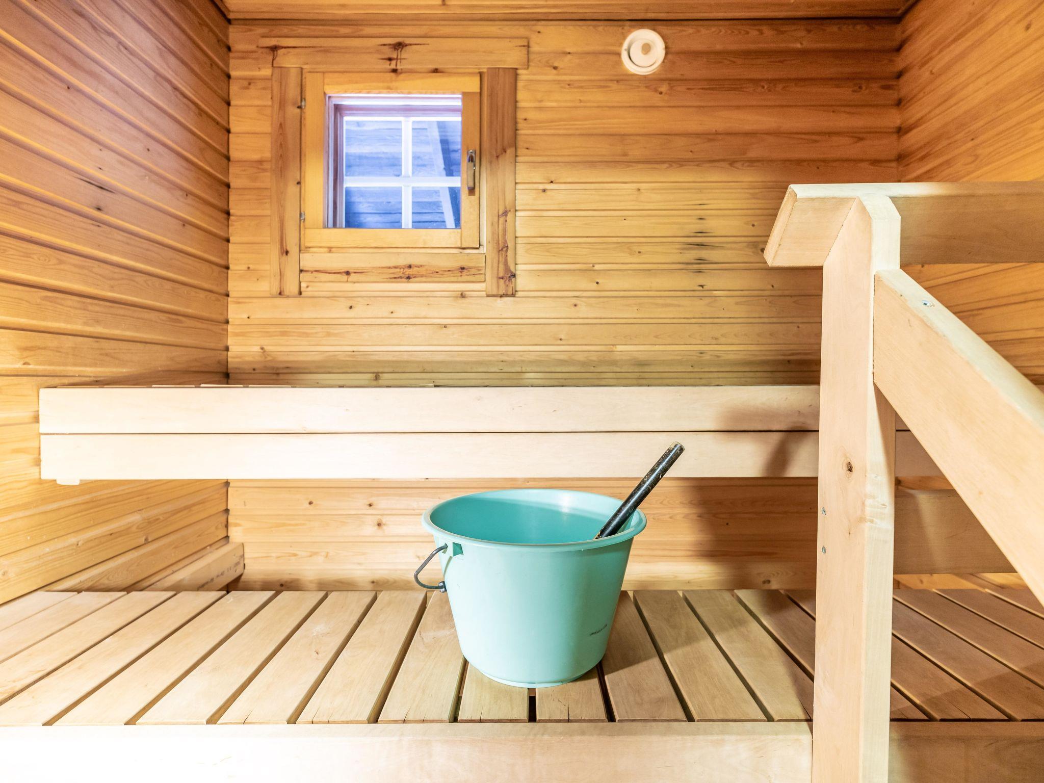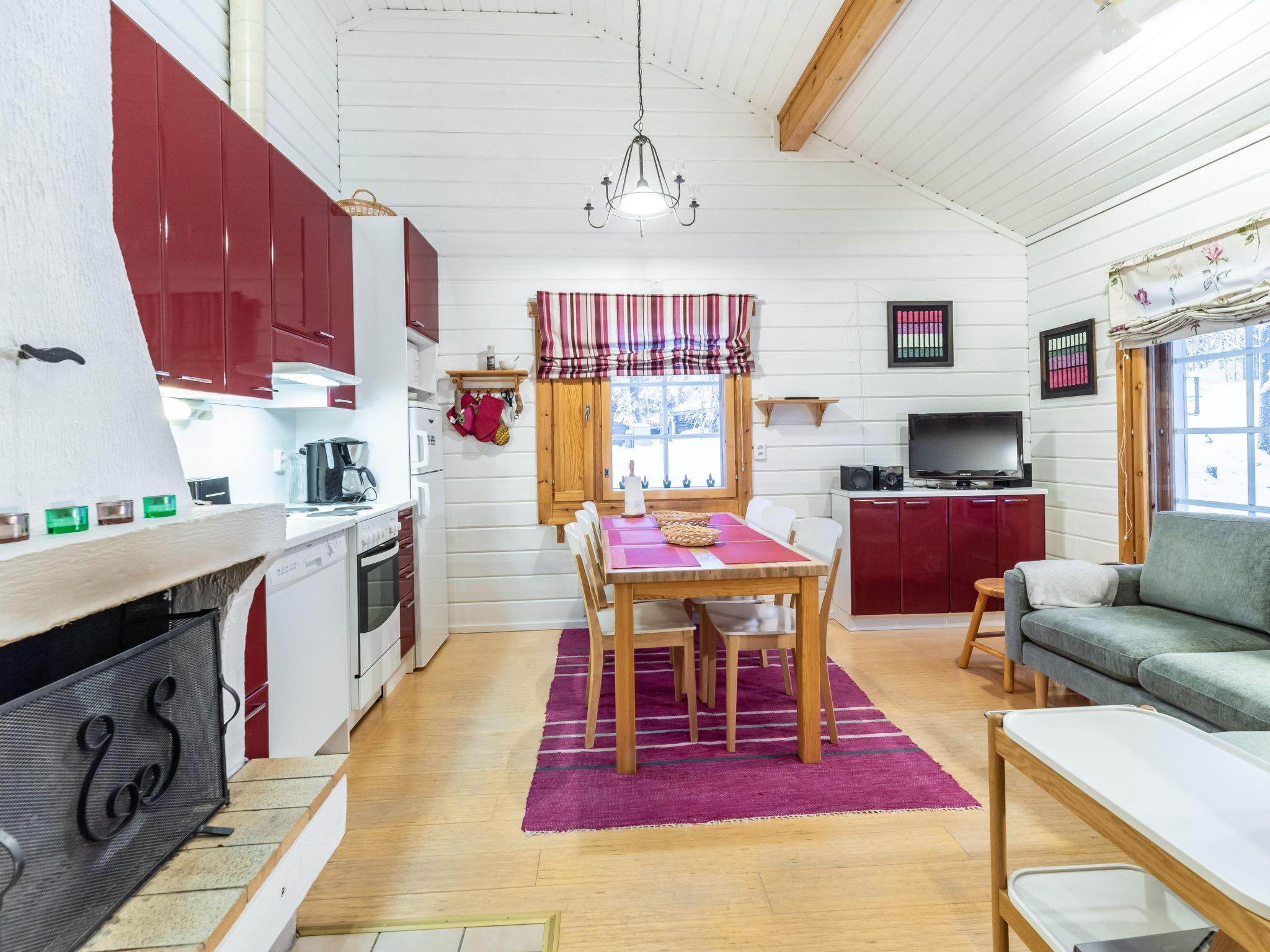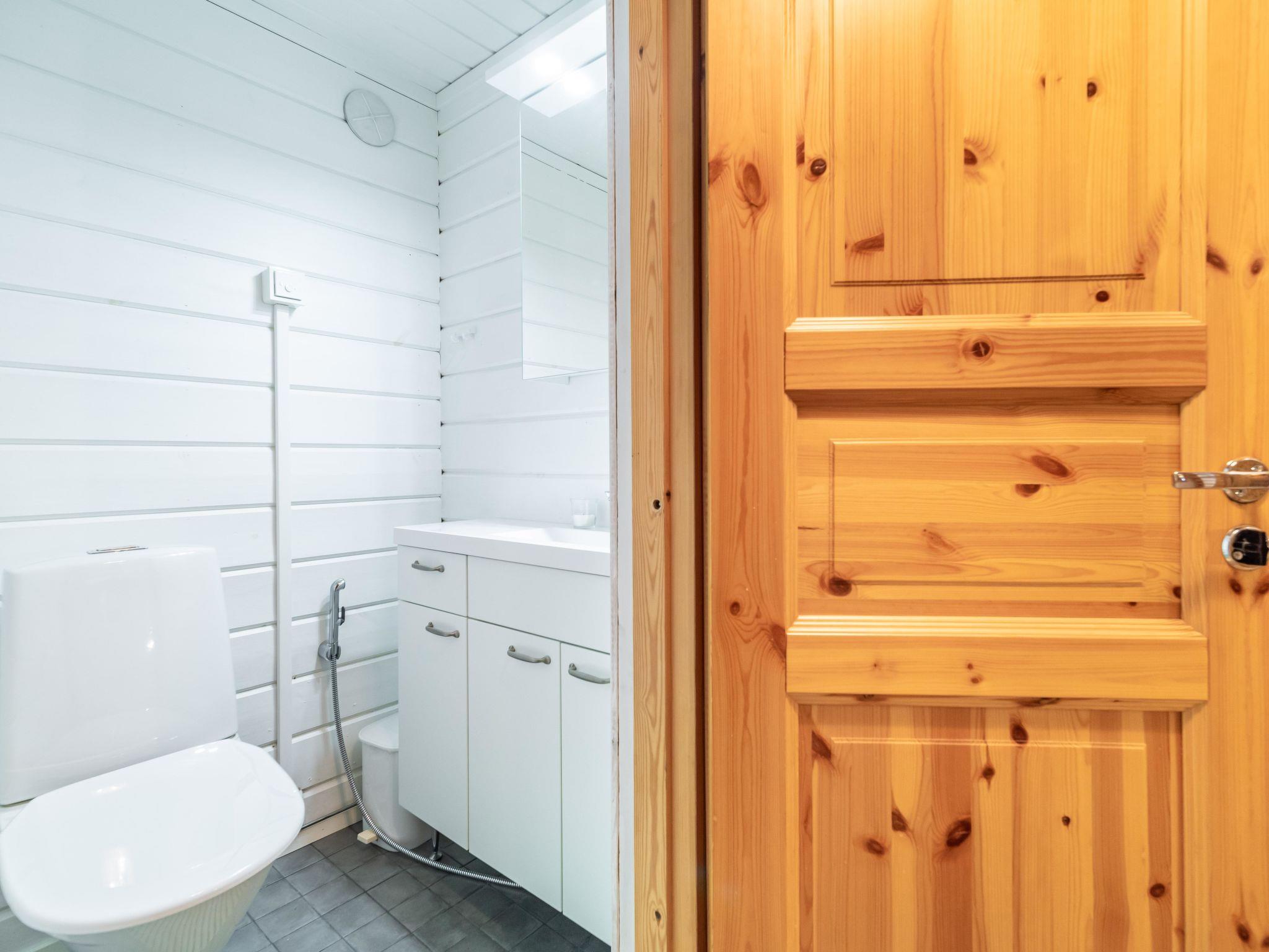 Livingroom/kitchen, two bedrooms (one with a double bed and one with a bunk bed), electric sauna, washing room, terrace, storage room, toilet.