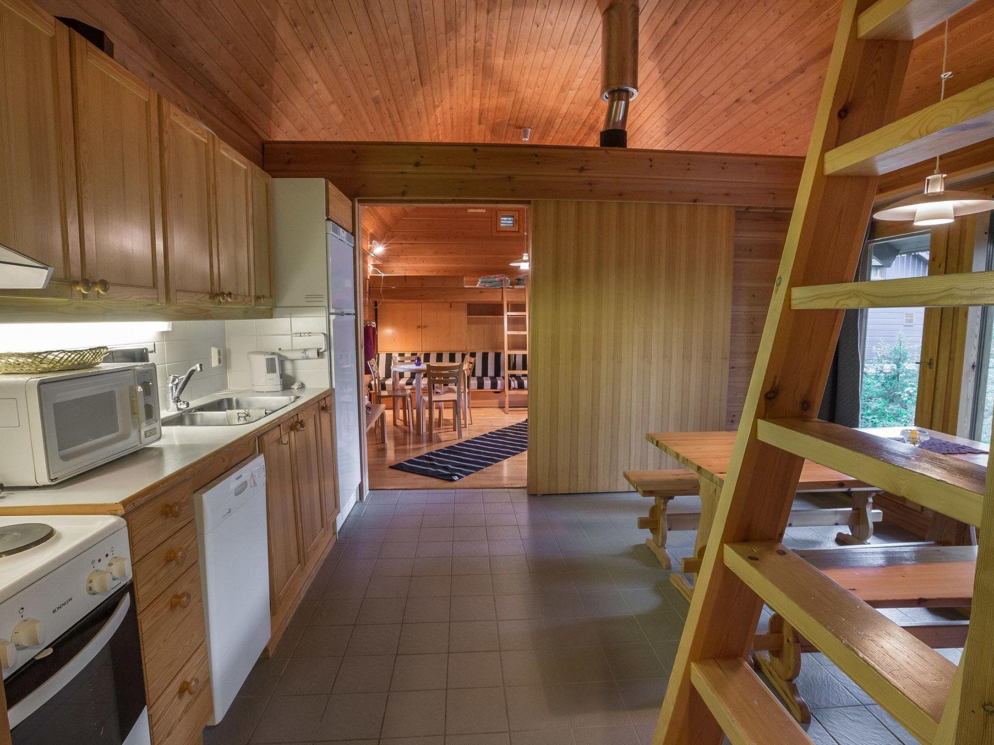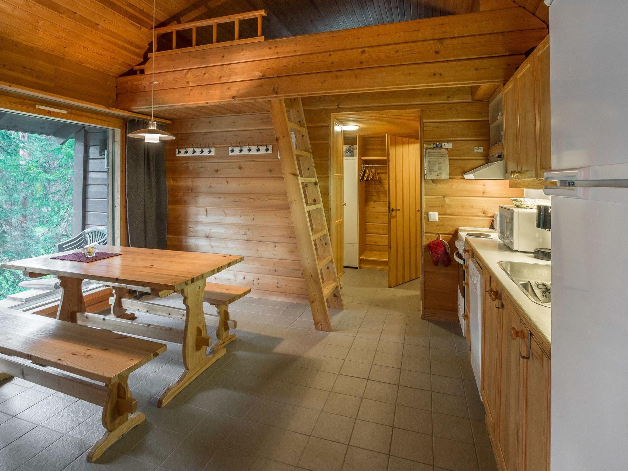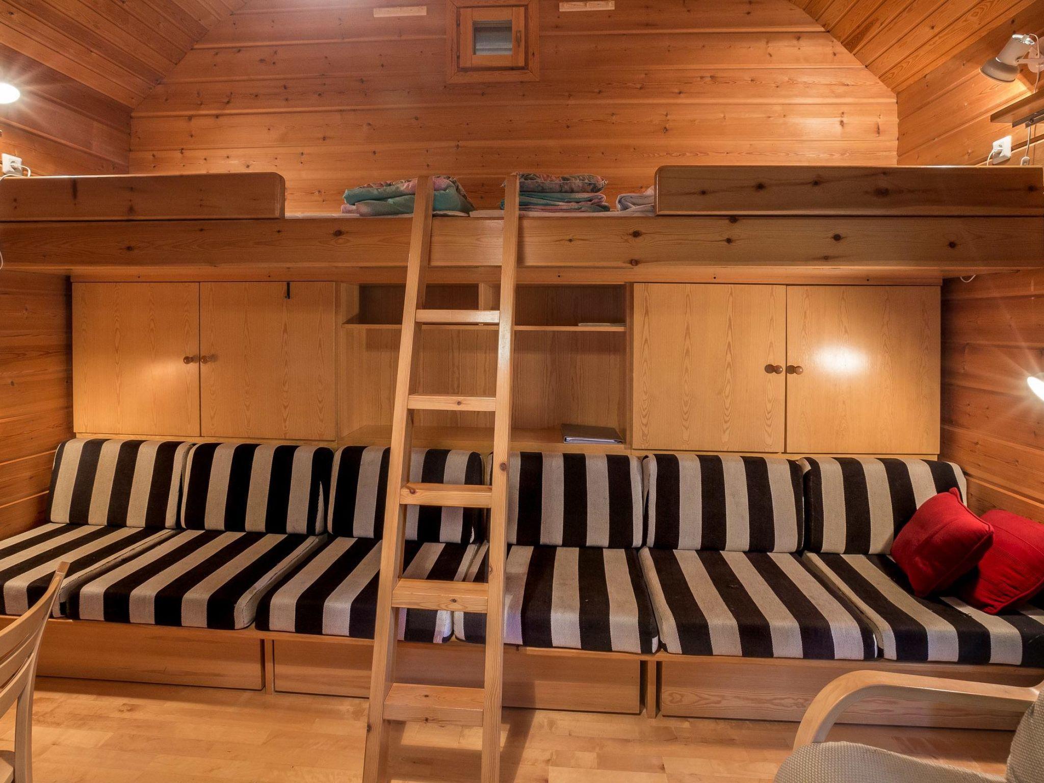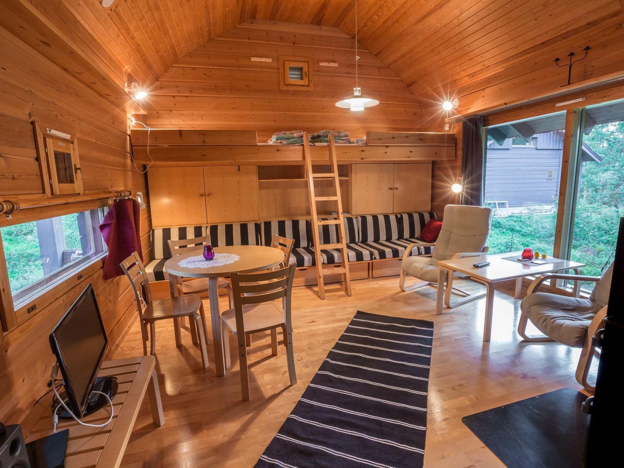 Built 1989. Kitchen, living room with bed for 2 and upper bed for 2, loft with 2 beds, electric sauna, washing room/toilet, storage room.