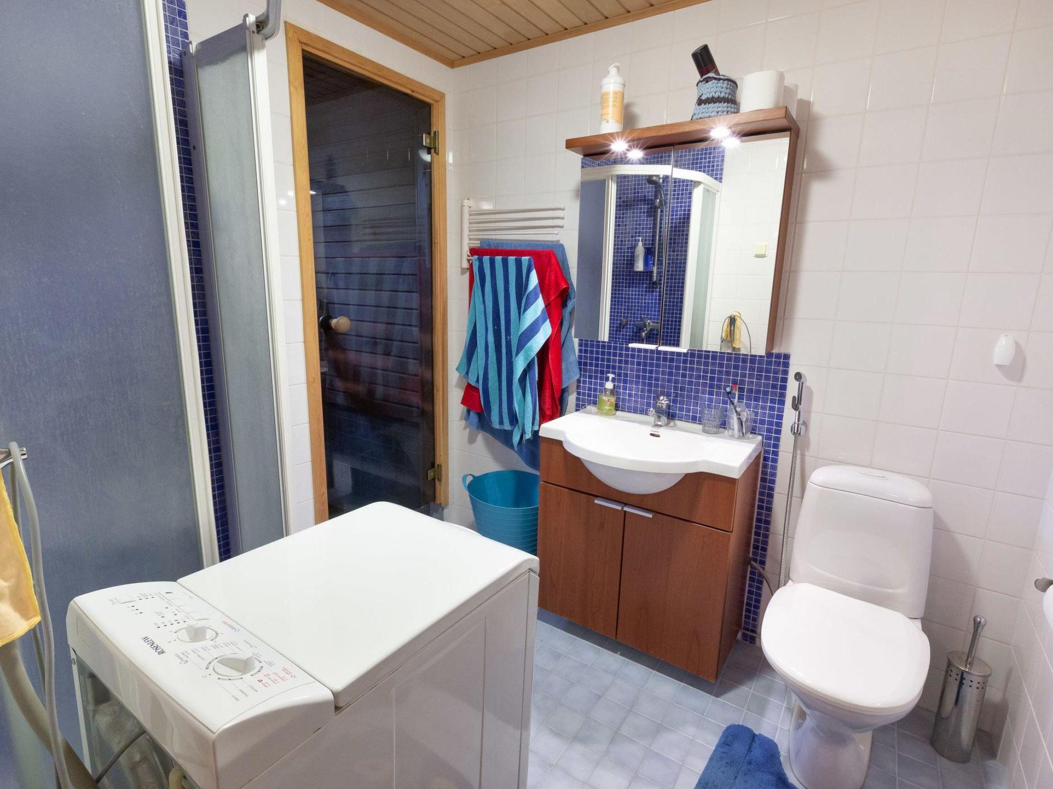 A log duplex apartment located 165 km north of Rovaniemi in Ylläsjärvi village. Built 2003. Livingroom/kitchen, downstairs bedroom with two beds, upstairs with 2 beds and additionally a sleeping alcove with two beds, electric sauna with "instant stove", washing room, toilet.Other apartment of this house is number 17419. Stock with ski waxing rack. Shared with Alppitalo A (17419) apartment.