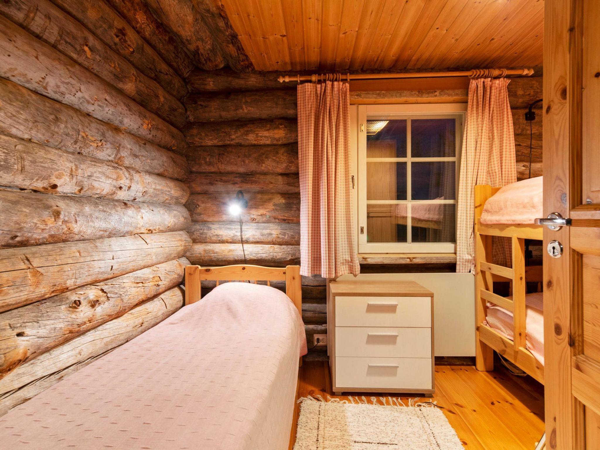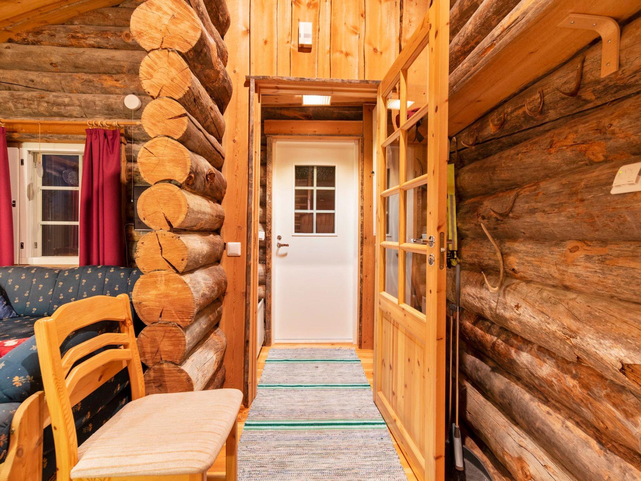 40 km North-East of Kolari, lake Ylläsjärvi 2,5 km, swimming beach 4 km. Log duplex cabin 1988. Livingroom/kitchen , two bedrooms, one with a double bed and one with a bunk bed and one separate bed. Electric sauna, shower, separate toilet. Open porch. Loft is not suitable for accommodation because of lack of emergency exit.