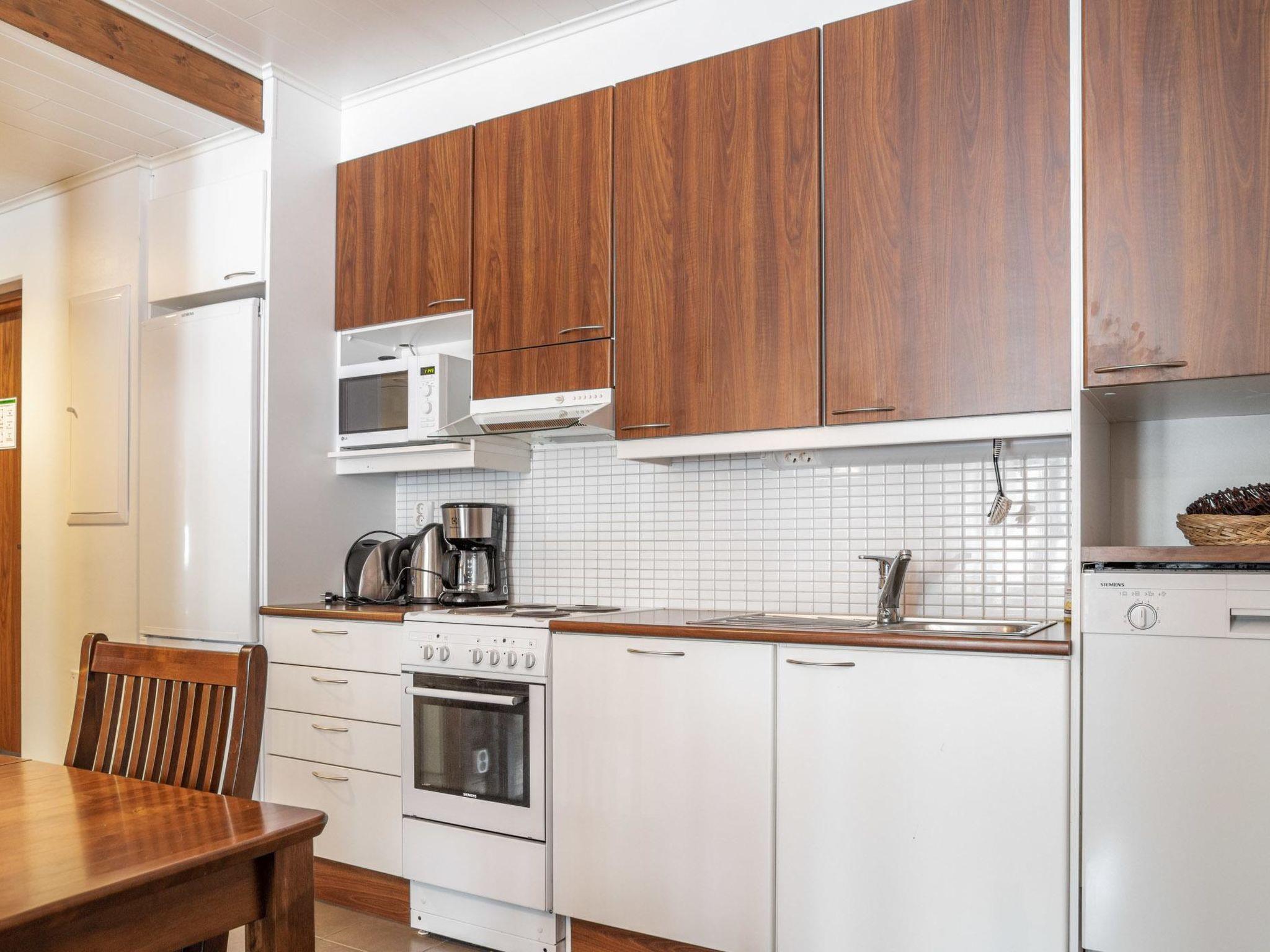 40 km north of Kolari, lake Ylläsjärvi 4 km, swimming beach 5,5 km. Apartment in an apartment hotel, built 2008. Livingroom/kitchen with an extendable bed sofa, one bedroom with two separate beds, one sleeping alcove with a bunk bed, electric sauna, washing room/toilet. Please note that firewood is not included to the price.