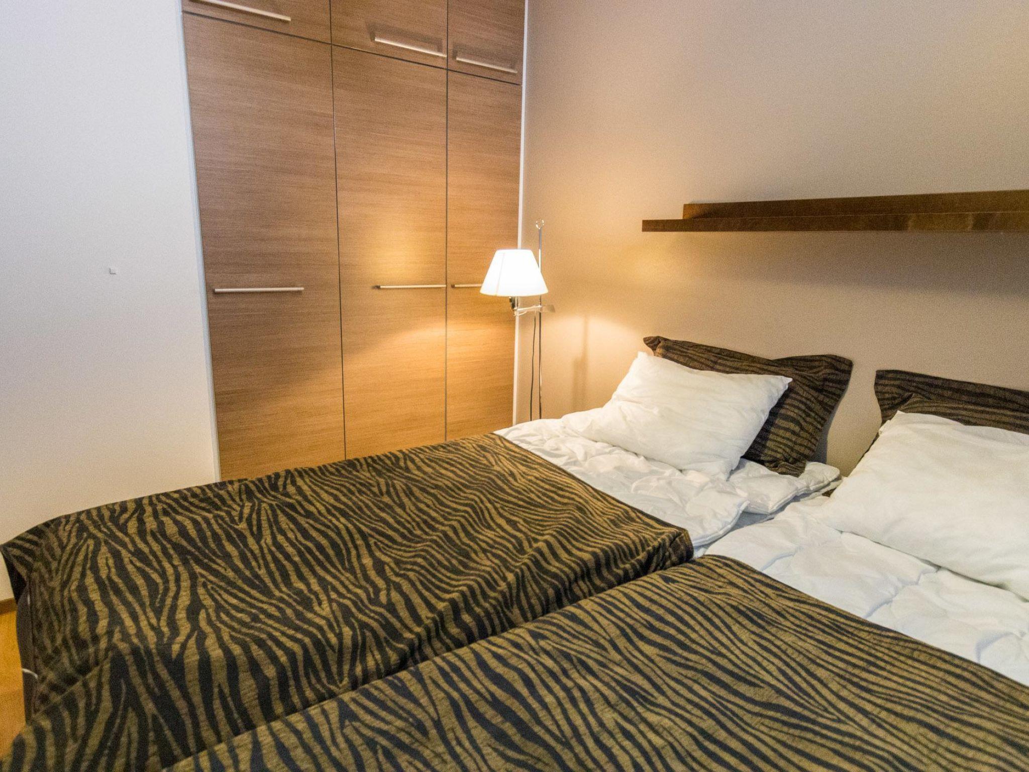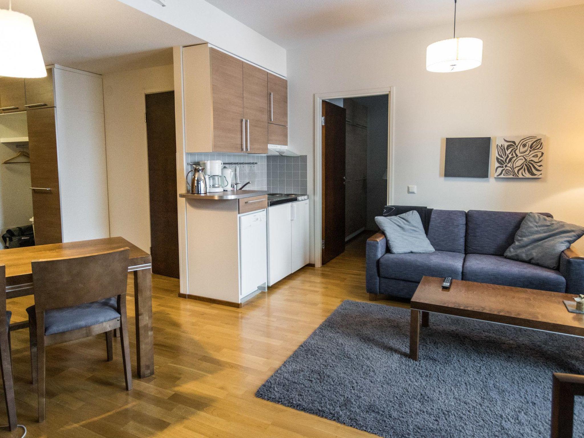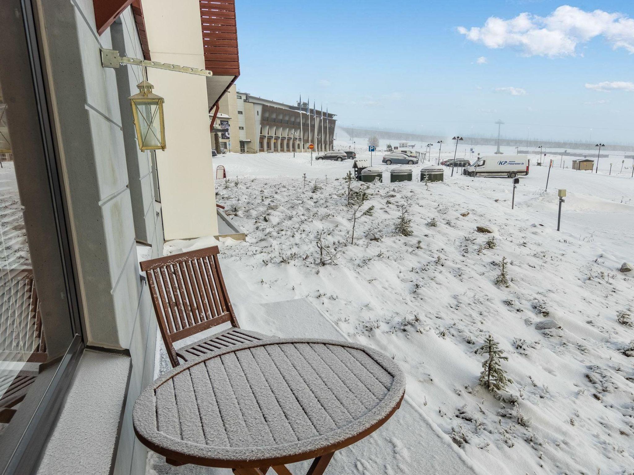 165 km to the north from Rovaniemi, in Ylläsjärvi tourist village, apartment hotel nearby Sport Resort Ylläs, built in 2006. Apartment on the ground floor facing to the Ylläsjärvi village: living room/kitchen (spreadable sofa bed, width 120cm), bedroom (two beds), washroom/WC and sauna. Note! The kitchen is quite small (kitchenette), no baking oven. Drying cabinet is located on the washroom’s wall and it is smaller than usual. There is a shared ski maintenance room located on the ground floor of the house. Notice! It is not allowed to charge an electric car at a power point for a car in the yard.