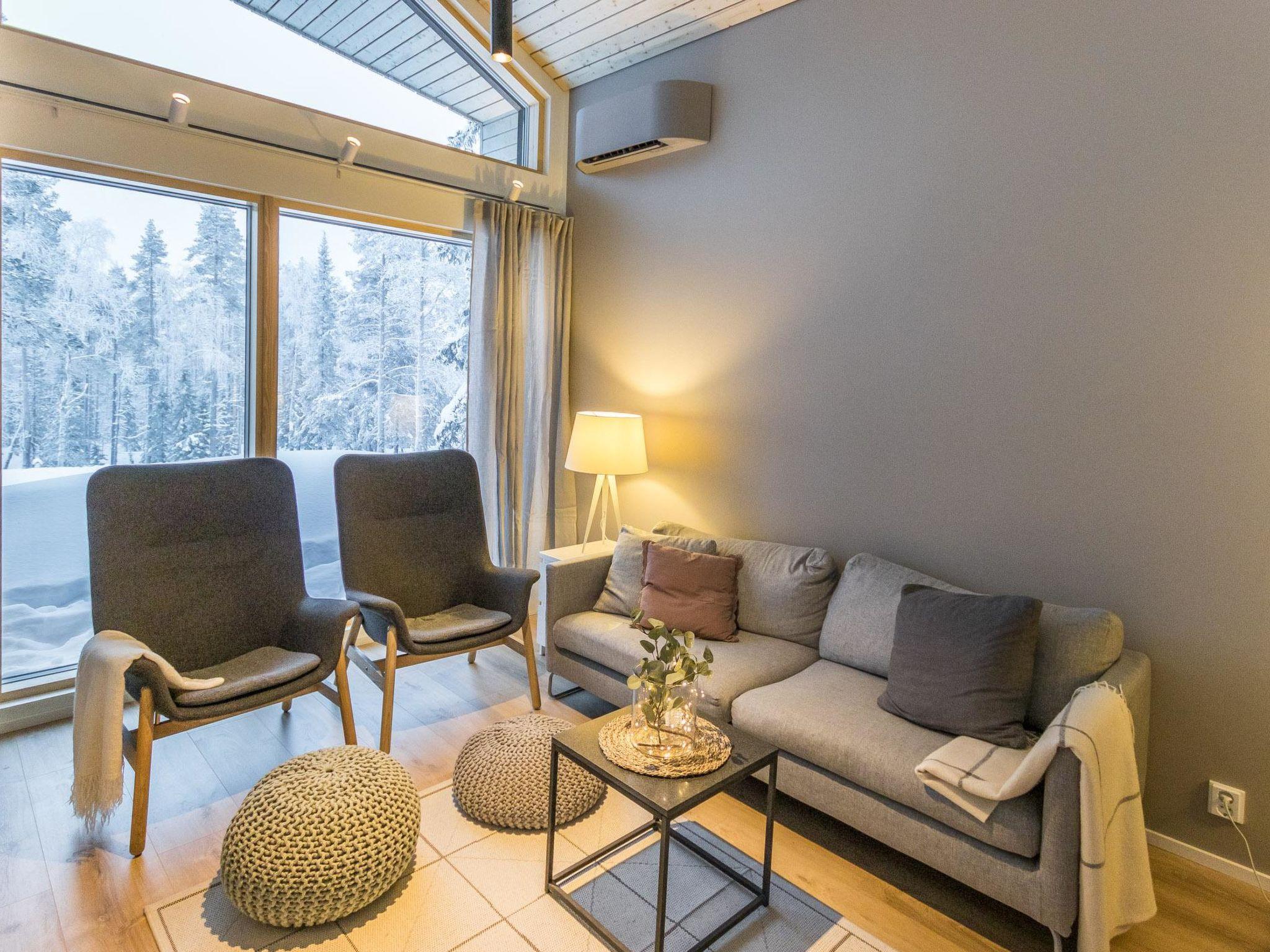 The cottage is equipped with a cozy living area, a well-equipped kitchen, and a spacious sauna for relaxation after a day's adventures. Additionally, you can enjoy quality time by the fireplace or on the large outdoor terrace enjoying the spring sun.