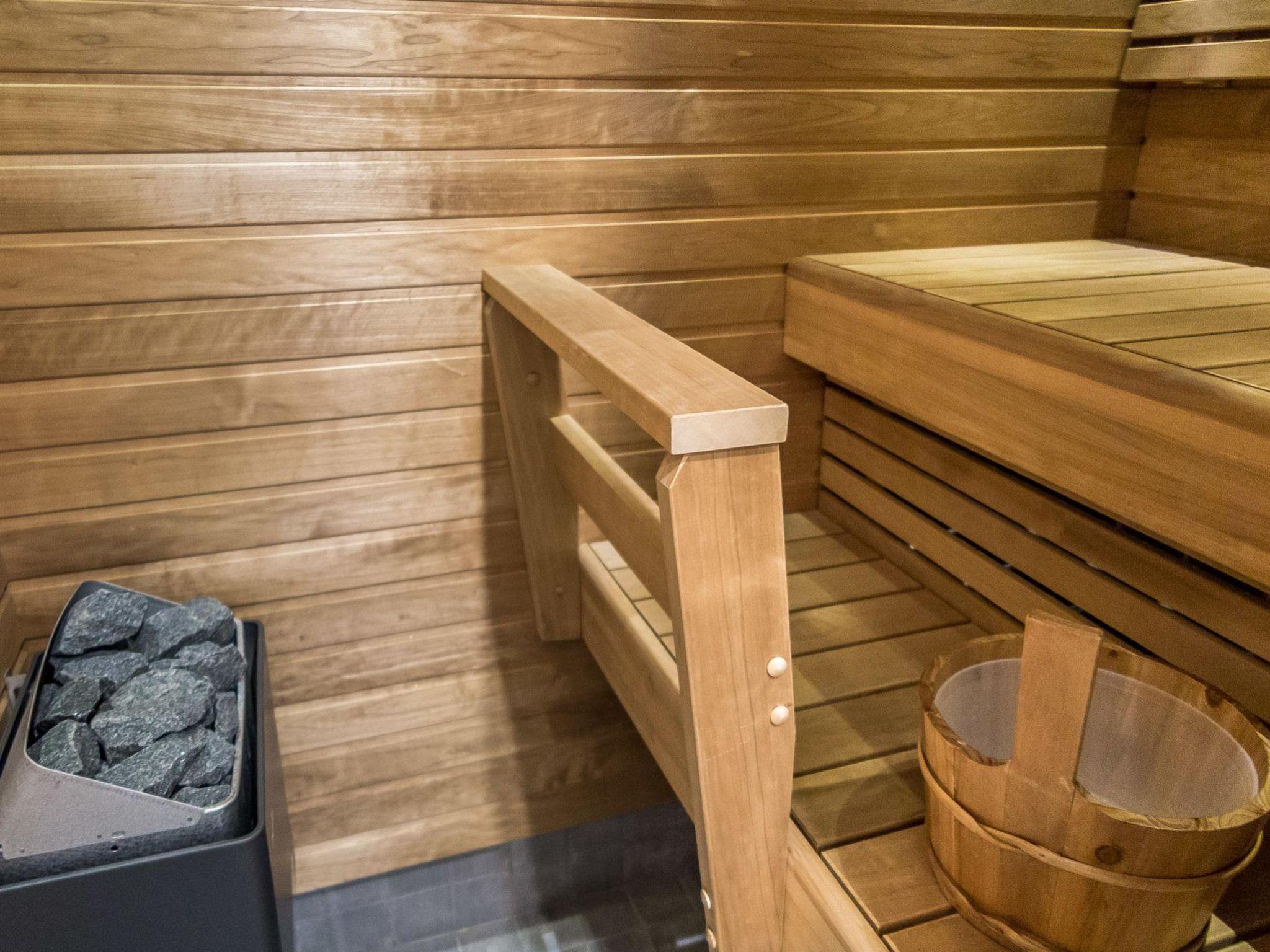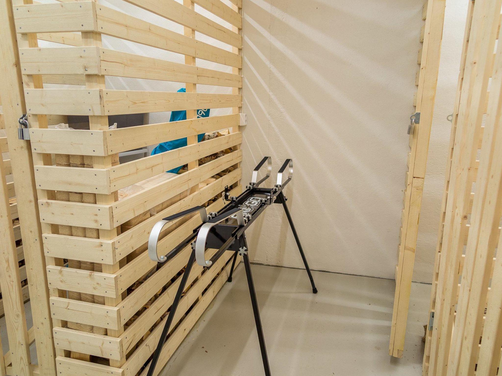 bedroom (two separate beds), washroom/WC and sauna (electric sauna stove) in the apartment. The housing company has a shared storage space including a laundry room (washing machine and two drying cabinets) and a ski waxing table. These facilities can be used freely. In addition, there is a storage cage for each apartment. The cage can be used, for example, for storing fuelwood and skis.