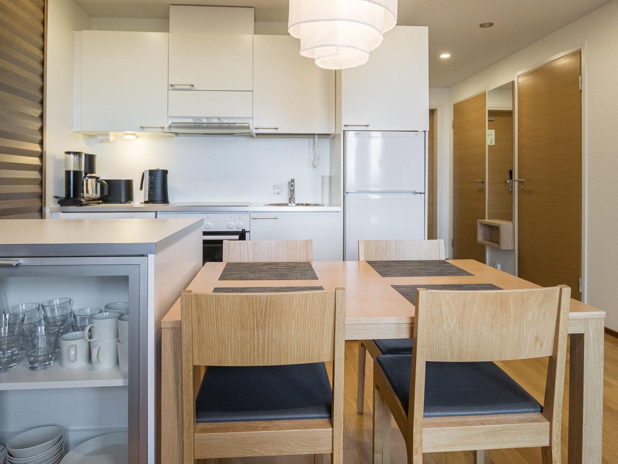 Apartment hotel located 165 km north of Rovaniemi, in the Ylläsjärvi village near the Sport Resort Ylläs. Built 2009. Livingroom/kitchen, one bedroom with two separate beds, one sleeping alcove (curtain at the doorway) with a bunk bed (top bed 80 cm wide, bottom bed 120 cm wide), electric sauna, washing room, separate toilet. In addition: Common ski maintenance room, apartment specific storage, wireless broadband connection. Apartment is situated in 1st floor (entrance floor). View over Ylläsjärvi village.