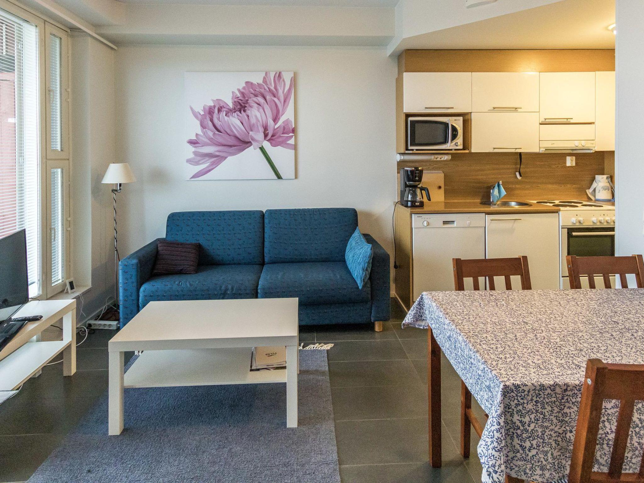 40 km to the northeast from Kolari, lake Ylläsjärvi approx. 4 km, swimming beach approx. 5 km. Living room/kitchen with spreadable sofa bed, bedroom (140 cm wide bed), washroom/WC and sauna.