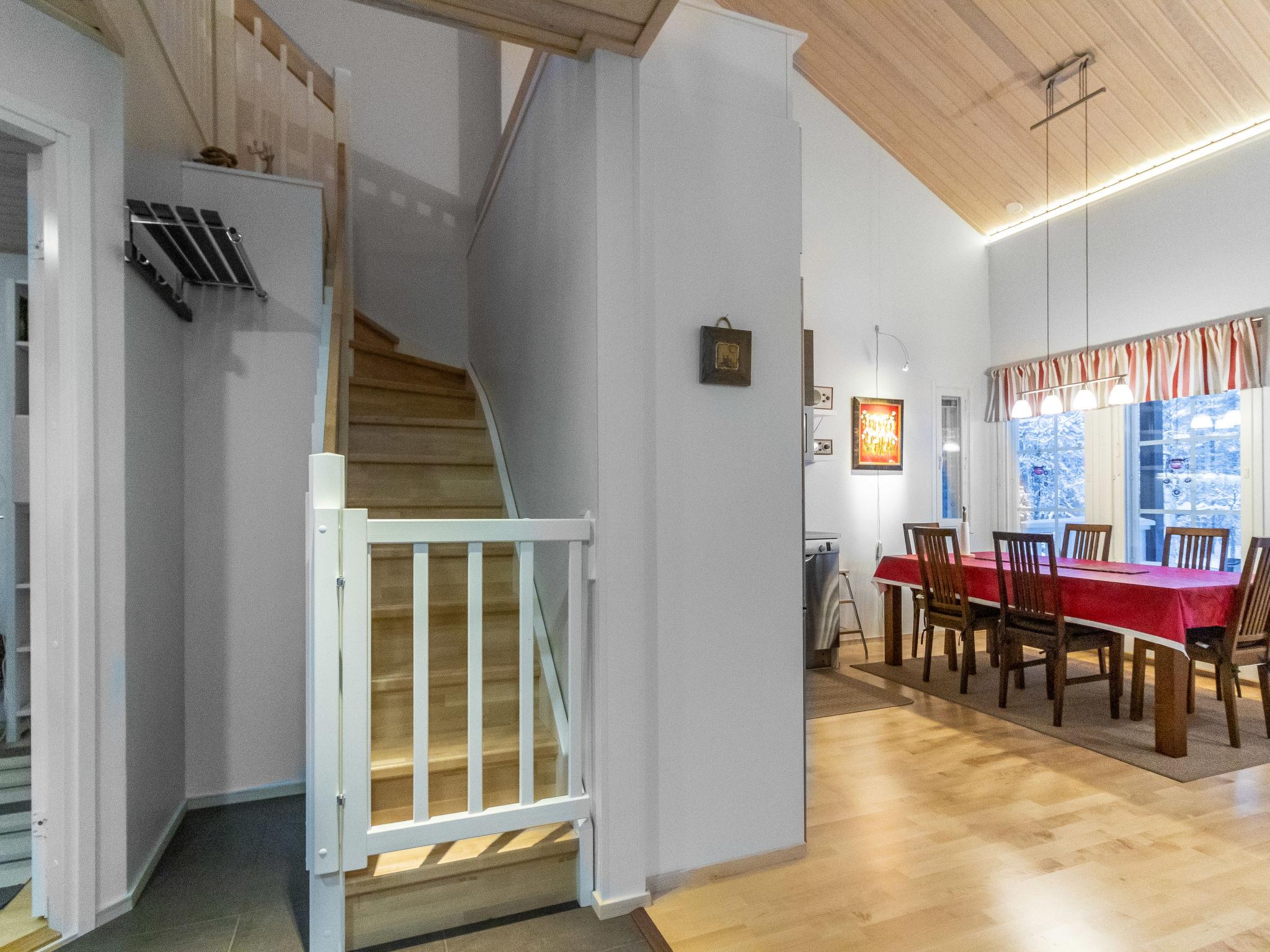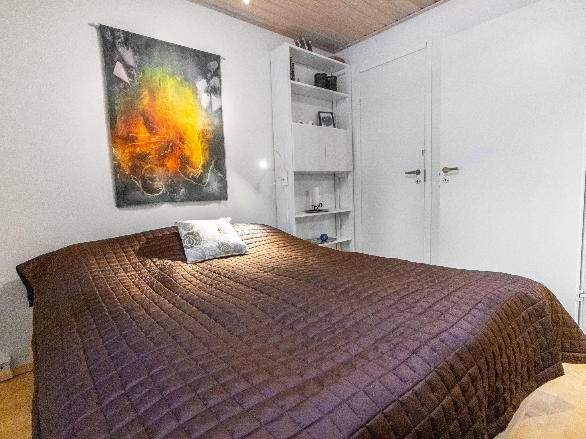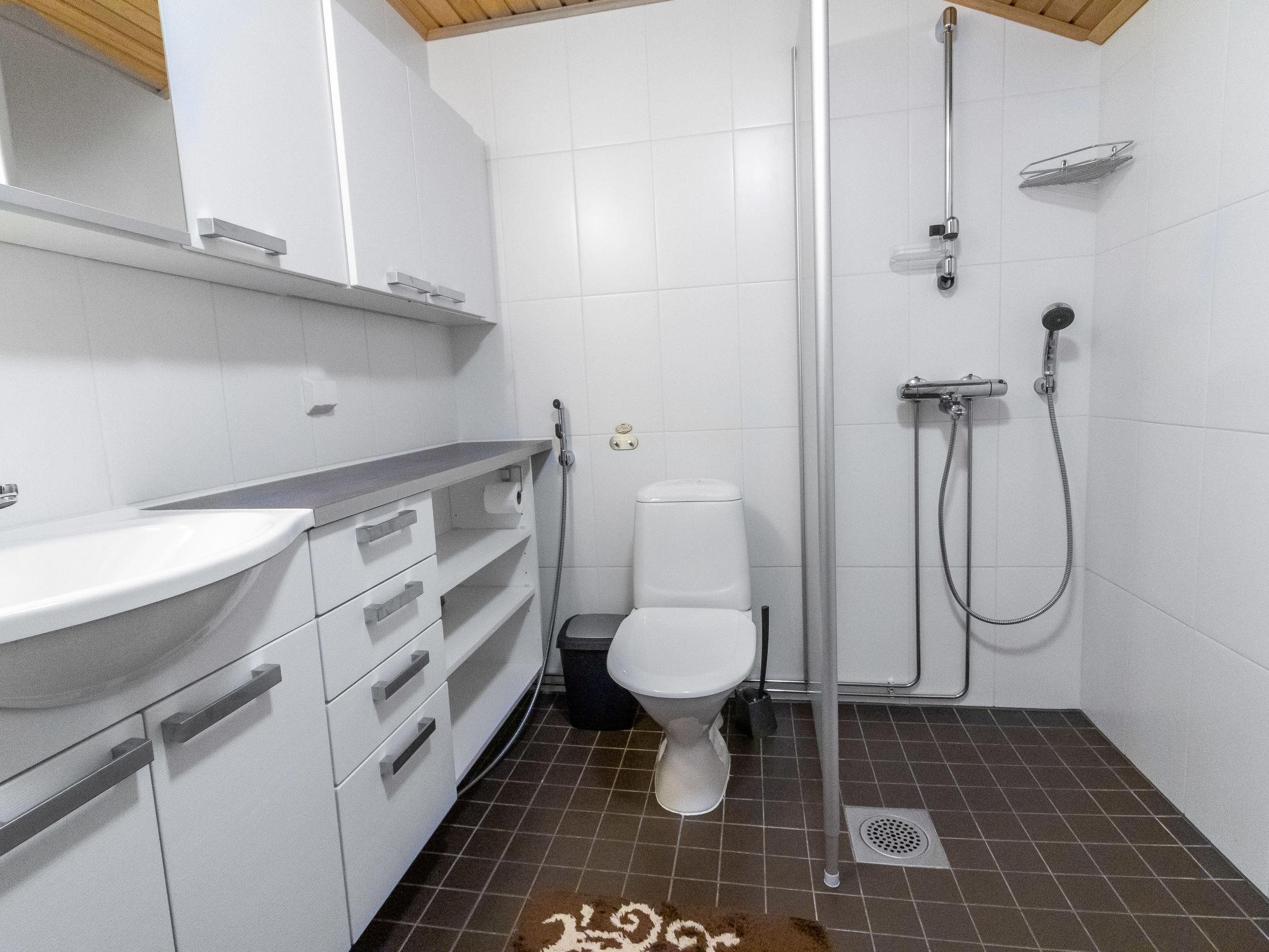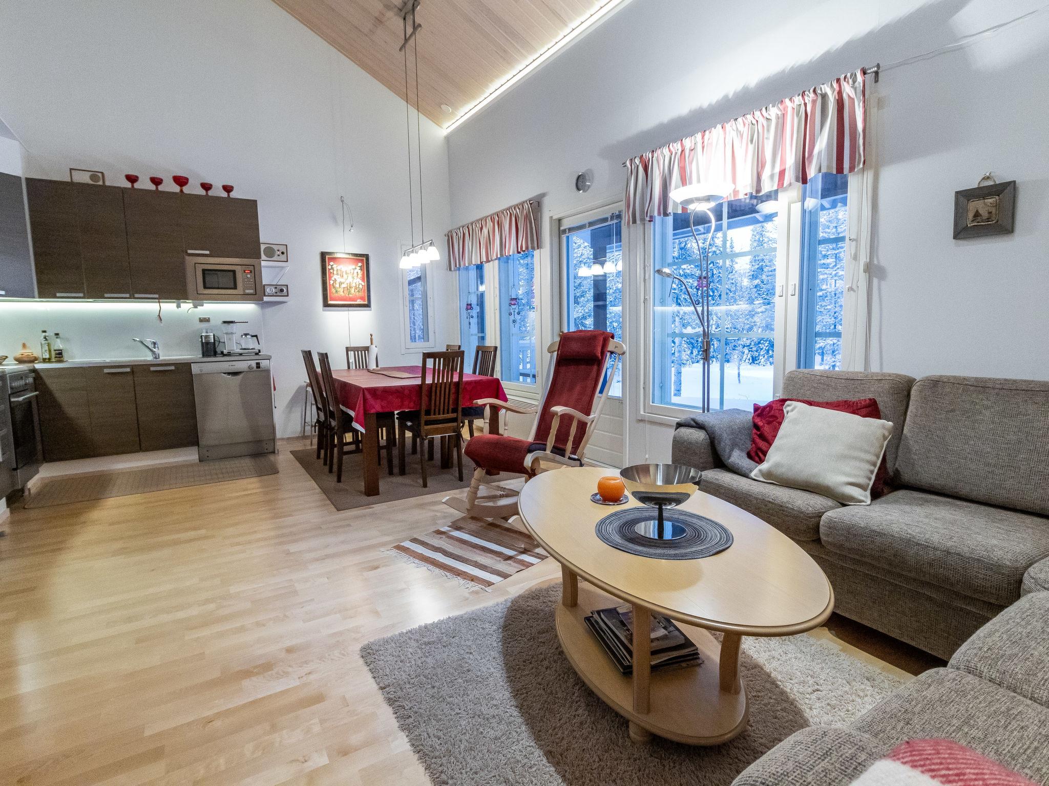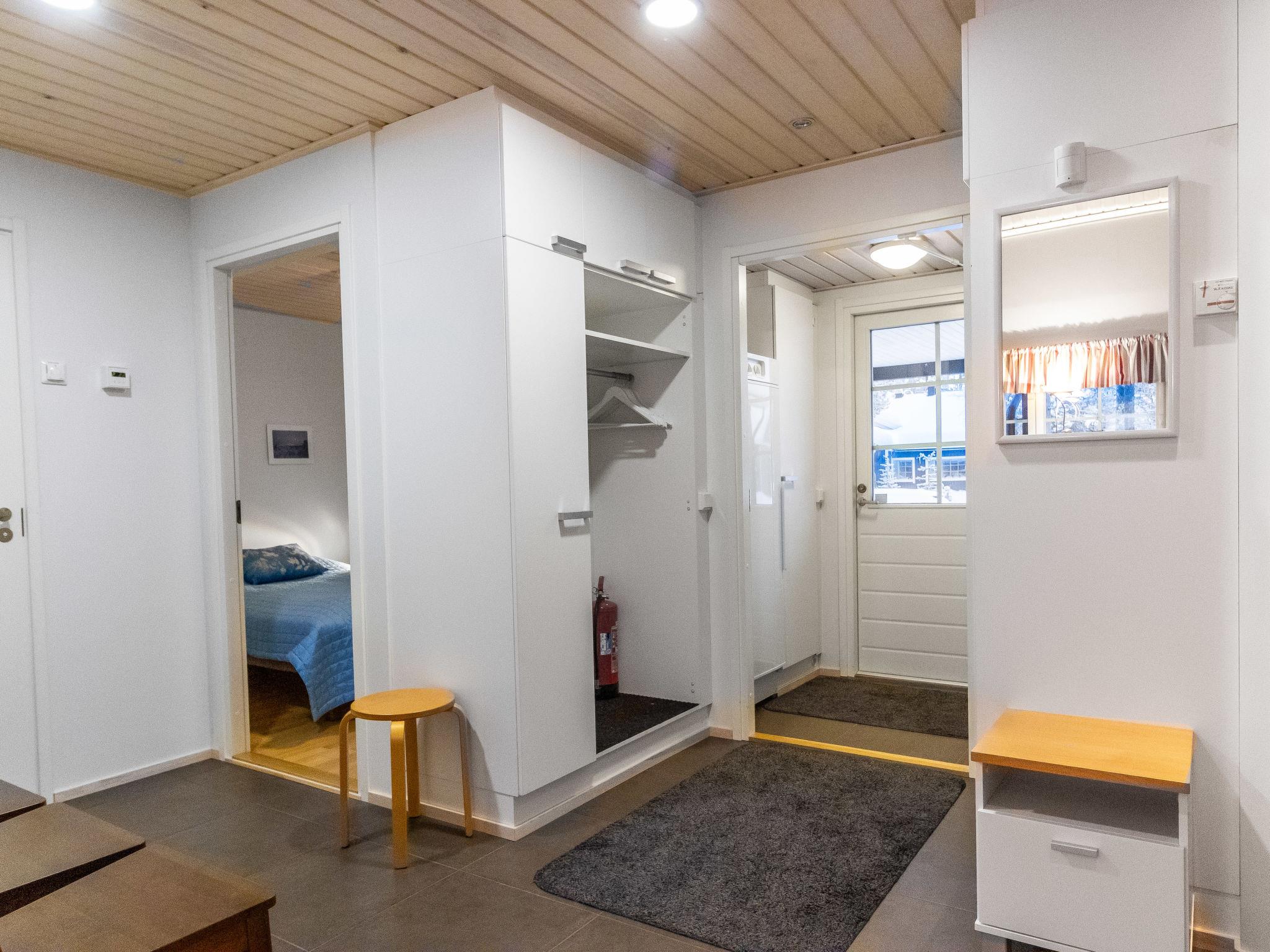 The well-equipped and spacious living room/kitchen provides a comfortable setting for spending time together and cooking. For relaxation, guests can enjoy an electric sauna and washroom facilities.