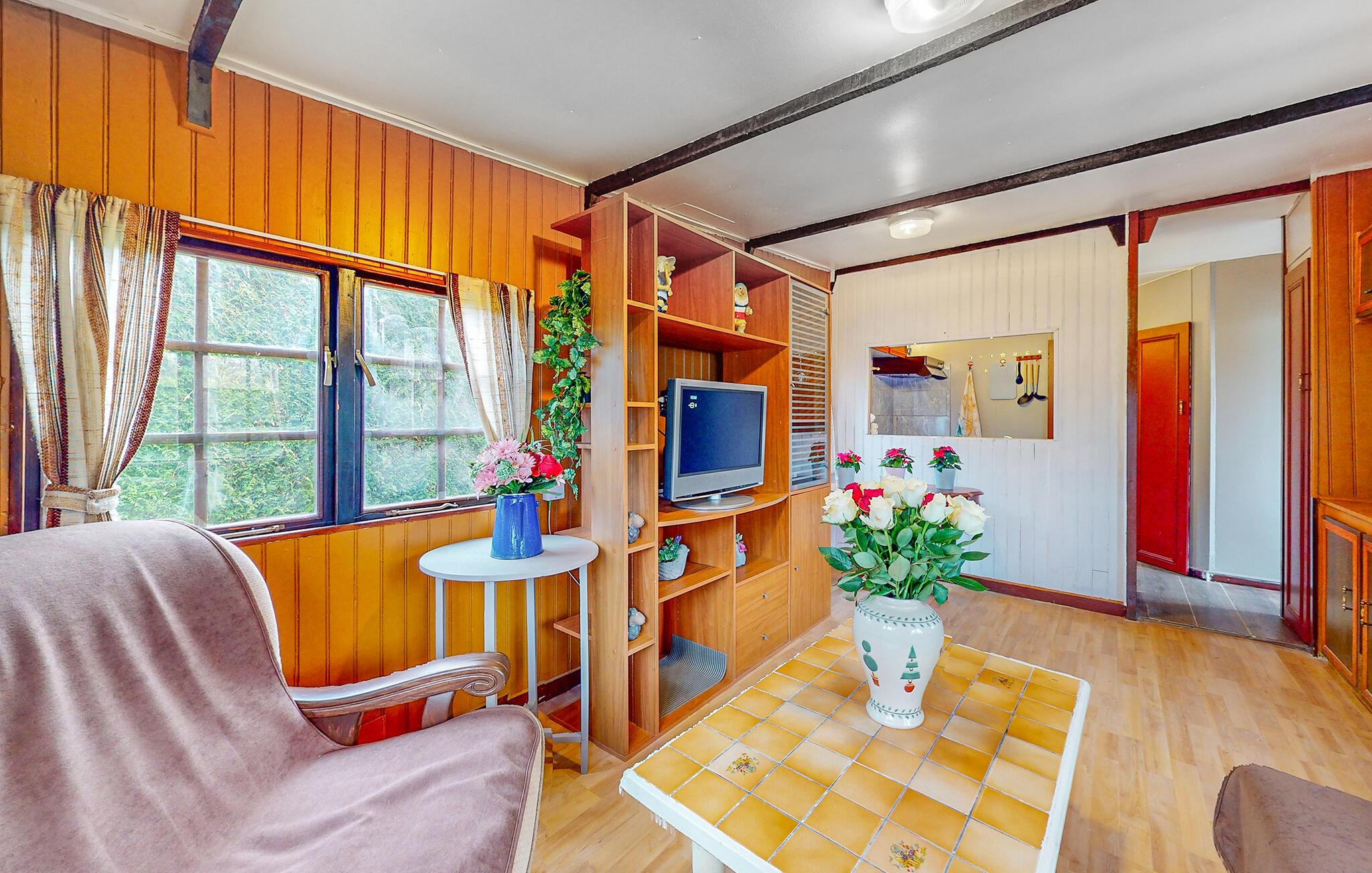 Huset ligger på en grund med en stor dam. Brug den som base for en hyggelig pause fra hverdagen, hvor I kan udforske området og opleve naturen. Nyd en smuk udsigt over det fri gennem store vinduespartier og læg planer for de kommende dage i opholdsstuen.
