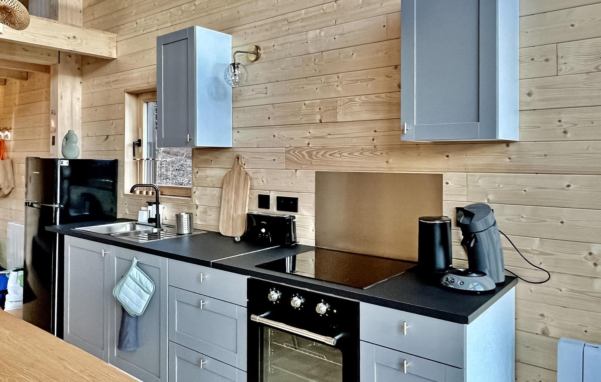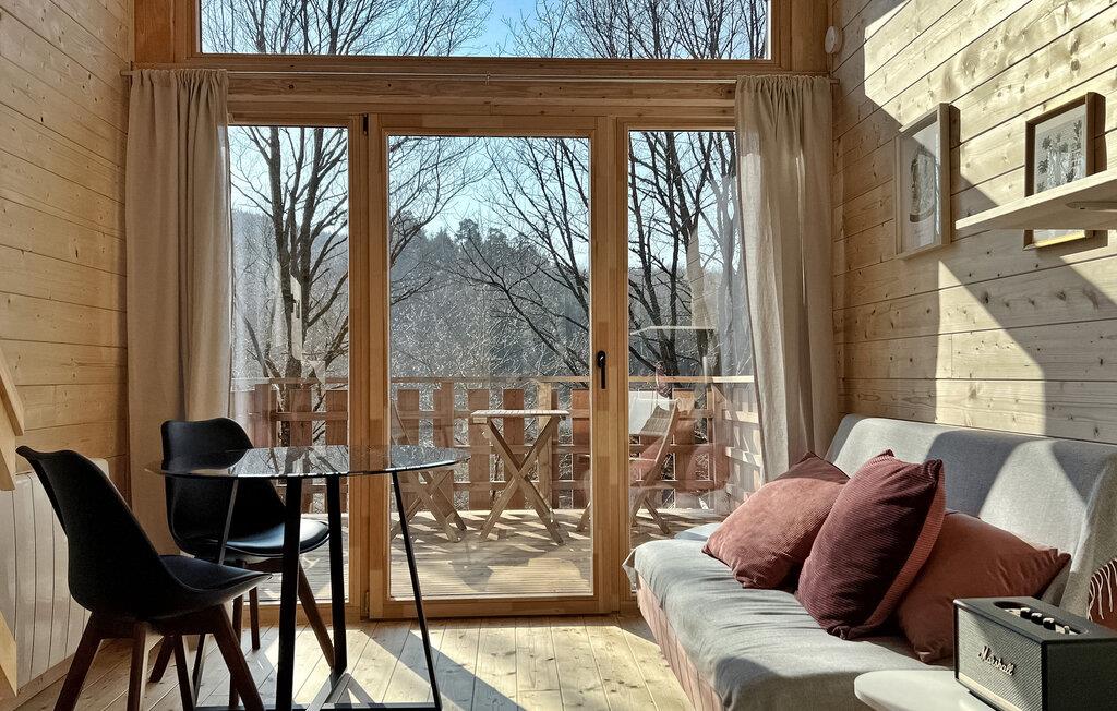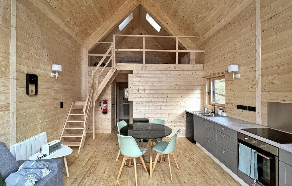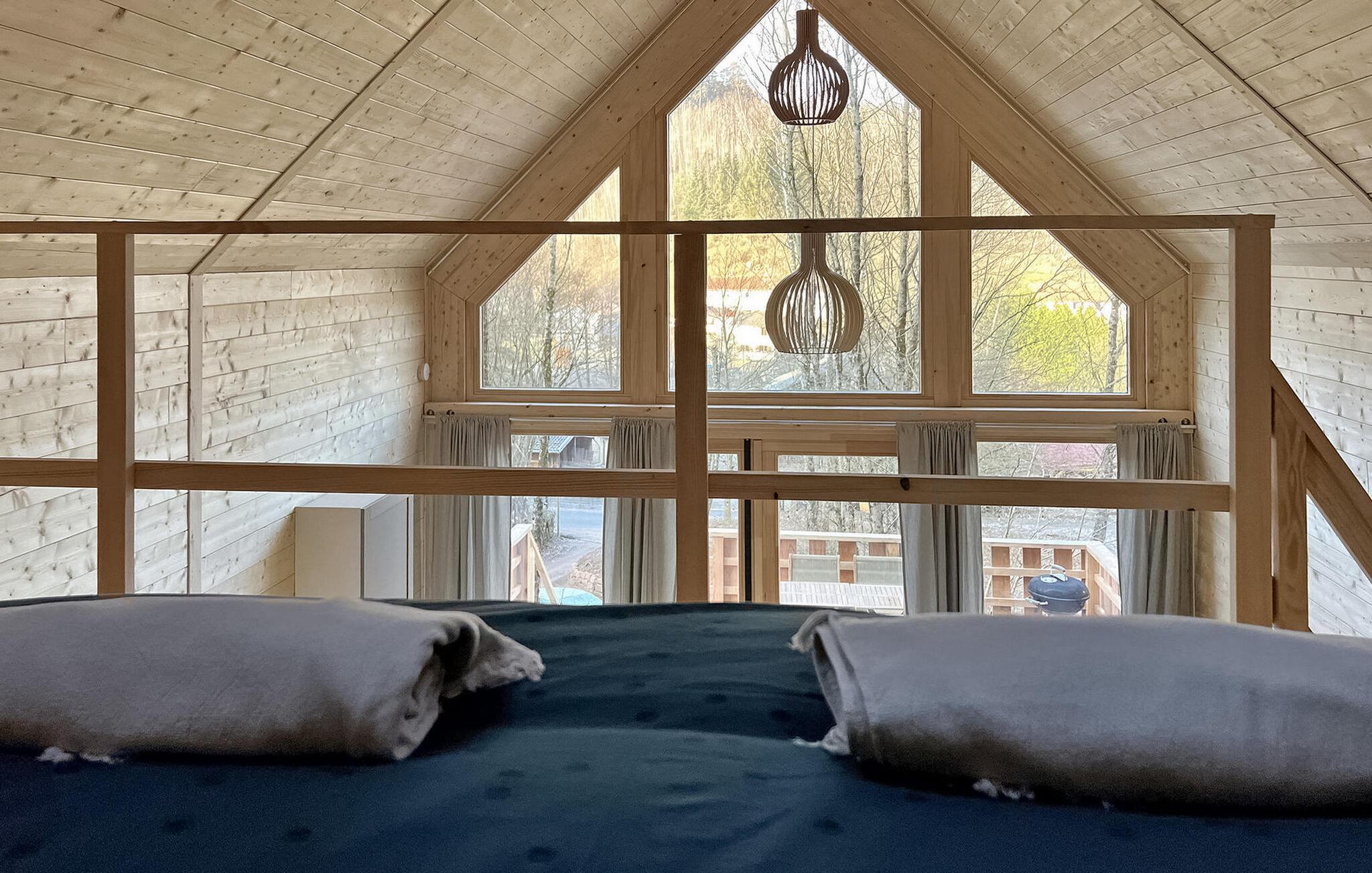 Oplev den fredfyldte charme ved en ferie i træhytte i Saint-Quirin, beliggende i Mosel Vosges, hvor naturen møder komfort. Denne ejendom består af tre forskellige hytter i skovkanten med en fantastisk udsigt over dalen. Loge 1 fungerer som hovedloge for to personer. Dens rummelige spisestue og terrasse inviterer til fælles sammenkomster. Det er spredt ud over cirka 47 m² og har en stue med en sovesofa, et veludstyret køkken, et brusebadeværelse og et åbent mezzanin-soveværelse med panoramaudsigt. Lodge 2, der også strækker sig over omkring 47 m², rummer komfortabelt fire gæster. Dens stue byder på fængslende udsigter, mens stueetagen er vært for et soveværelse, og ovenpå på mezzaninen er der et andet soveværelse med en betagende udsigt over dalen. Lodge 3, der dækker 23 m², har plads til to gæster. Dens tekøkken, stue åbner ud til en terrasse med en pragtfuld udsigt over dalen, et brusebad og en mezzanin giver komfort og en ærefrygtindgydende udsigt. Hver lodge har en privat terrasse med en grill, der tilbyder det perfekte sted at nyde det naturskønne landskab og nyde udendørs spisning. Bemærk venligst, at Lodge 1 har en åben mezzanin uden skillevægge mellem opholdsstuen og soveværelset. Lodge 2 og 3 giver sikret trappeadgang til deres mezzaniner uden stigrør. Oplev roen og skønheden ved Mosel Vogeserne i disse lyse, rummelige og uafhængige trælodges, som hver tilbyder et unikt perspektiv af de fredfyldte dalomgivelser. Landsbyen og dens restauranter ligger inden for gåafstand. Nabobyen Sarrebourg giver dig mulighed for at opdage Mosel historiske arv. Naturelskere vil være ivrige efter at besøge den enestående dyrepark Sainte Croix, eller blot at leje cykler i landsbyen for at udforske skovstierne. Lodgerne er også udgangspunktet for mange gå- og vandreture. Brøddepot, delikatesseforretning og cykeludlejning i landsbyen. Sommerbegivenheder og julemarkeder må ikke gå glip af i de omkringliggende landsbyer.