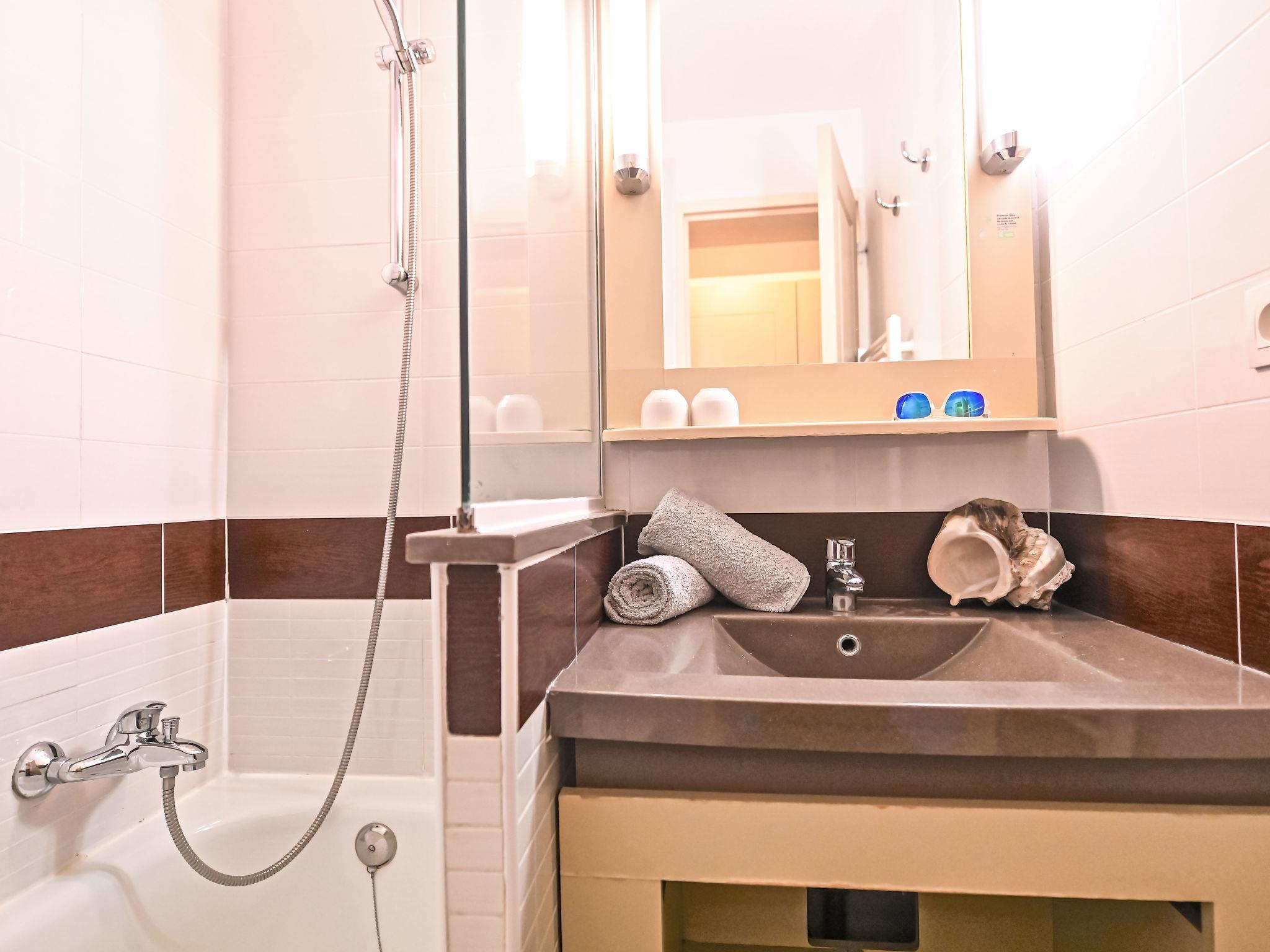 "Le Belvédère (R4 317)", 2-room apartment 28 m2 on 2nd floor. Living room with 1 pull-out bed (2 x 80 cm, length 190 cm), TV (flat screen). Exit to the terrace. 1 room with 1 french bed (140 cm, length 190 cm). Kitchenette (4 hot plates, mini-oven, dishwasher, toaster, kettle, microwave, electric coffee machine, Capsules for coffee machine (Nespresso) extra). Bathroom, sep. WC. Electric heating. Large terrace 15 m2. Terrace furniture. Facilities: Internet (WiFi, extra). Parking (1 car). Please note: non-smokers only. Maximum 1 small pet/ dog allowed. Smoke alarm. Offer by a private individual according to Art. 155, IV of CGI.
