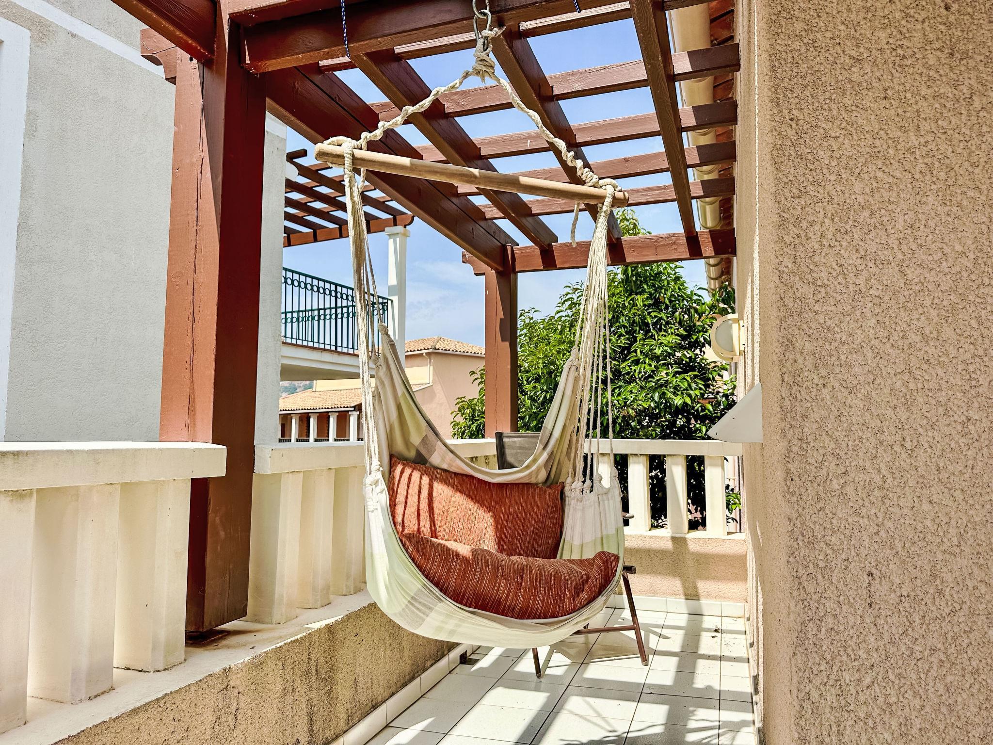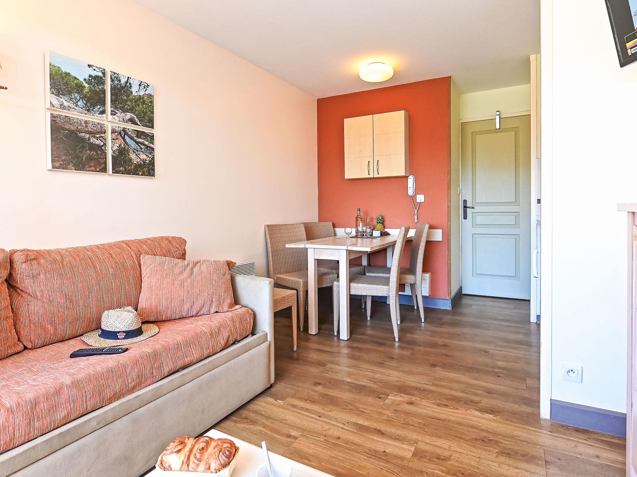 Large resort "Village Cap Estérel - Le Belvédère". On the outskirts, 2 km from the centre of Agay, on a slope, in the residential district, 400 m from the sea, 350 m from the beach, road to cross, on the golf course, in a pedestrian area. For shared use: park 210 ha, 5 swimming pools (seasonal availability: 06.Apr. - 03.Nov.). Children's pool, boccia, children's playground (slide, swing). In the complex: spa area (extra), shopping facilities, laundry (extra). Shop, grocery 200 m, supermarket 6 km, restaurant 150 m, bakery 500 m, bus stop "Ligne 21" 300 m, railway station "Saint-Raphaël-Valescure TGV" 9 km, sandy beach "Tiki Plage" 900 m. Marina 1 km, golf course (9 hole), tennis 500 m. Nearby attractions: Anthéor 8 km, Saint-Raphaël 9 km, Fréjus 13 km, Cannes 33 km, Saint-Tropez 50 km, Nice 76 km. Well-known lakes can easily be reached: Lac Saint-Cassien. Hiking paths: Massif de l'Estérel. Please note: car-free holiday complex, no lift. Entertainment in the season. Suitable for families, childminding in the season (extra). Guarded residence. The keys‘ handover takes place by the agency Interhome in Cap Estérel. Additional accommodations can be booked. Access to the apartments is via steps, even on the ground floor.