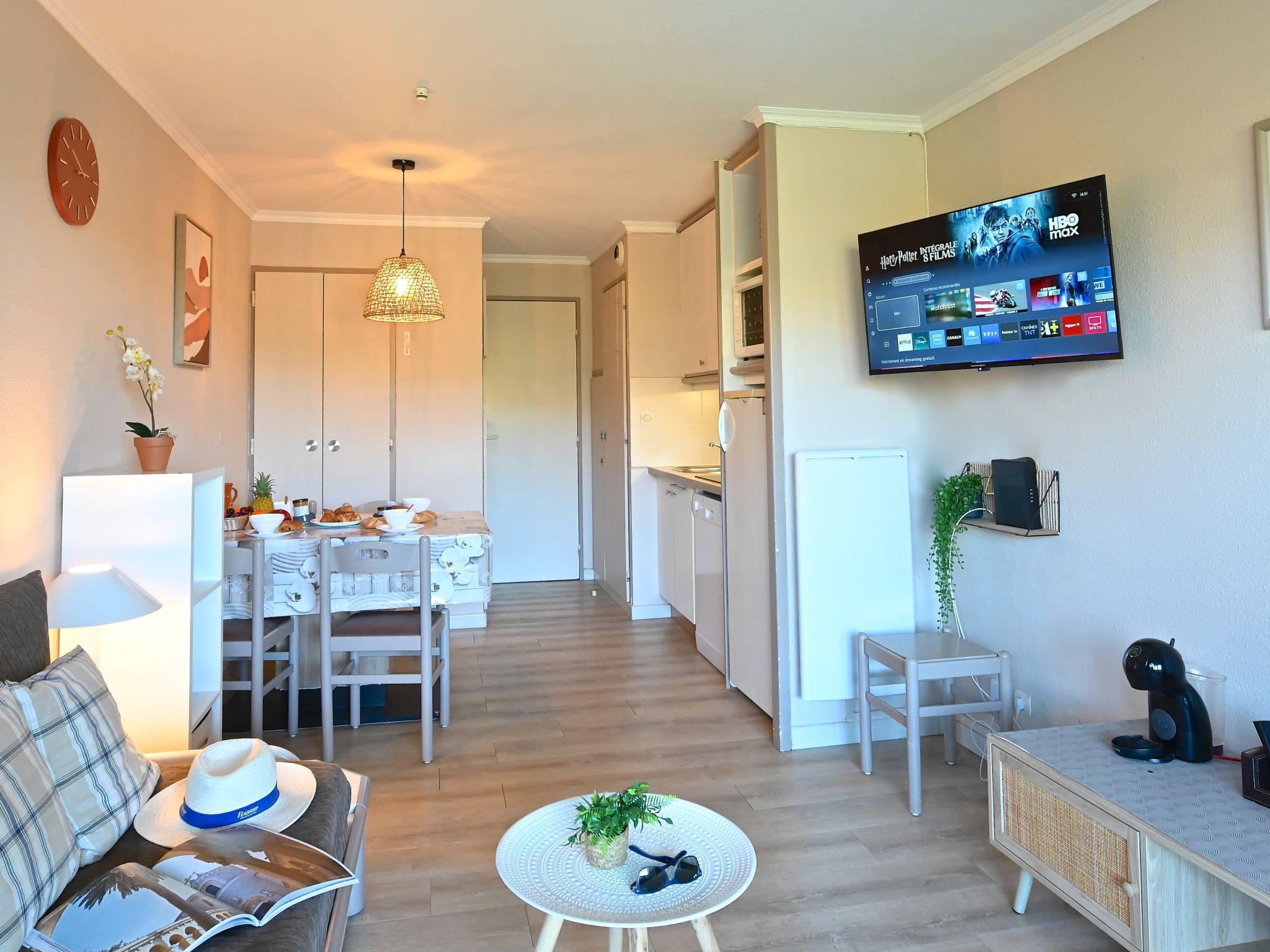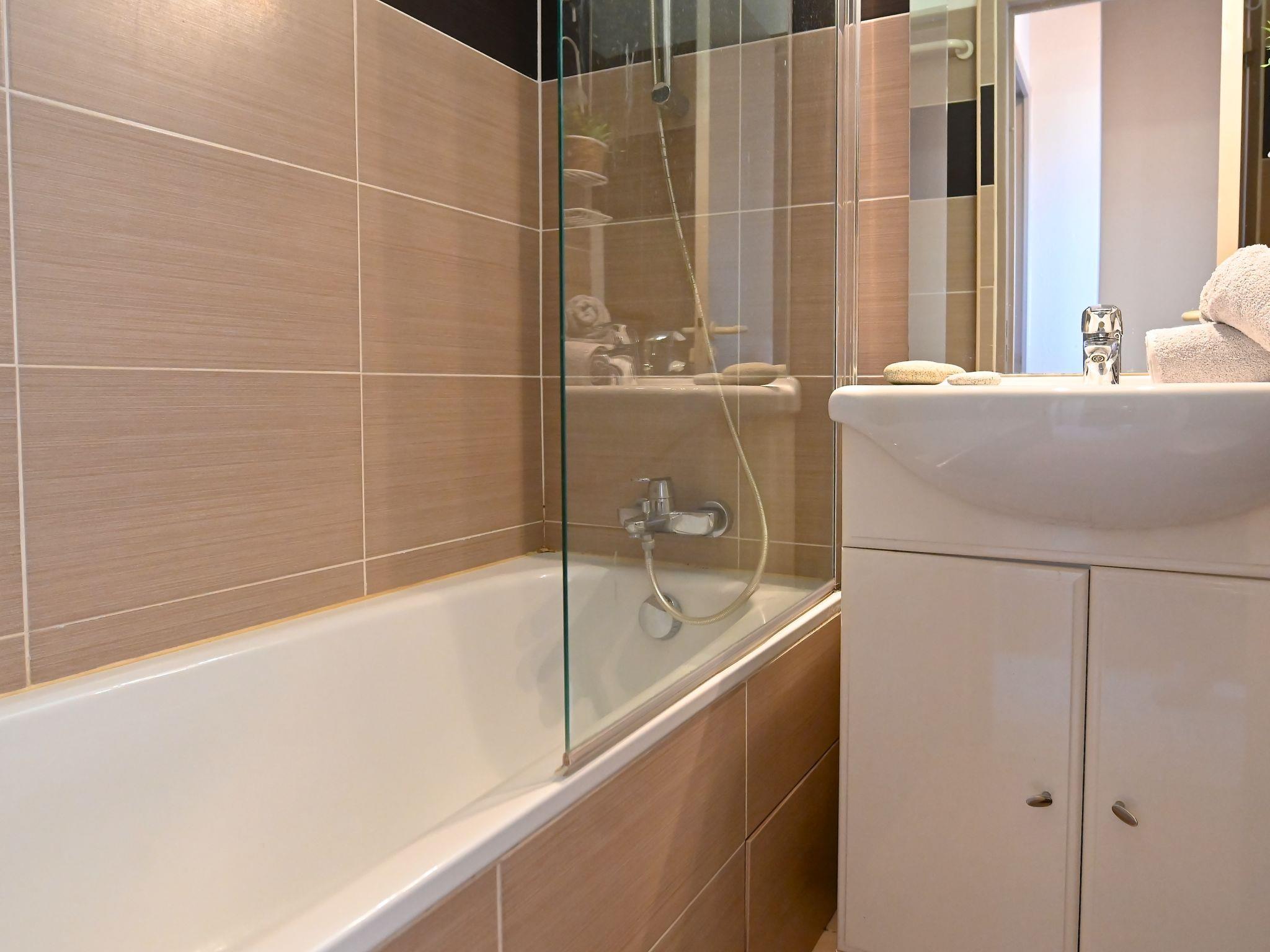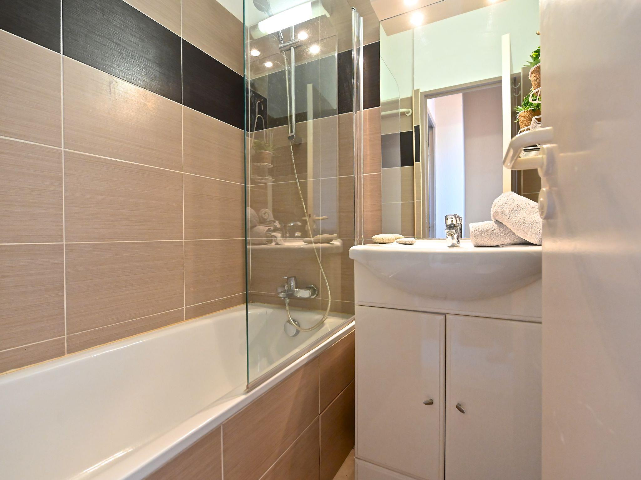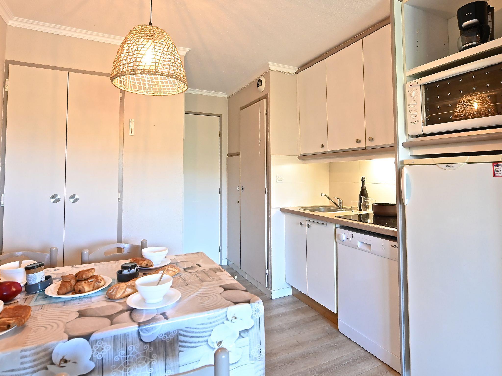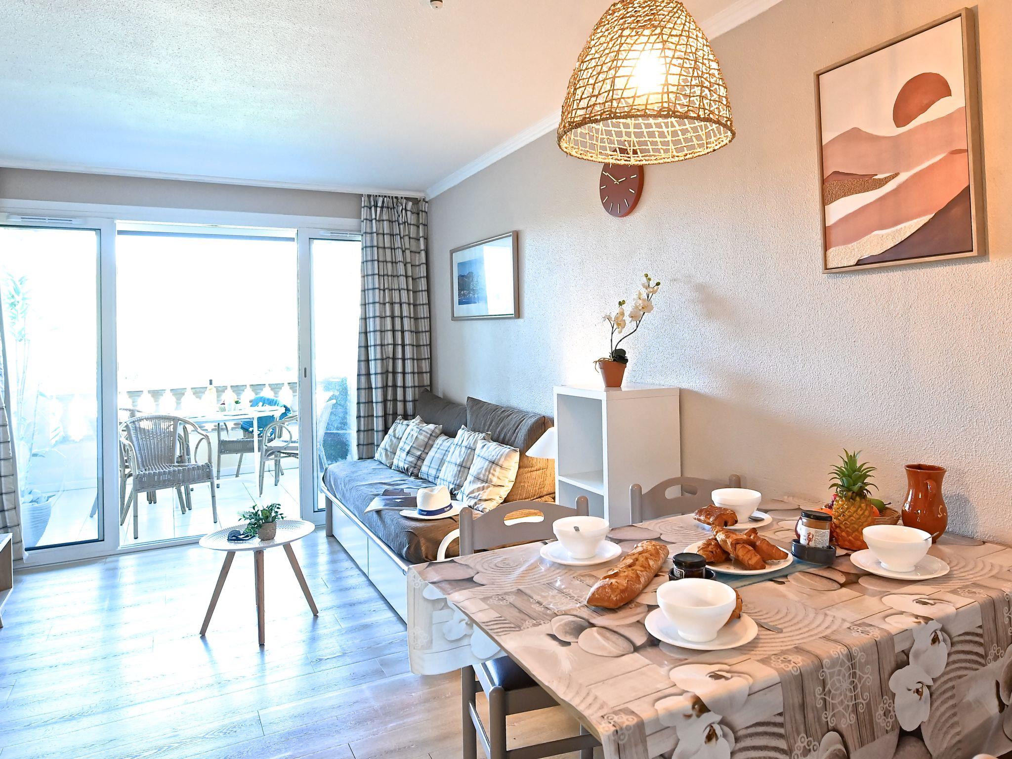 "Le Belvédère V1 202", 3-room apartment 37 m2 on 2 levels on 1st floor. Partly renovated in 2025, comfortable furnishings: living room with 1 double sofabed (2 x 80 cm, length 190 cm), TV (flat screen), air conditioning. Exit to the terrace. Kitchenette (dishwasher, 4 ceramic glass hob hotplates, toaster, kettle, microwave, freezer, electric coffee machine). Shower/WC. Upper floor: 1 room with 1 french bed (140 cm, length 190 cm). Exit to the terrace. Sleeping alcove with 1 x 2 bunk beds (80 cm, length 190 cm). Bath/WC. Terrace 15 m2, roofed, east facing position, small terrace 4 m2. Terrace furniture. Side view of the sea and the mountains. Facilities: washing machine. Internet (WiFi, free). Parking (roofed, 1 car), height 180 cm. Please note: non-smokers only. Smoke alarm. Offer by a private individual according to Art. 155, IV of CGI.
