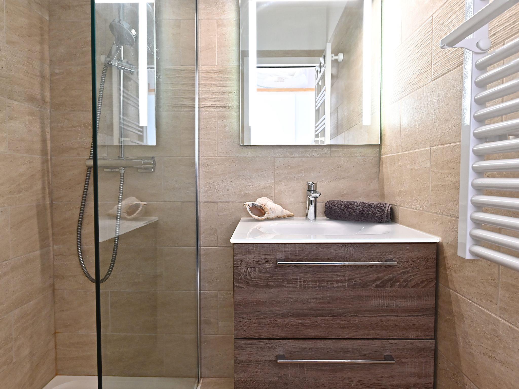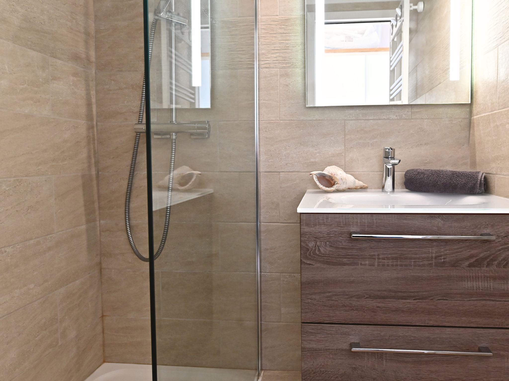 "Le Village (C5 235)", 2-room apartment 28 m2 on 1st floor. Renovated in 2024: living room with 1 double sofabed (1 x 140 cm, length 190 cm), TV (flat screen). Exit to the terrace, south facing position. 1 room with 1 french bed (140 cm, length 190 cm). Kitchenette (4 hot plates, dishwasher, toaster, kettle, microwave, electric coffee machine, Capsules for coffee machine (NESPRESSO) extra). Shower, sep. WC. Electric heating. Terrace 10 m2, south facing position and north facing position. Terrace furniture. Beautiful view of the sea. Facilities: washing machine. Internet (WiFi, free). Parking (1 car). E-charging station. Please note: non-smokers only. Maximum 1 pet/ dog allowed. Smoke alarm. Offer by a private individual according to Art. 155, IV of CGI.