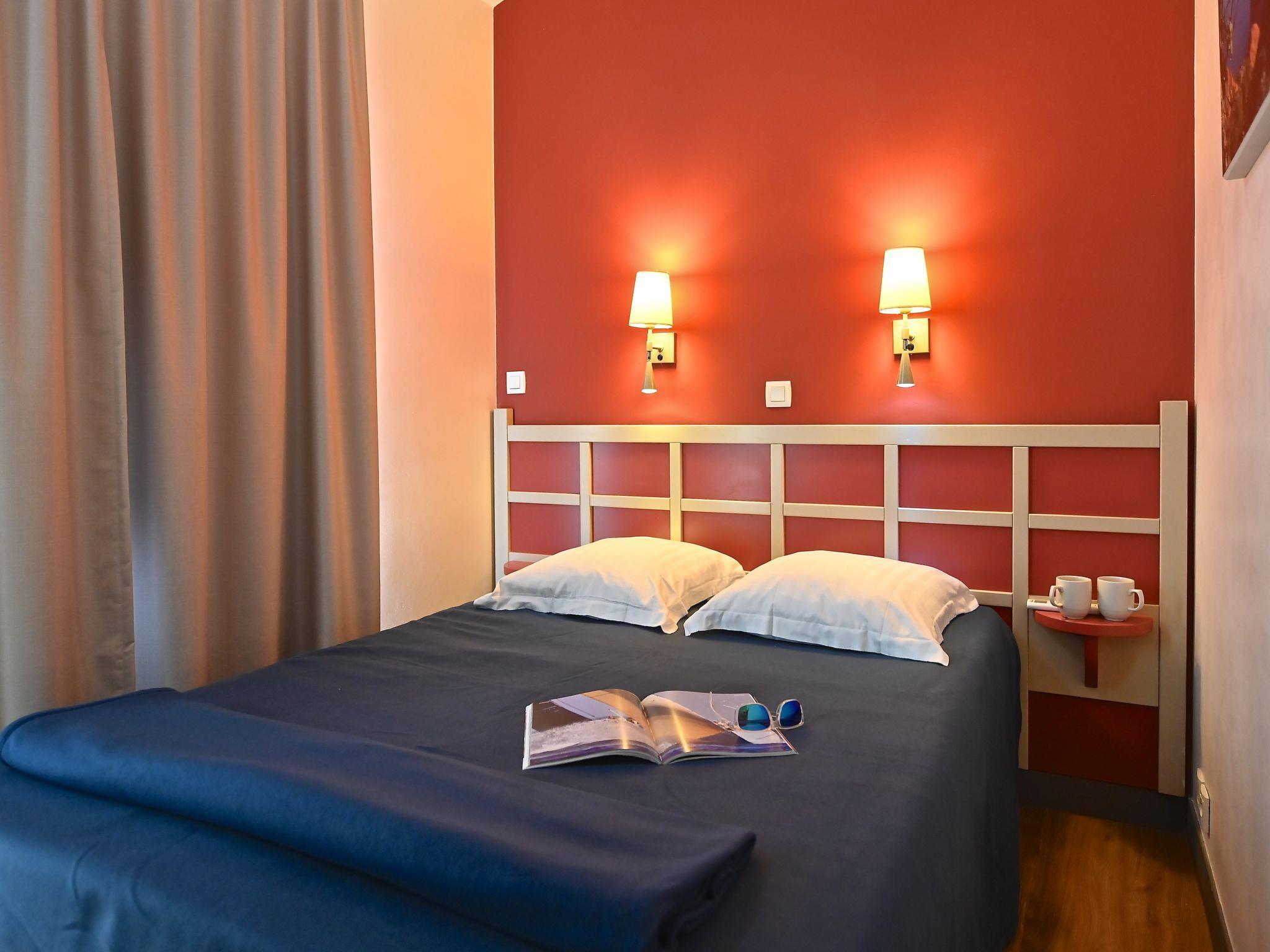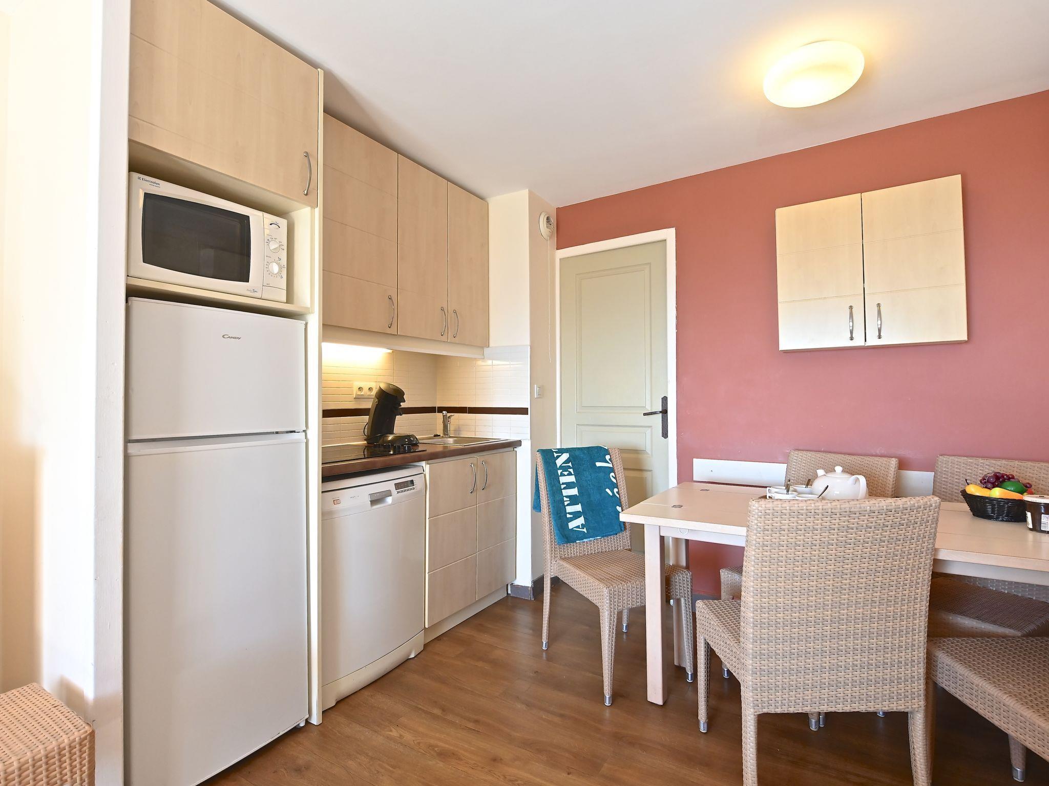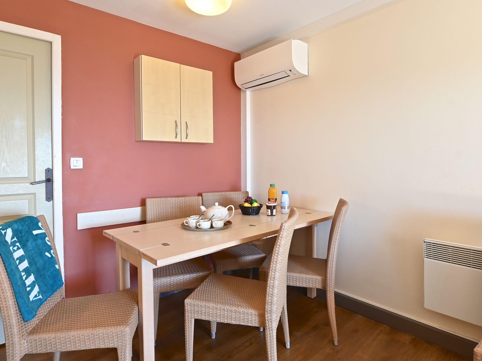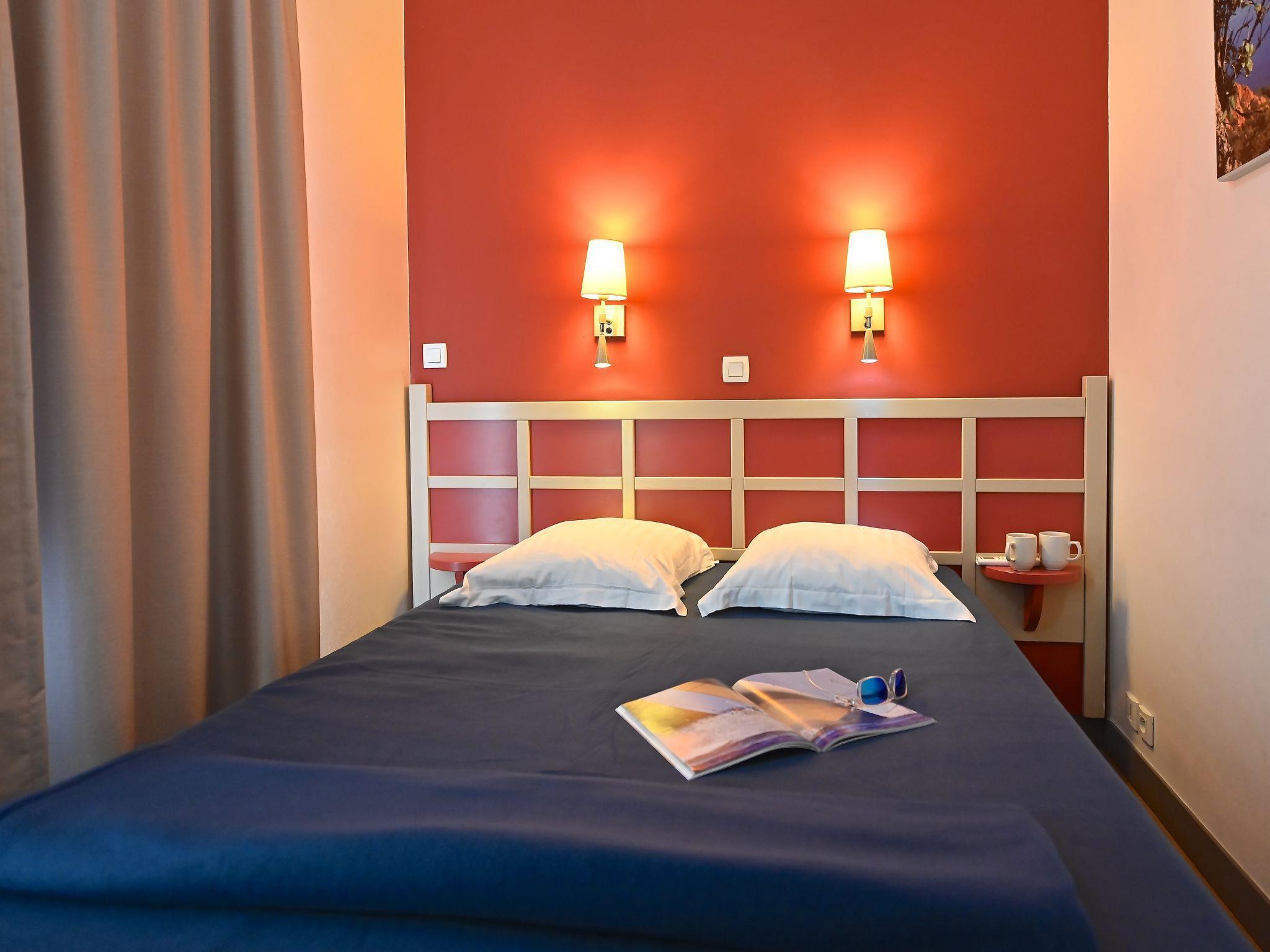 "Le Village (E1 309)", 3-room maisonette 39 m2 on 2nd floor. Comfortable furnishings: living room with 1 double sofabed (140 cm, length 190 cm), TV (flat screen), air conditioning and fan. Exit to the terrace, south facing position. Sleeping alcove with 1 x 2 bunk beds (80 cm, length 190 cm). Kitchenette (4 hot plates, dishwasher, toaster, kettle, microwave, freezer, electric coffee machine, Capsules for coffee machine (Senseo) extra). Shower, sep. WC. Upper floor: 1 room with 1 french bed (140 cm, length 190 cm), air conditioning. Exit to the balcony, south facing position. Bath/WC. Air-conditioning. Small balcony 4 m2, south facing position, terrace 12 m2, south facing position. Terrace furniture. Beautiful panoramic view of the sea and the swimming pool. Facilities: iron. Internet (WiFi, extra). Parking space n 2534 (roofed, 1 car), height 180 cm. Please note: non-smokers only. Maximum 1 pet/ dog allowed. Smoke alarm. Instead of an enclosed bedroom, some sleeping areas are located in an open-plan area (gallery, alcove, etc.). Offer by a private individual according to Art. 155, IV of CGI.