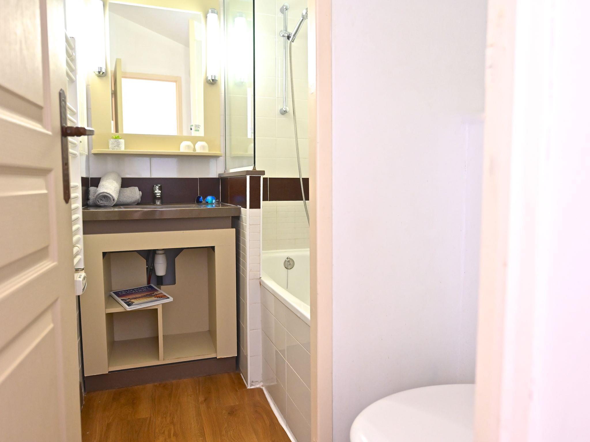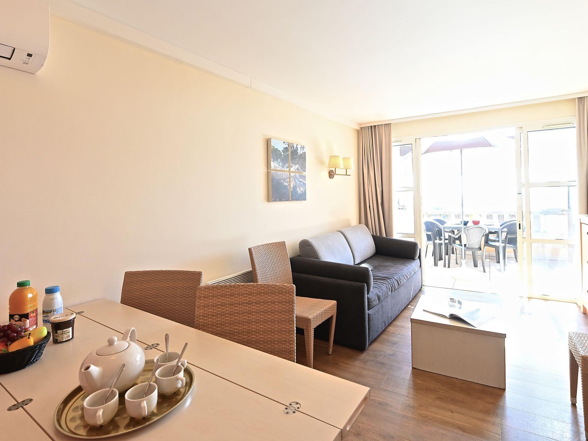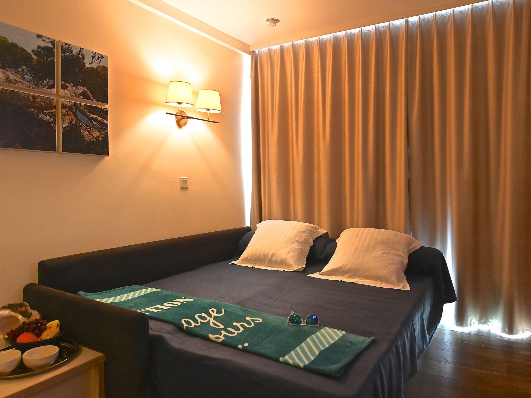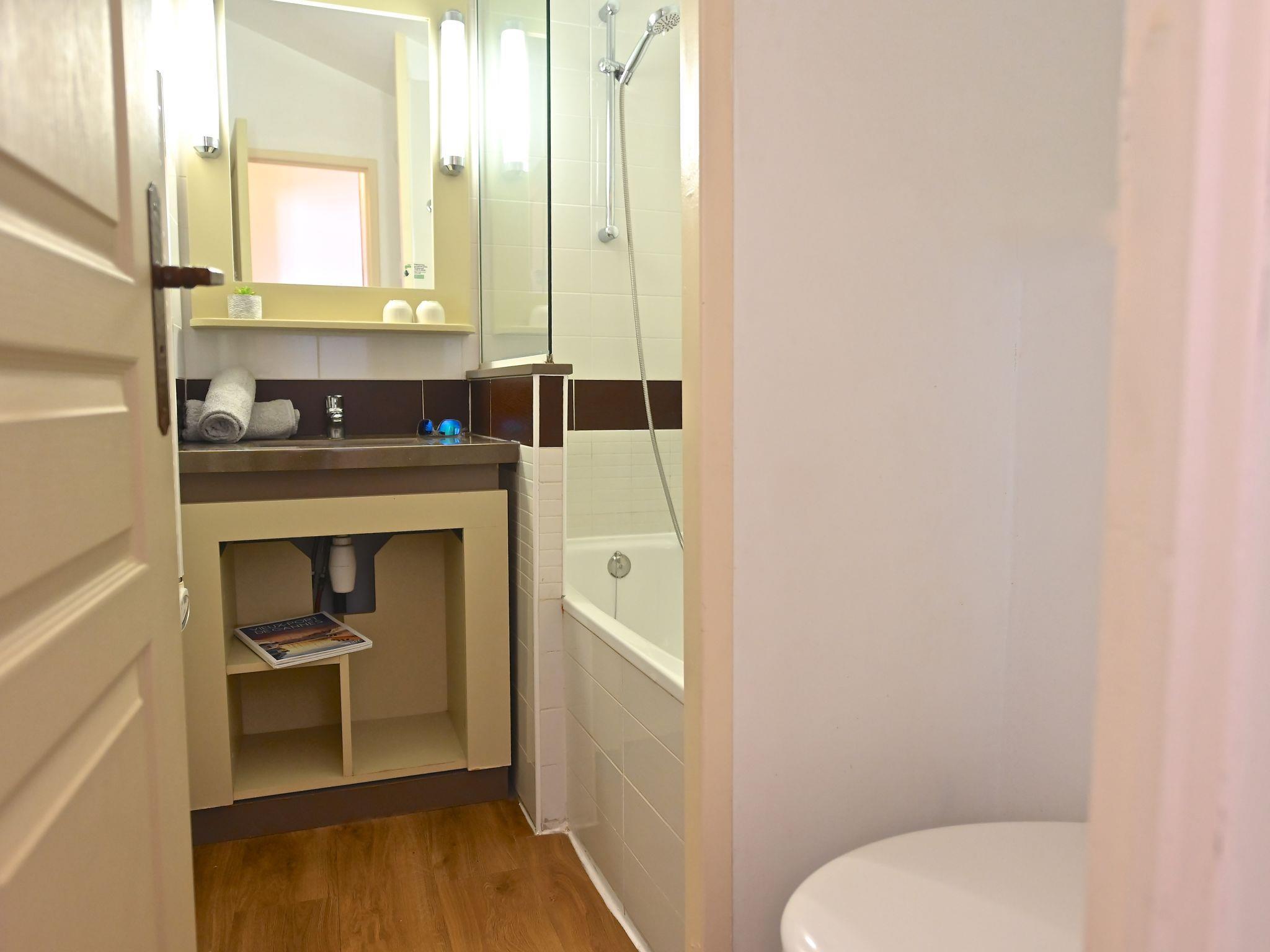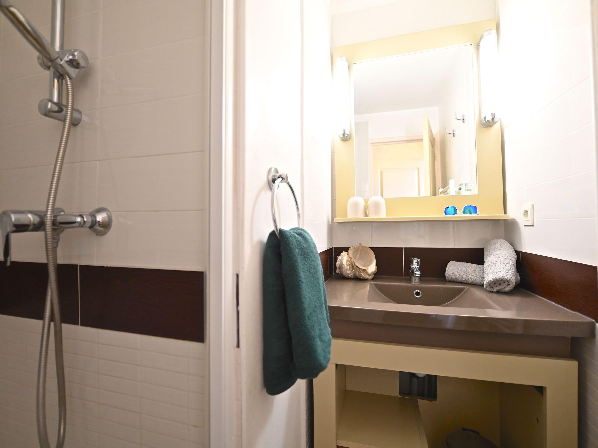 "Le Village (E1 309)", 3-room maisonette 39 m2 on 2nd floor. Comfortable furnishings: living room with 1 double sofabed (140 cm, length 190 cm), TV (flat screen), air conditioning and fan. Exit to the terrace, south facing position. Sleeping alcove with 1 x 2 bunk beds (80 cm, length 190 cm). Kitchenette (4 hot plates, dishwasher, toaster, kettle, microwave, freezer, electric coffee machine, Capsules for coffee machine (Senseo) extra). Shower, sep. WC. Upper floor: 1 room with 1 french bed (140 cm, length 190 cm), air conditioning. Exit to the balcony, south facing position. Bath/WC. Air-conditioning. Small balcony 4 m2, south facing position, terrace 12 m2, south facing position. Terrace furniture. Beautiful panoramic view of the sea and the swimming pool. Facilities: iron. Internet (WiFi, extra). Parking space n 2534 (roofed, 1 car), height 180 cm. Please note: non-smokers only. Maximum 1 pet/ dog allowed. Smoke alarm. Instead of an enclosed bedroom, some sleeping areas are located in an open-plan area (gallery, alcove, etc.). Offer by a private individual according to Art. 155, IV of CGI.