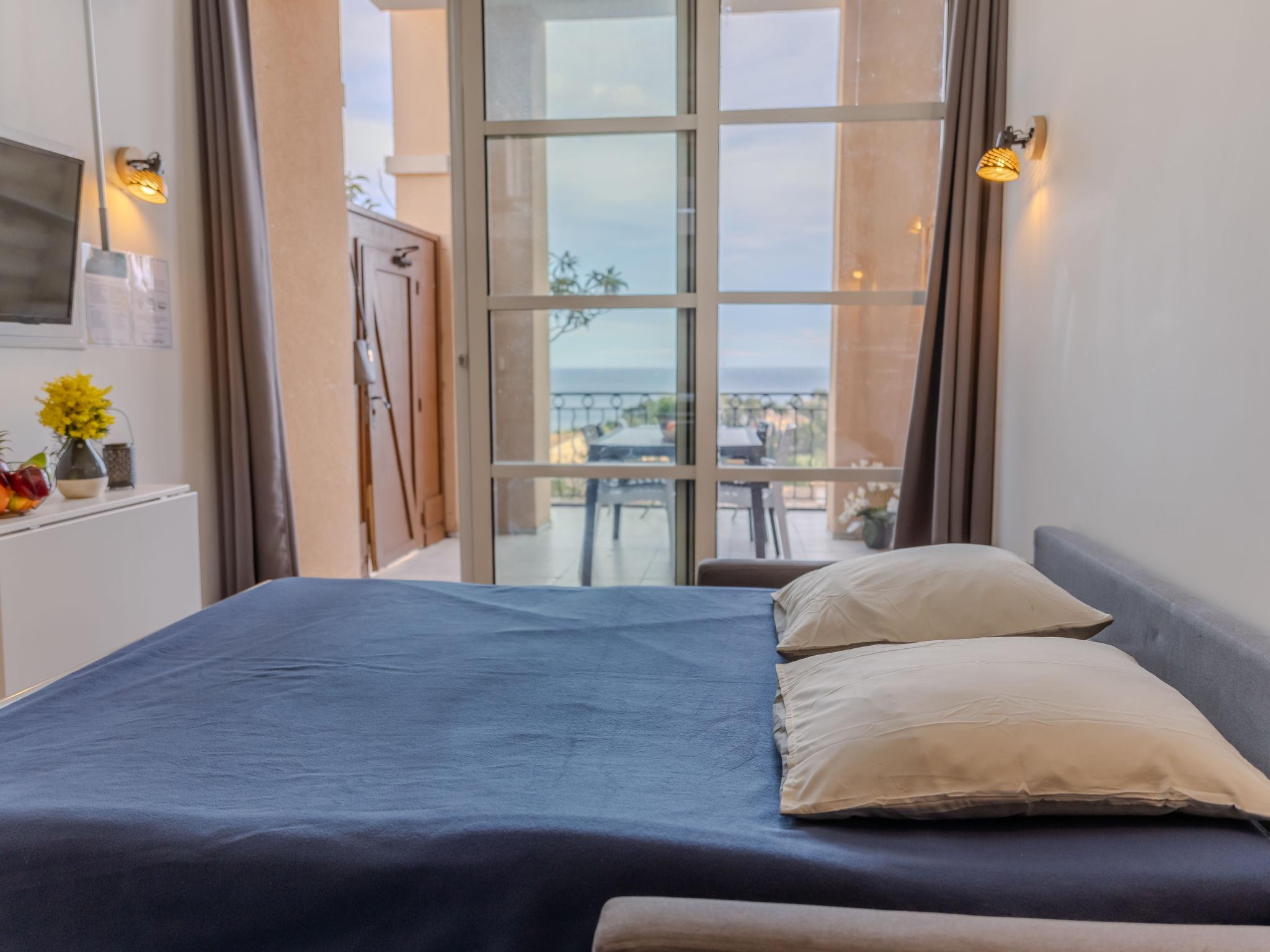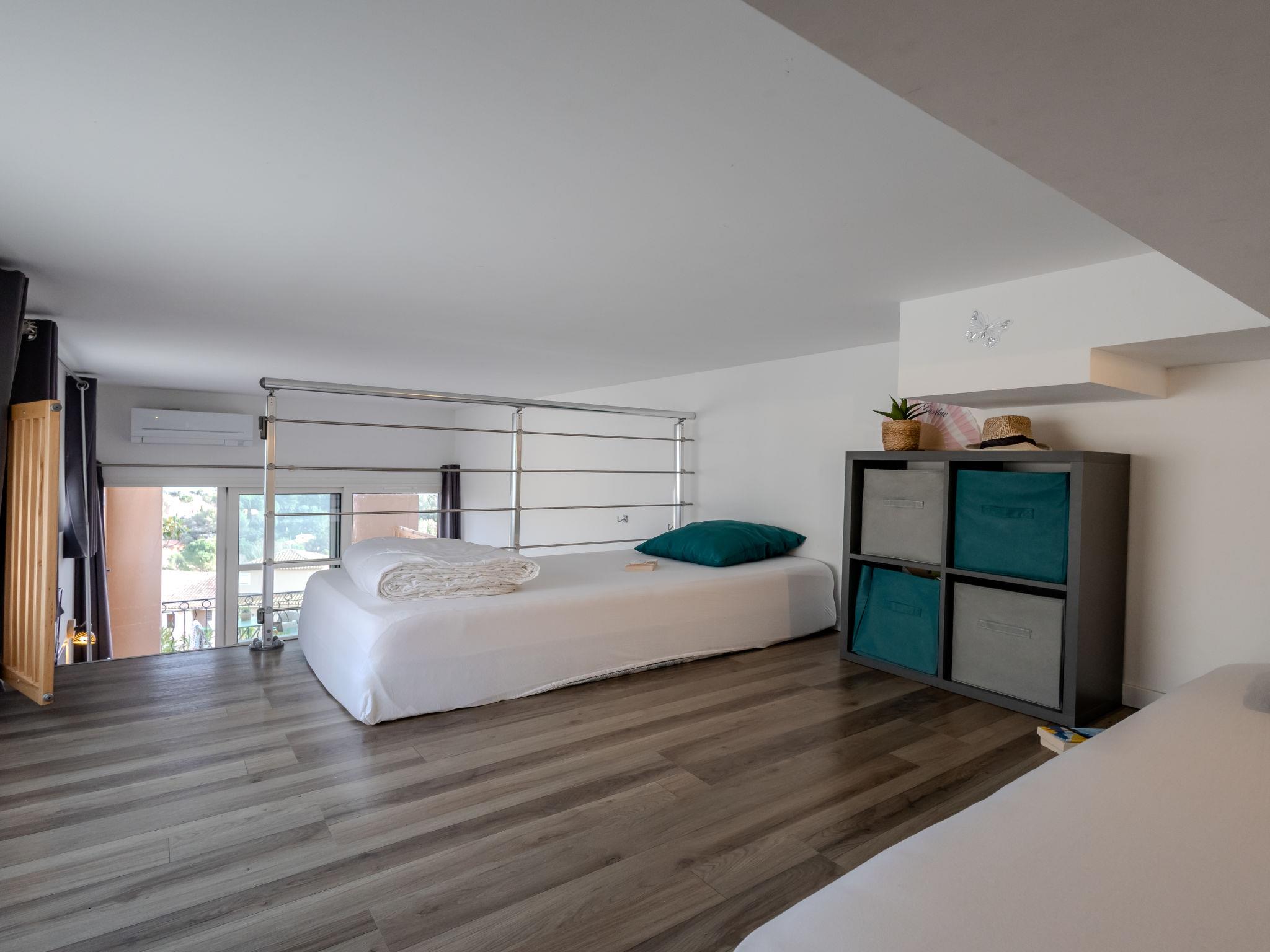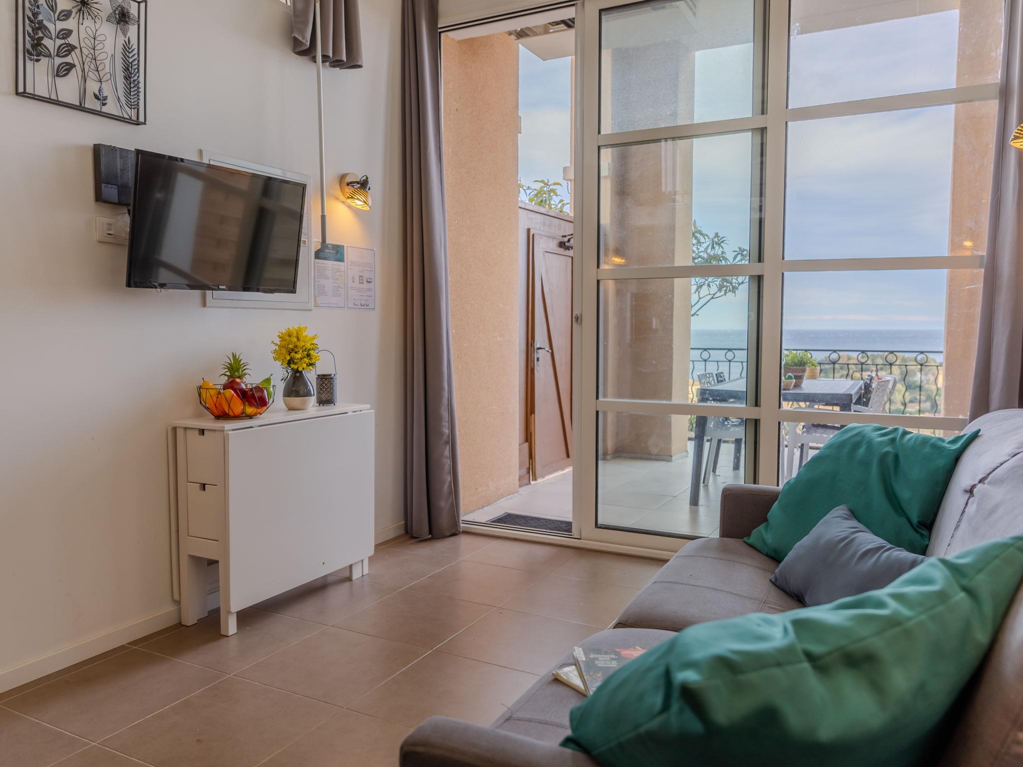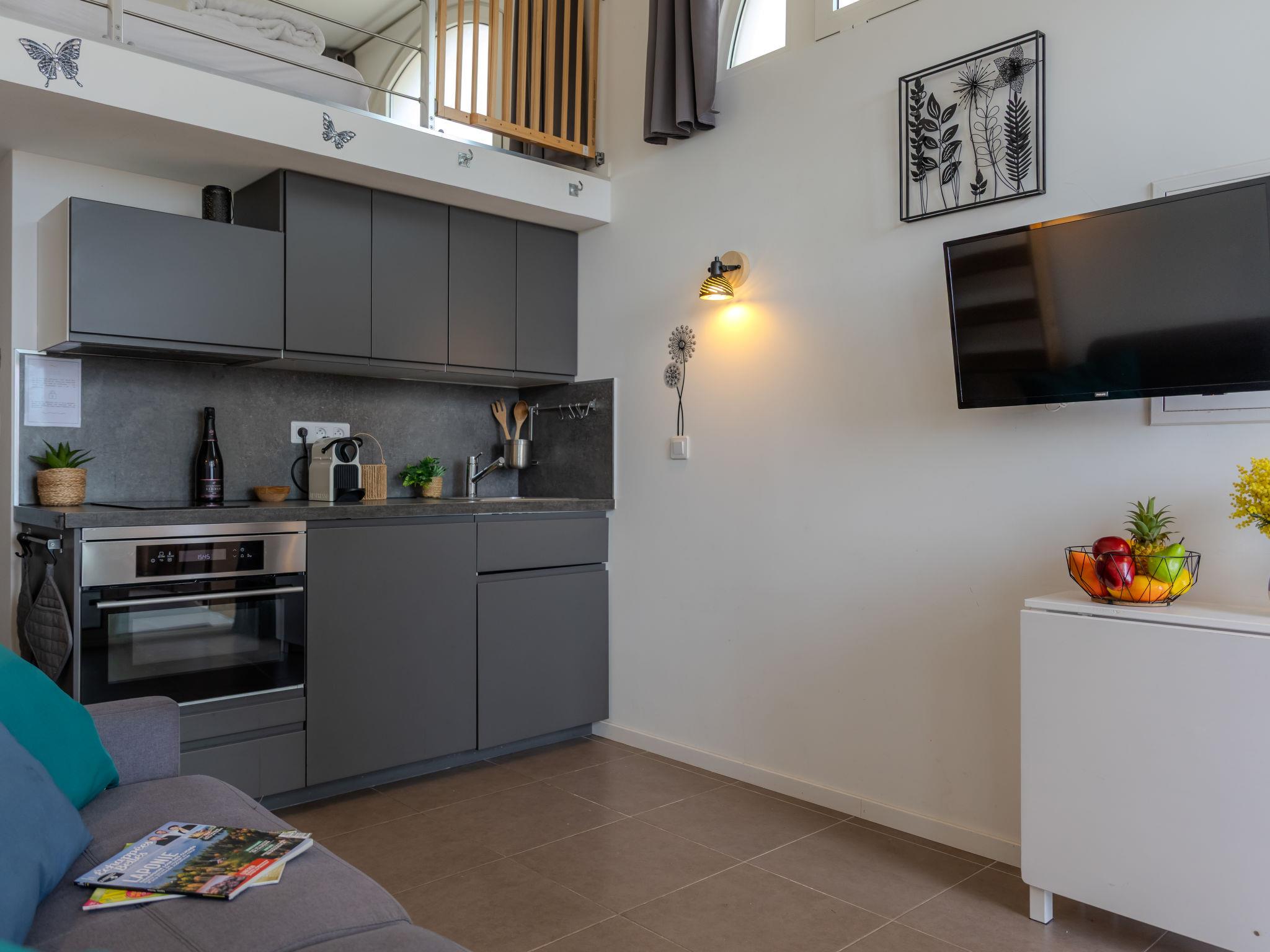"J6 174 L'Esquinade", 2-room apartment 28 m2 on 2 levels, on the ground floor. With sloping ceilings, fully renovated in 2024, beautiful and modern furnishings: living/dining room with sloping ceilings, - 330 cm with 1 double sofabed (140 cm, length 190 cm), TV (flat screen). Exit to the terrace. 1 room with sloping ceilings, - 330 cm with 1 french bed (140 cm, length 190 cm). Small, open kitchen (oven, 2 induction hot plates, toaster, kettle, electric coffee machine, Capsules for coffee machine (Nespresso) extra) with dining table. Shower/WC. Electric heating, air-conditioning, forced-air heating. Upper floor: (steep stair) gallery with 2 beds (90 cm, length 190 cm). Terrace 15 m2, roofed, south facing position. Terrace furniture. Very beautiful view of the sea. Facilities: washing machine, iron, hair dryer. Internet (WiFi, extra). Parking (1 car). Please note: non-smokers only. Smoke alarm. Offer by a private individual according to Art. 155, IV of CGI.