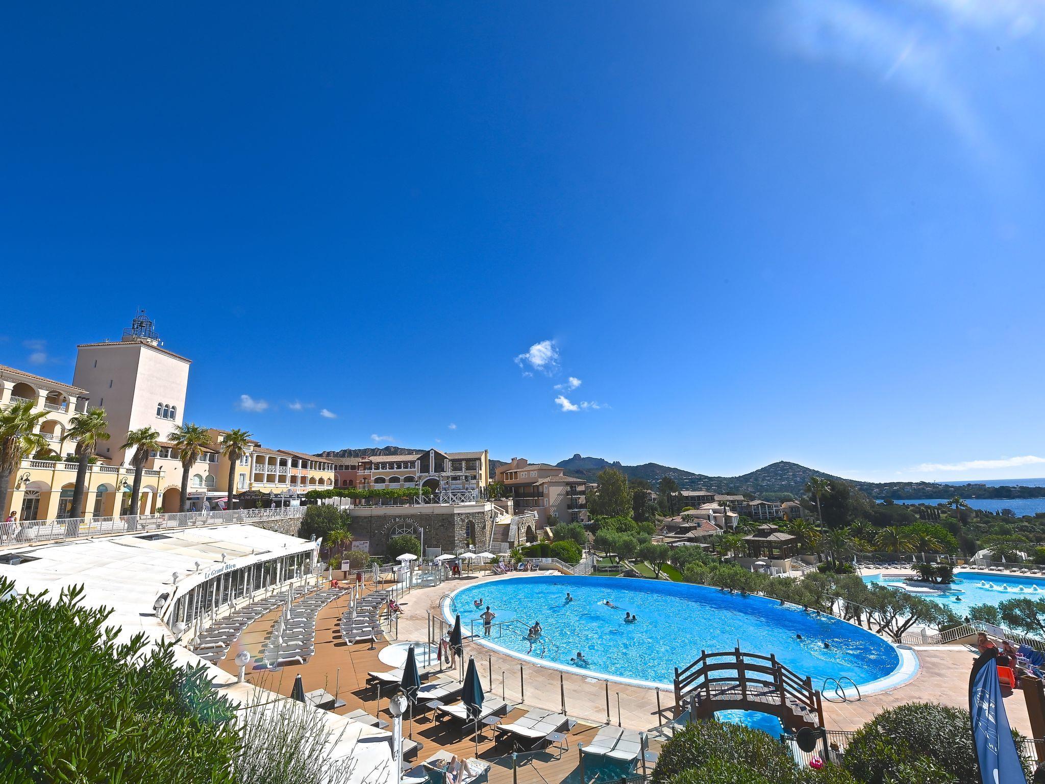 Large resort "Village Cap Estérel - L'Esquinade", built in 1990. On the outskirts, 2 km from the centre of Agay, on a slope, in the residential district, 900 m from the sea, 900 m from the beach, road to cross, on the golf course, in a pedestrian area. For shared use: park 210 ha, 5 swimming pools (seasonal availability: 06.Apr. - 03.Nov.). Children's pool, boccia, children's playground (slide, swing). In the complex: spa area (extra), shopping facilities, laundry (extra). Shop, grocery 500 m, supermarket 6 km, restaurant, bakery, café, bicycle rental 500 m, bus stop "Ligne 21" 300 m, railway station "Saint-Raphaël-Valescure - Agay" 9 km, sandy beach "Le Pourrousset" 800 m. Marina 1 km, golf course (9 hole) 300 m, tennis 500 m. Nearby attractions: Anthéor 8 km, Saint-Raphaël 9 km, Fréjus 13 km, Cannes 33 km, Saint-Tropez 50 km, Nice 76 km. Well-known lakes can easily be reached: Lac Saint-Cassien. Hiking paths: Massif de l'Estérel. Please note: car-free holiday complex, no lift. Entertainment in the season. Suitable for families, childminding in the season (extra). Guarded residence. The keys‘ handover takes place by the agency Interhome in Cap Estérel. The apartment is located in a zone with limited traffic. Additional accommodations can be booked. Access to the apartments is via steps, even on the ground floor.