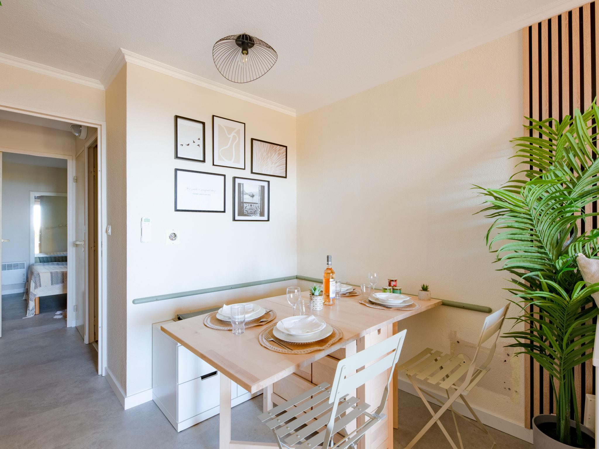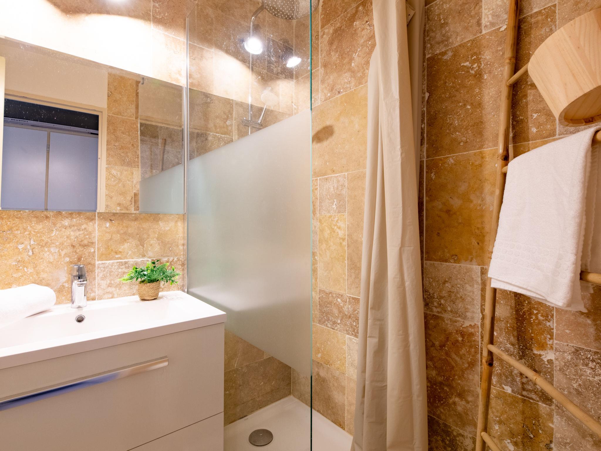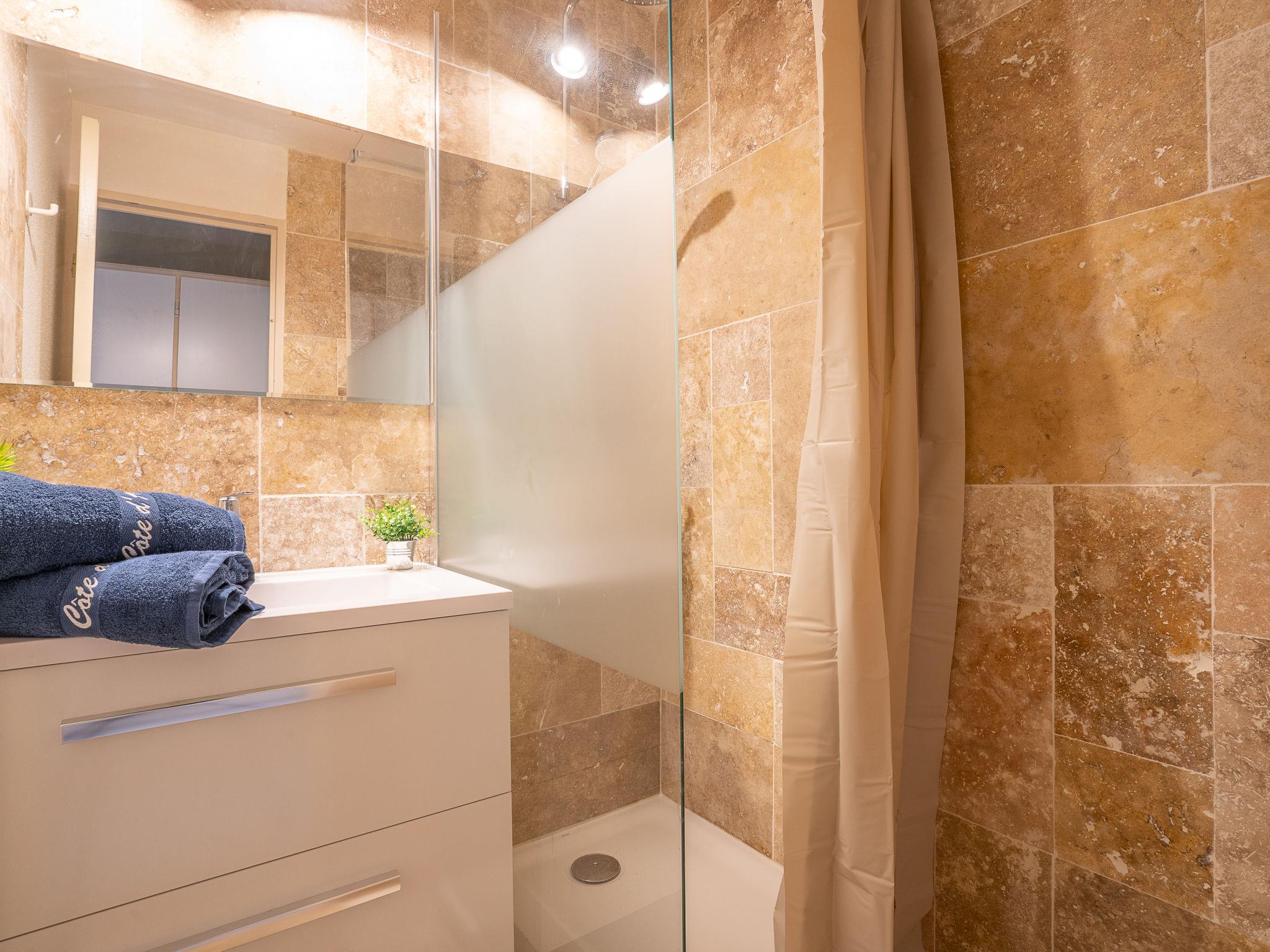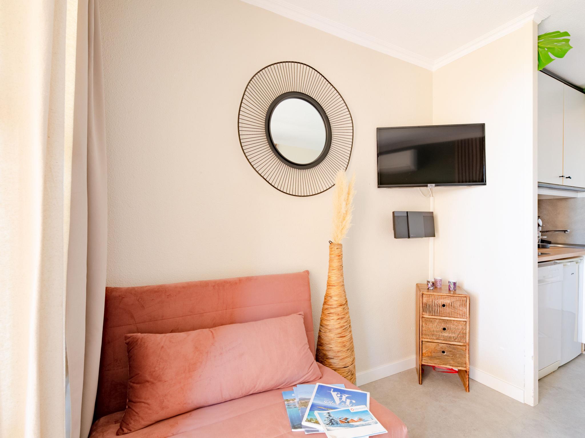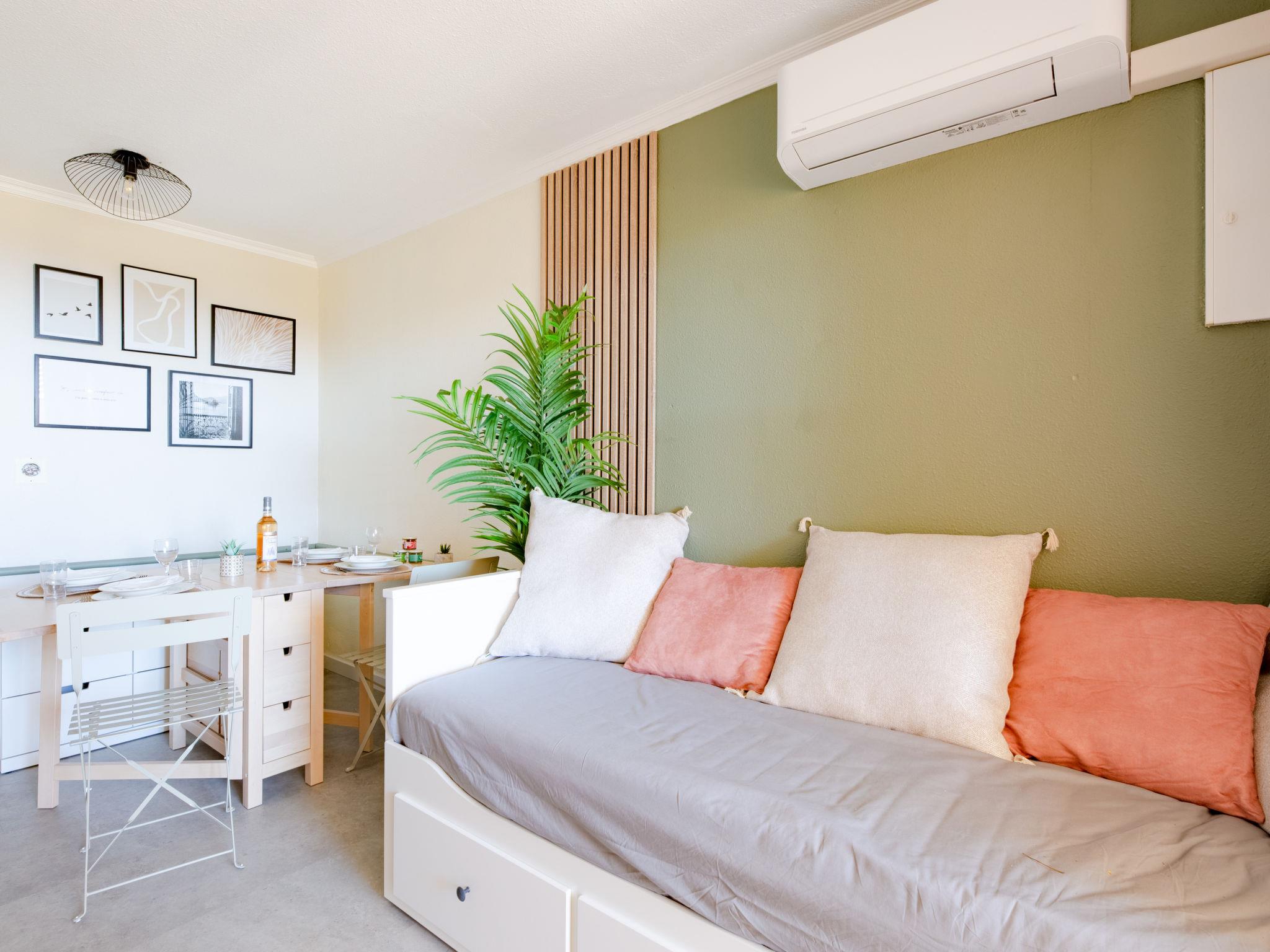 "L'Esquinade (G3 033)", 2-room apartment 30 m2, on the ground floor. Renovated in 2022, comfortable furnishings: living room with 1 pull-out bed (2 x 80 cm, length 190 cm), TV (flat screen), air conditioning. Exit to the terrace, to the patio. 1 room with 1 french bed (140 cm, length 190 cm). Kitchenette (2 hot plates, dishwasher, toaster, kettle, microwave, freezer, electric coffee machine, Capsules for coffee machine (Nespresso) extra). Shower, sep. WC. Electric heating. Terrace 12 m2, patio. Terrace furniture, deck chairs (1). View of the sea. Facilities: children's high chair, baby cot for up to 2 year olds. Internet (WiFi, extra). Parking space n 2670 (roofed, 1 car), height 180 cm. Please note: suitable for families. Non-smokers only. Maximum 1 small pet/ dog allowed. Smoke alarm. Offer by a private individual according to Art. 155, IV of CGI.