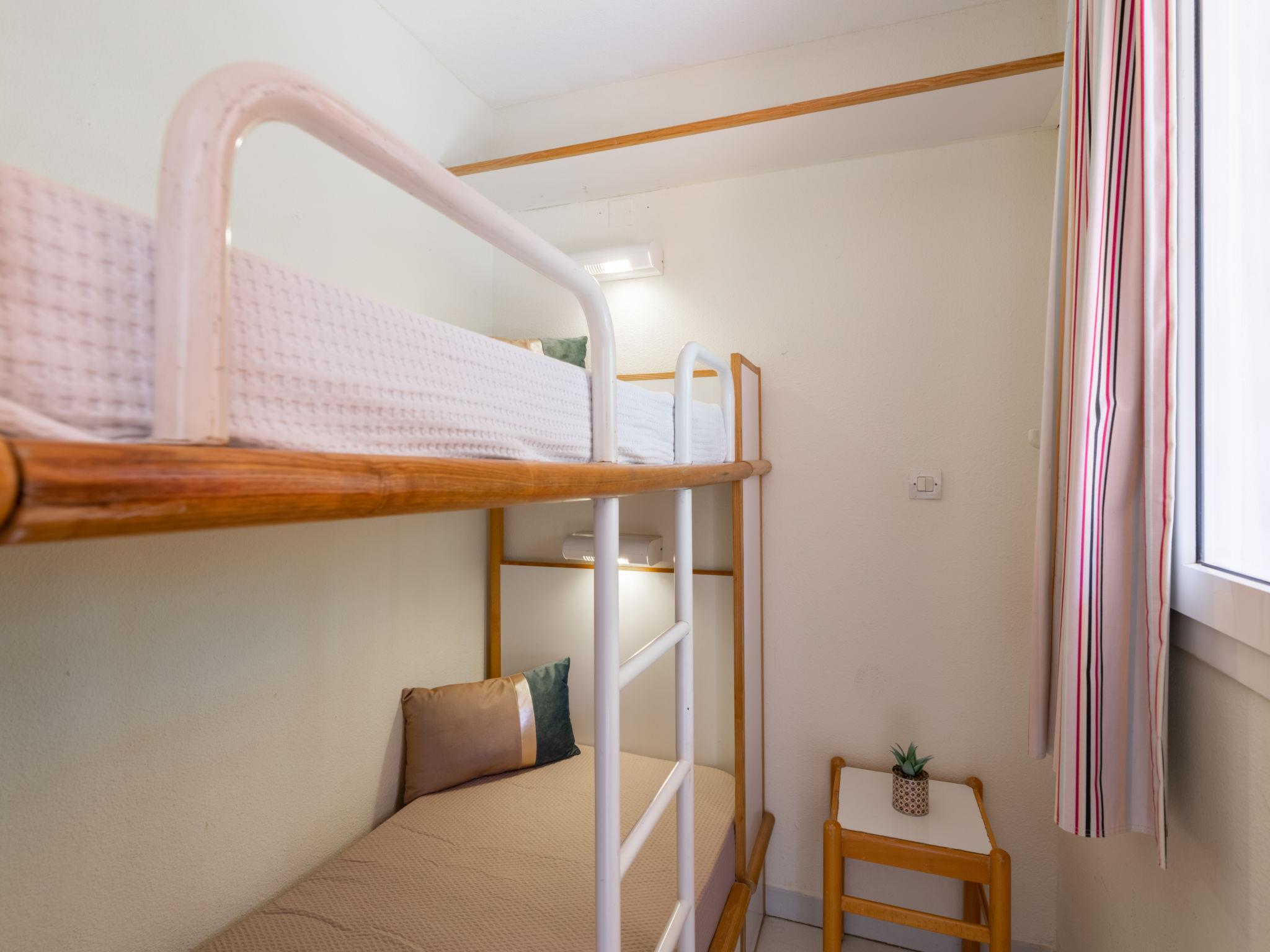 "Le Hameau (K3 122)", 3-room apartment 40 m2, on the ground floor. Living room with 2 sofabeds (80 cm, length 190 cm), TV (flat screen). Exit to the terrace. 1 room with 1 french bed (140 cm, length 190 cm). Sleeping alcove with 1 x 2 bunk beds (80 cm, length 190 cm). Kitchenette (mini-oven, dishwasher, toaster, kettle, electric coffee machine). Bathroom, shower, sep. WC. Electric heating. Terrace 8 m2, roofed. Terrace furniture. View of the sea and the mountains. Facilities: Internet (WiFi, extra). Parking space n 2313 - 2,20m x 3,30m (roofed, 1 car), height 180 cm. Please note: non-smokers only. 1 small pet/ dog allowed. Smoke alarm. Instead of an enclosed bedroom, some sleeping areas are located in an open-plan area (gallery, alcove, etc.). Offer by a private individual according to Art. 155, IV of CGI.