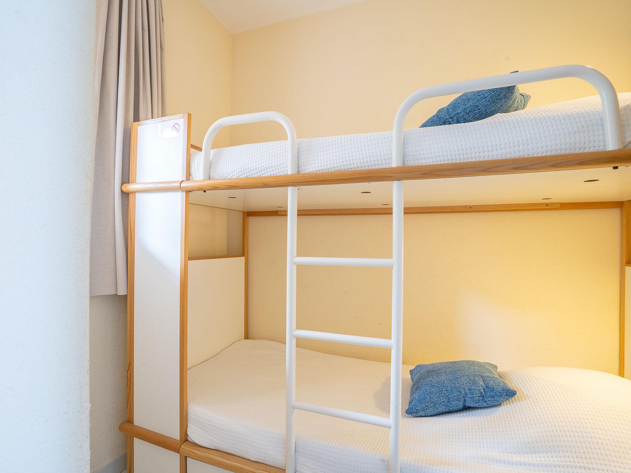 "Hameau (N1 208)", 3-room apartment 38 m2 on 2nd floor. Living room with 2 sofabeds (80 cm, length 190 cm), TV (flat screen), air conditioning. Exit to the terrace. 1 room with 1 french bed (140 cm, length 190 cm). Sleeping alcove with 2 x 2 bunk beds (80 cm, length 190 cm). Open kitchen (mini-oven, oven, dishwasher, 4 ceramic glass hob hotplates, toaster, kettle, microwave, freezer, electric coffee machine). Bathroom, shower/WC. Electric heating. Terrace 10 m2. Terrace furniture. View of the sea. Facilities: baby cot for up to 2 year olds. Internet (WiFi, extra). Parking space n 2301 (roofed, 1 car), height 180 cm. Please note: smoke alarm. Instead of an enclosed bedroom, some sleeping areas are located in an open-plan area (gallery, alcove, etc.). Offer by a private individual according to Art. 155, IV of CGI. 51322122600048