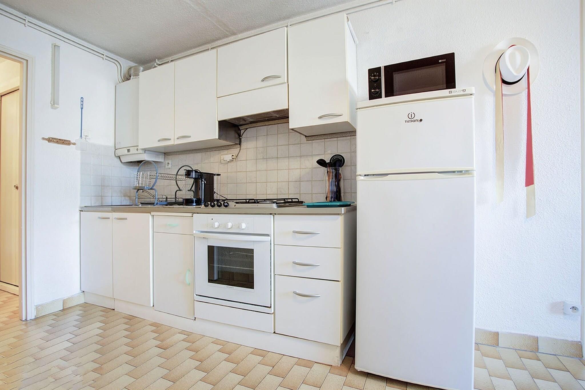 Beliggende i en fredelig forstad kun 300 meter fra både sandstranden og den pulserende bymidte, tilbyder denne moderne lejlighed på 50 m² i Agde et indbydende tilflugtssted for op til seks gæster. Med et hyggeligt soveværelse og en rummelig opholdsstue med to enkeltsenge og en dobbelt sovesofa, er den designet til komfort og bekvemmelighed. Den familievenlige beliggenhed gør den ideel til strandferier, byvandringer og afslappede aftener på den private terrasse. Lejligheden er omhyggeligt udstyret med alt hvad du behøver for et ubekymret ophold. Nyd den fælles swimmingpool, udendørs parkering og et fuldt udstyret induktionskøkken med køleskab, mikroovn, opvaskemaskine, kaffemaskine og meget mere. En vaskemaskine tilføjer ekstra lethed ved længere ophold, mens tv'et og udendørsmøblerne inviterer dig til at slappe af indendørs eller udendørs. Uanset om du rejser med familie eller venner, blander dette hjemlige rum moderne bekvemmeligheder med kystcharme. Fra morgenstrandture til solnedgangsmiddage på terrassen, hvert øjeblik her er designet til at hjælpe dig med at slappe af, genoplade og skabe varige minder i hjertet af Languedoc-Roussillon.