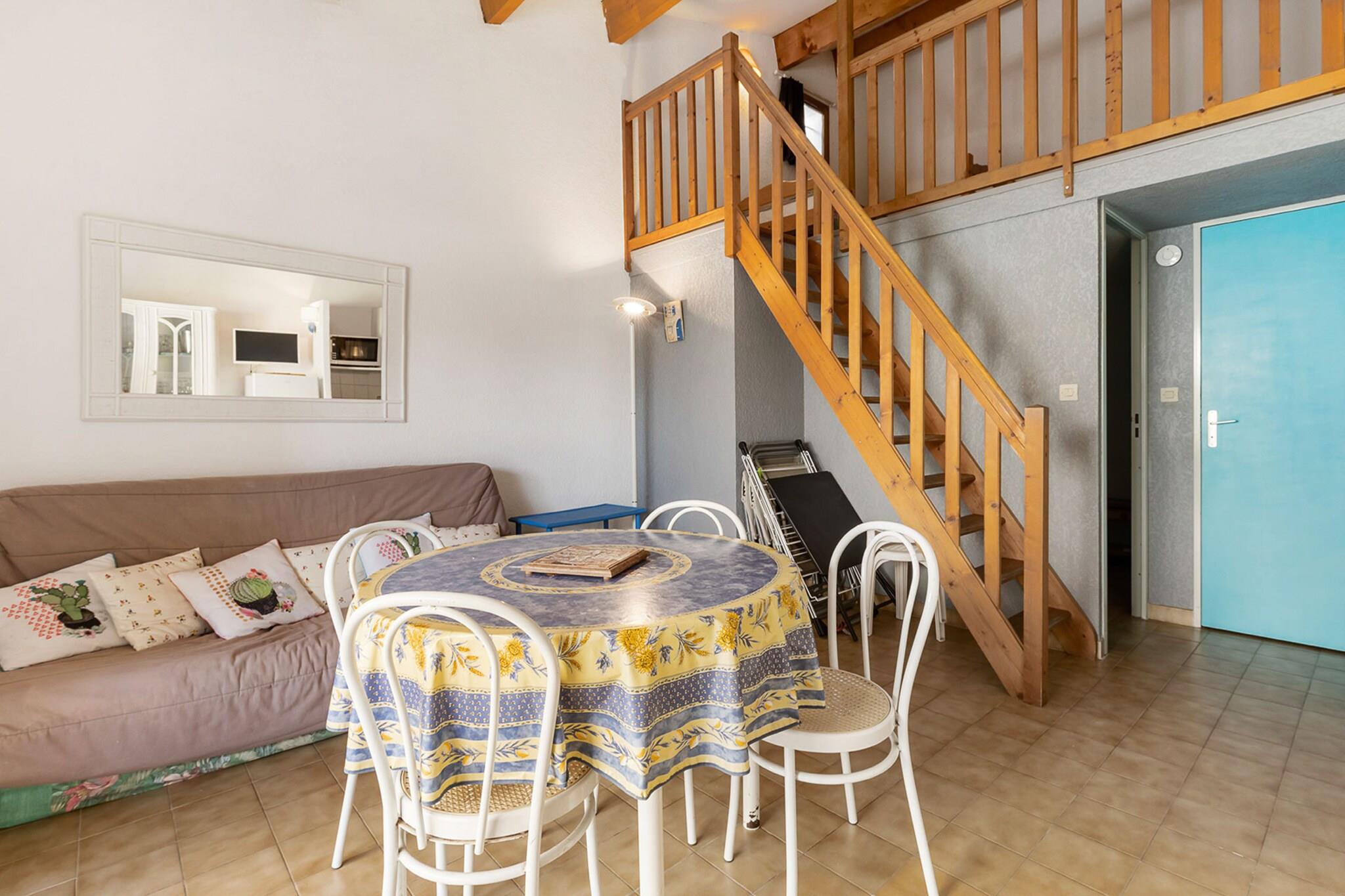 Dette charmerende 1-værelses hus i Agde byder på en rummelig planløsning på 40 m², der komfortabelt kan rumme op til seks gæster. Beliggende kun 350 meter fra både sandstranden og byens centrum, er det beliggende i en rolig, familievenlig forstad - perfekt for dem, der søger både afslapning og nem adgang til lokale attraktioner. Den private terrasse med havemøbler og aircondition sikrer et behageligt ophold på alle årstider. Kvarteret er ideelt for familier, med markeder, caféer og butikker inden for gåafstand. Gæsterne kan nyde den fælles swimmingpool til en forfriskende dukkert eller tage en afslappet spadseretur til den nærliggende strand. Uanset om du udforsker byen eller nyder solen, byder placeringen på en levende, men fredelig atmosfære. Indvendigt er køkkenet i åbent plan fuldt udstyret med el-komfur, køleskab, mikroovn, fryser, kaffemaskine, elkedel og alle nødvendige redskaber. Efter en dag ude kan du slappe af foran tv'et eller slappe af på terrassen omgivet af ro. Med tankevækkende faciliteter såsom en vaskemaskine og aircondition er dette hyggelige hus en perfekt hjemmebase for din Agde-ferie.