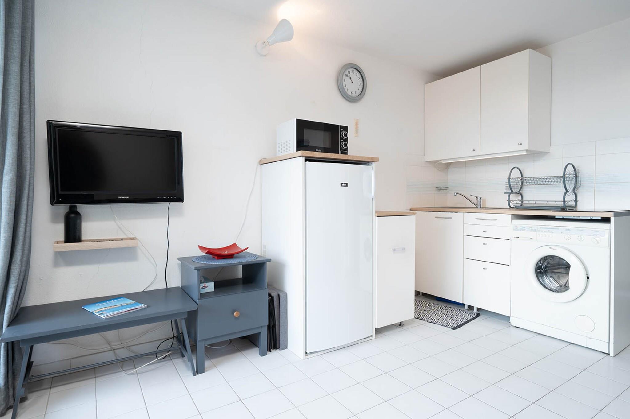 Slap af i denne charmerende 22 m² store lejlighed i Agde, et lunt og stilfuldt tilflugtssted for op til 4 gæster. Perfekt placeret kun 100 meter fra sandstranden, det tilbyder en rolig flugt i et familievenligt kvarter med alt det væsentlige lige ved hånden - restauranter (100 m), et supermarked (300 m) og havets blide rytme lige uden for døren. Træd ind i den lyse stue og ud på balkonen, hvor udendørsmøbler og udsigt til havnefronten inviterer til at dvæle ved morgenkaffe eller solnedgangsdrinks. Indvendigt har lejligheden et komfortabelt soveværelse, et badeværelse og et fuldt udstyret åbent køkken med køleskab, mikroovn, kaffemaskine, brødrister og alt det køkkenudstyr, der er nødvendigt for nem tilberedning af måltider. Gæsterne nyder tankevækkende faciliteter, herunder en fælles swimmingpool, elevator, vaskemaskine, tv, elvarme og en ventilator - hvilket sikrer komfort i hver sæson. Udendørs parkering på stedet tilføjer ekstra bekvemmelighed for dem, der ankommer i bil. Uanset om du soler dig i solen, udforsker Agdes kystcharme eller blot nyder den fredelige stemning fra din altan, tilbyder denne lejlighed en dejlig og velbeliggende base for din middelhavsferie.