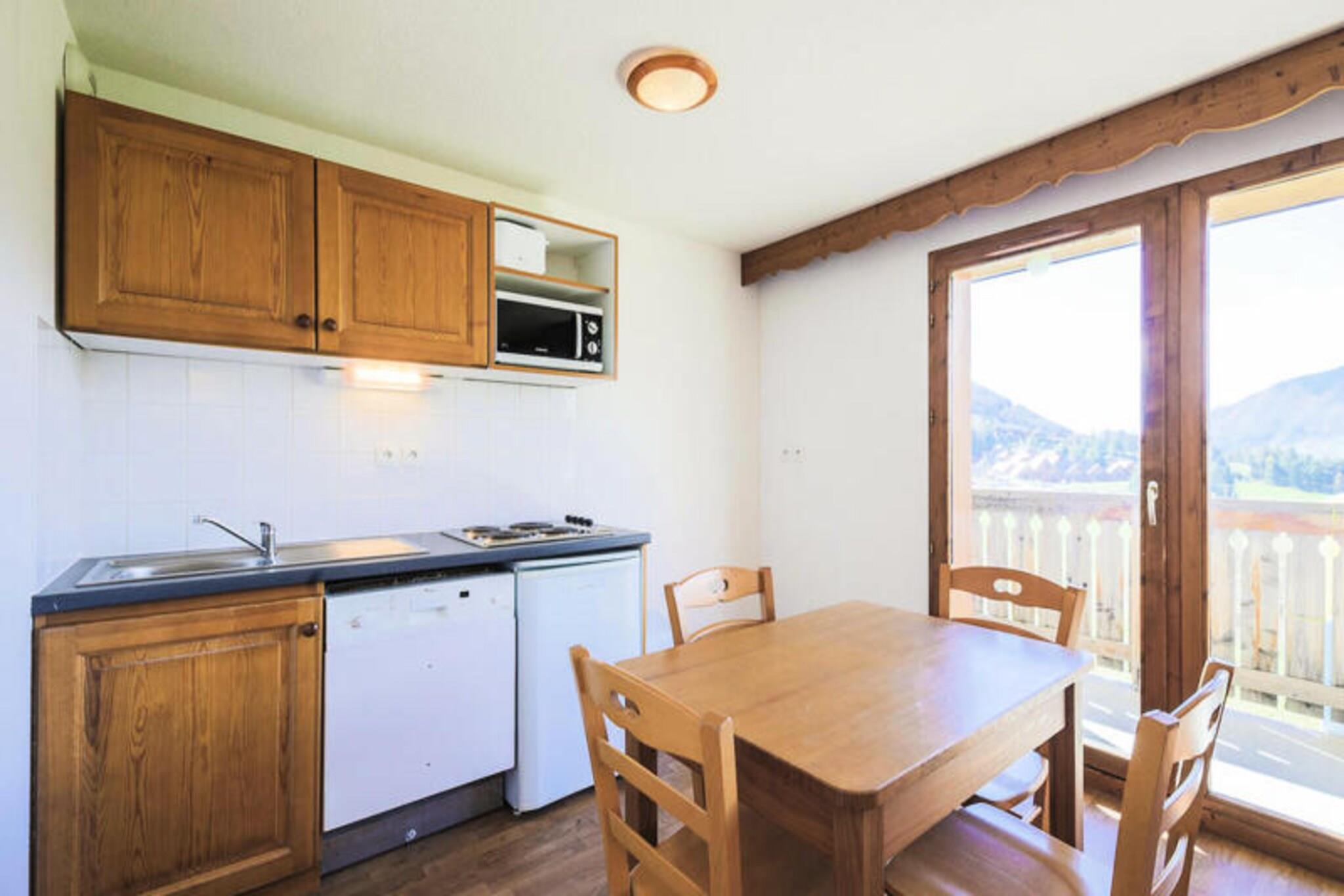 Denne charmerende hytte på første sal er ideel til en afslappende ferie i bjergene. Det har en hyggelig opholdsstue med en sovesofa til to og et separat soveværelse med køjesenge. Kæledyr er velkomne mod et ekstra gebyr. Sengetøj og håndklæder er tilgængelige efter anmodning, og ejendommen tilbyder også mulighed for slutrengøring, som er obligatorisk. Beliggende i den fredelige landsby La Joue du Loup i de sydlige alper, er hytten omgivet af fantastiske alpine landskaber og tilbyder fremragende solskin. Gæsterne kan udforske lokale caféer, butikker og restauranter, alle let tilgængelige. I sommermånederne kan du nyde adgangen til den udendørs pool, som er den perfekte måde at slappe af i det varme vejr. Hytten er udstyret med et fuldt åbent køkken, så gæsterne kan tilberede måltider, mens de nyder bjergudsigten. Et spisebord til fire og et separat badeværelse med badekar og toilet bidrager til komforten. Med sin hyggelige atmosfære og bekvemme faciliteter tilbyder denne hytte et vidunderligt tilflugtssted i hjertet af Alperne.