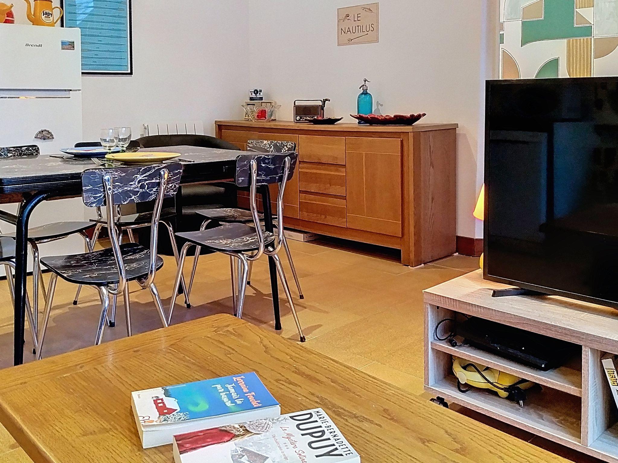 Single-family house "Le Nautilus". In the resort, 250 m from the sea, 250 m from the beach. Private: garden 80 m2 (fenced). Grocery 1 km, supermarket 1 km, shopping centre 300 m, restaurant 200 m, bakery 300 m, bus stop 10 km. Golf course (18 hole) 1 km, sailing school 500 m, riding stable 1 km. Nearby attractions: Coutances 12 km, Granville 45 km, Cherbourg 80 km, Mont-St-Michel 85 km.