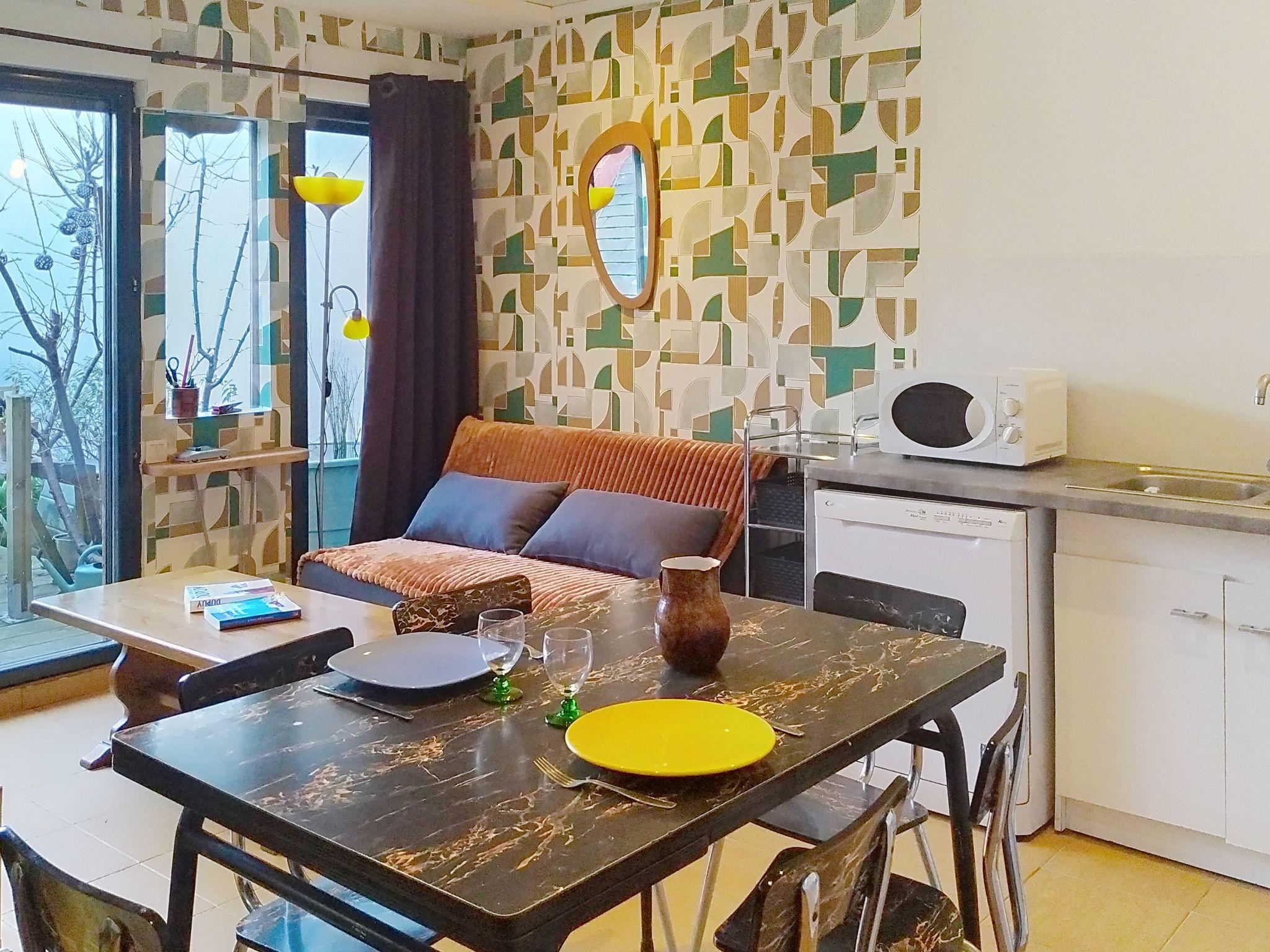 2-room house 35 m2. Comfortable and cosy furnishings: lounge with TV (flat screen). Exit to the terrace. Living/dining room. 1 room with 1 french bed (140 cm, length 190 cm). Open kitchen (4 hot plates, oven, toaster, kettle, microwave, electric coffee machine). Shower/WC. Parking (1 car). Please note: non-smokers only. Maximum 1 small pet/ dog allowed. Smoke alarm. Offer by a private individual according to Art. 155, IV of CGI.