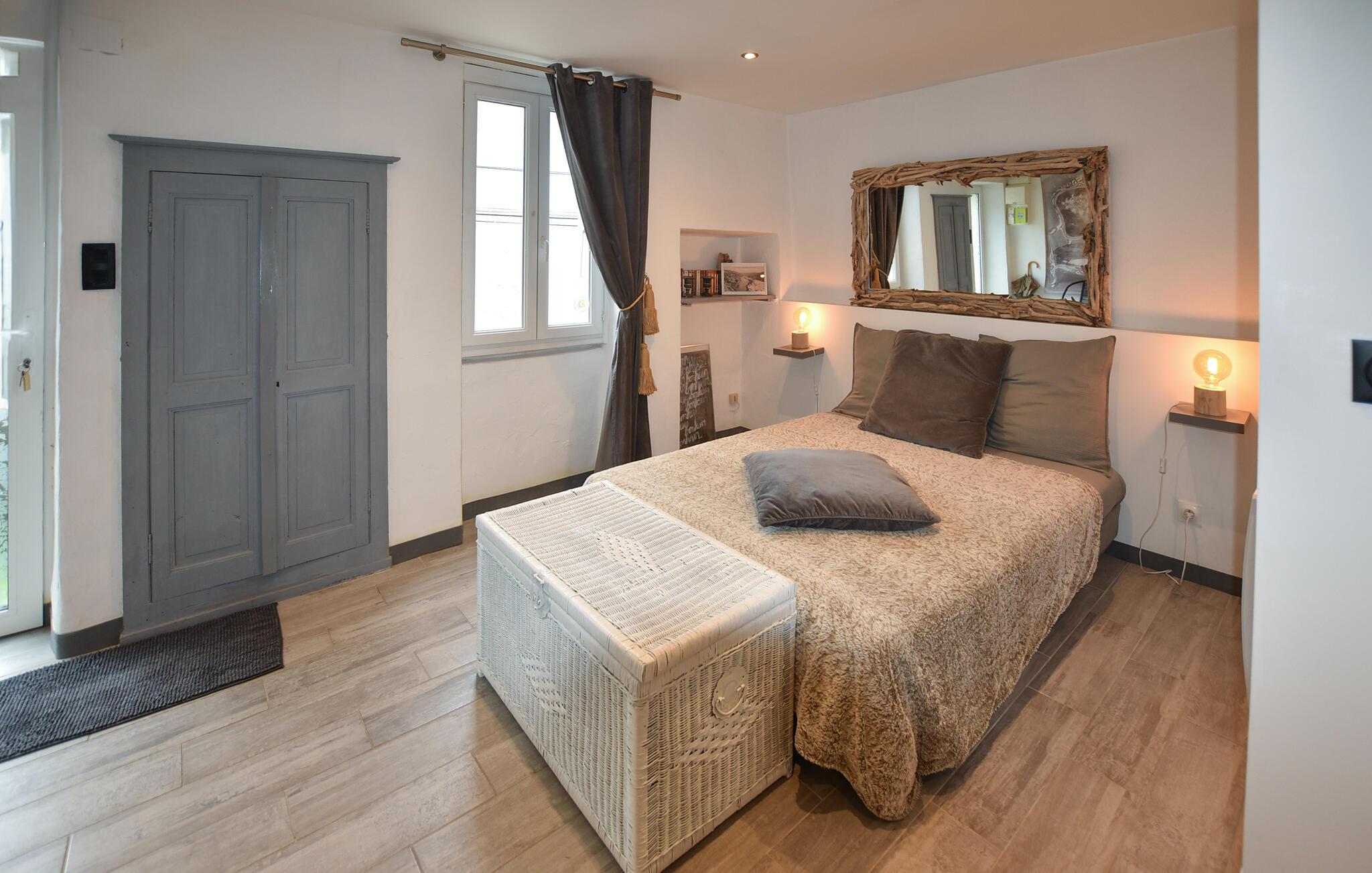 Den varme indretning og de rummelige omgivelser gør det nemt at føle sig hjemme her. Huset, med sin hyggelige terrasse og charmerende detaljer, er perfekt til afslappende stunder efter eventyrlige dage i området. Start dagen med en kop kaffe på terrassen, eller nyd de lune aftener under åben himmel. De tykke stenmurene holder huset behageligt køligt om sommeren, og den åbne stue indbyder til hyggelige stunder sammen. Traditionelle elementer forenes harmonisk med moderne bekvemmeligheder og skaber en ideel oase i smukke Aiguèze.