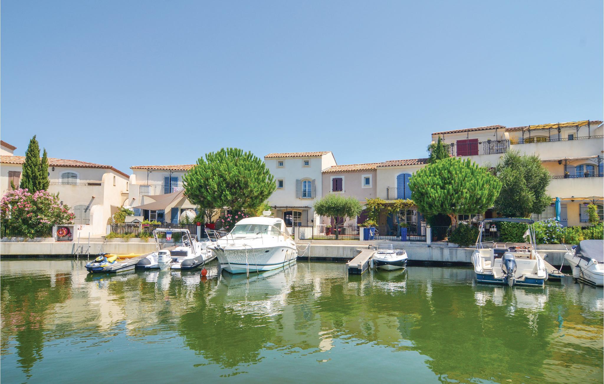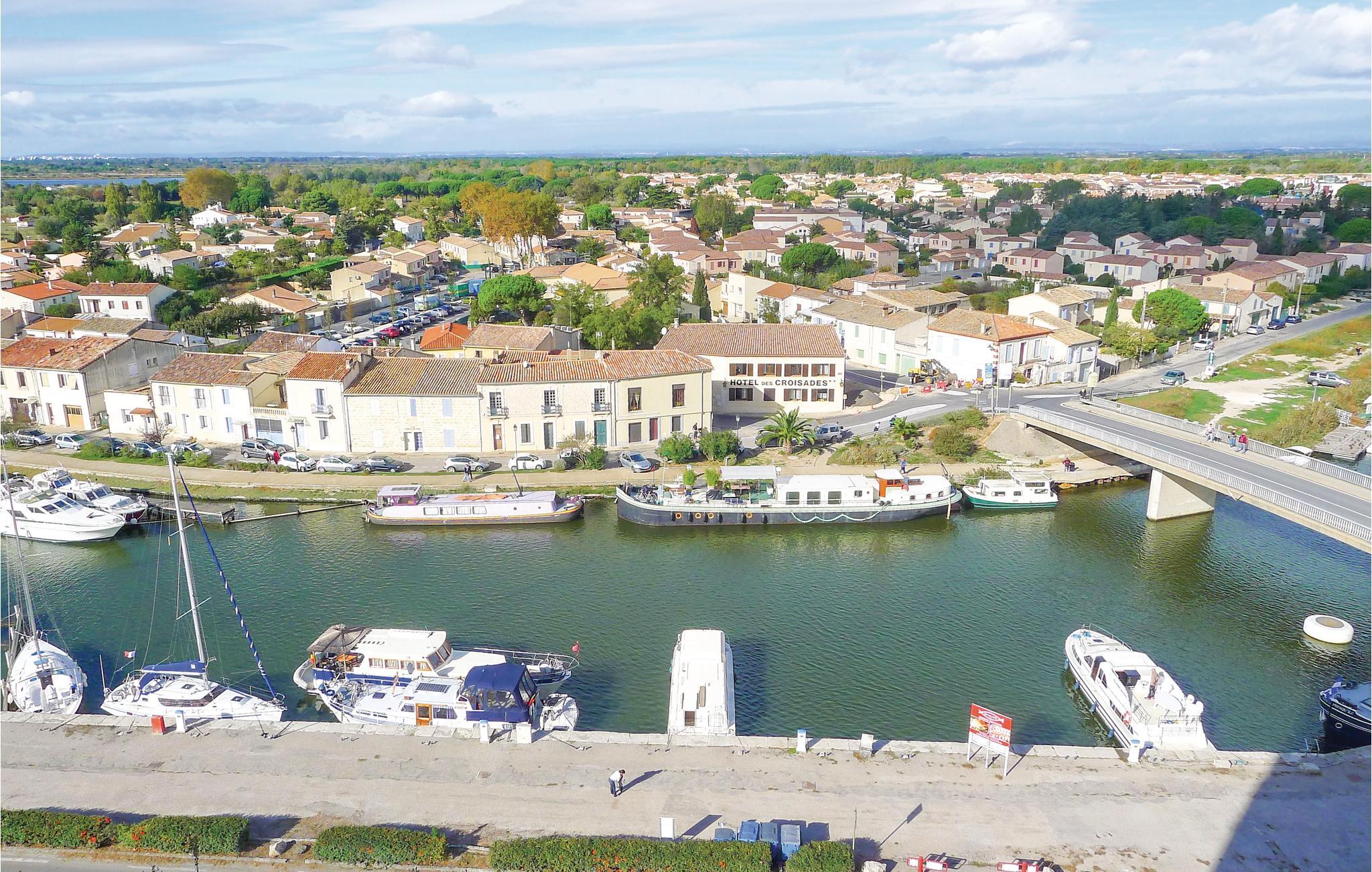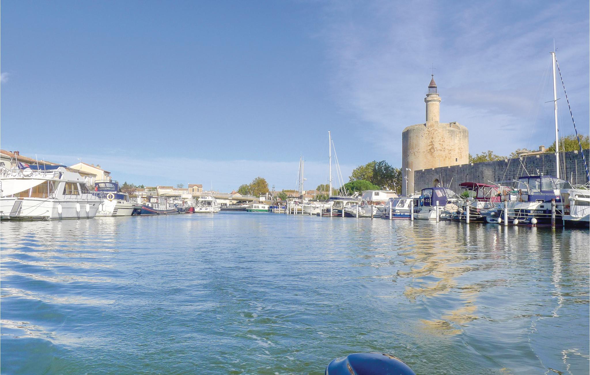 Dejligt feriehus i Aigues-Mortes med herlig udsigt på kanalen og bådstrafikken. Nyd solen på terassen og i haven, mens i ser på båderne, der glider forbi. Husets indretning er elegant og moderne. Gå en tur gennem gamle gader i bymidten og over Place Saint-Louis. Efter en 20 minutters gåtur kommer I til Marinaen, hvor I kan nyde den maritime atmosfære. Opdag den smukke kirke Notre-Dame-des-Sablons og spadser på den gamle bymur, hvorfra I har en fin udsigt på salthaverne. Der er kun 6 km til sandstrandene i Le-grau-du-Roi. Nîmes og Arles looker med imponerende romerske bygninger, og også Montpellier med den populære Place de la Comédie er en udflugt værd. Naturelskere tiltrækkes af Camargue, der efterlader et uforglemmeligt indtryk med sine heste, tyre og lyserøde flamingoer. Med dette dejlige feriedomicil kan jeres ferie i regionen Gard kun blive en succes.