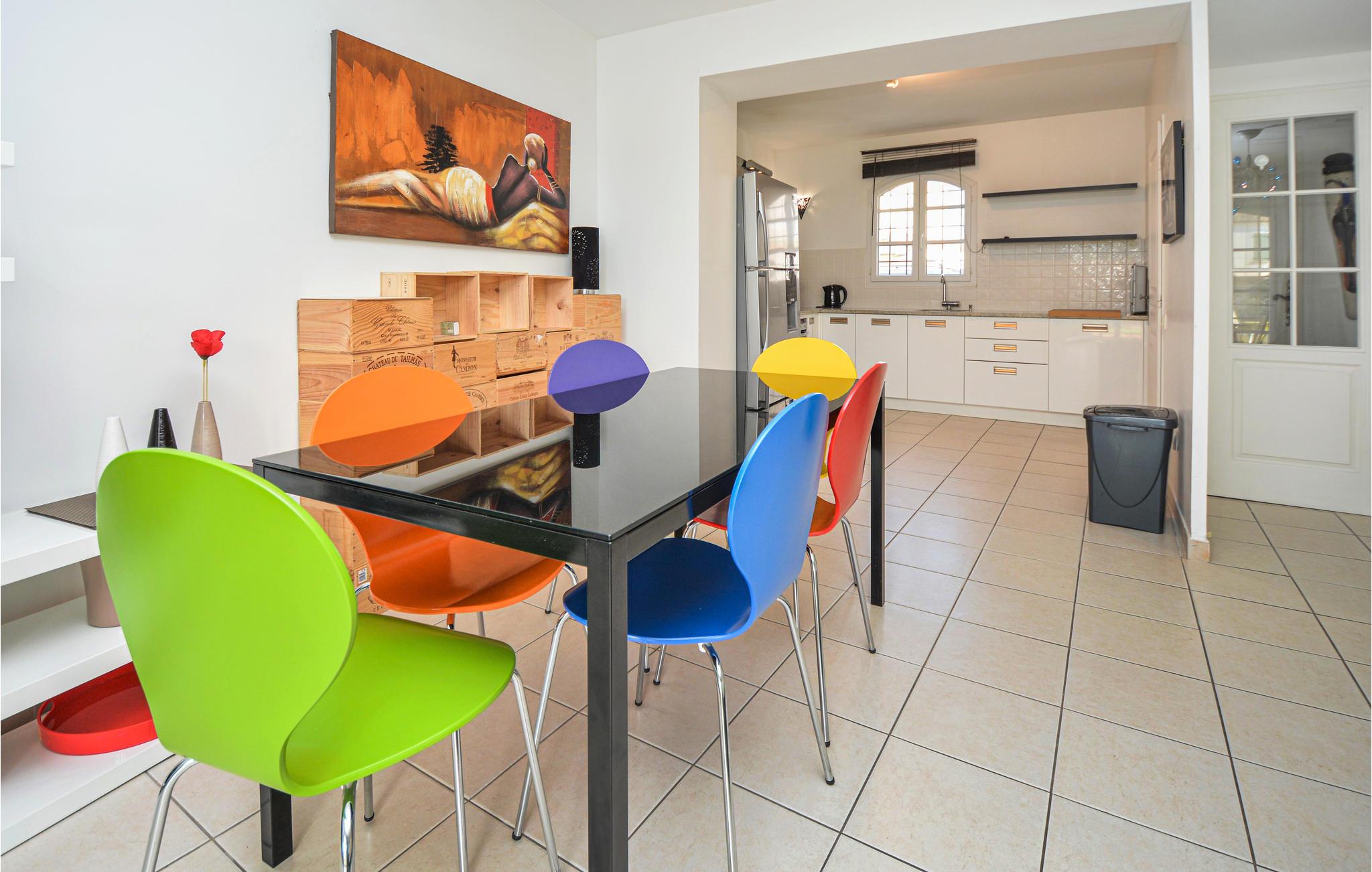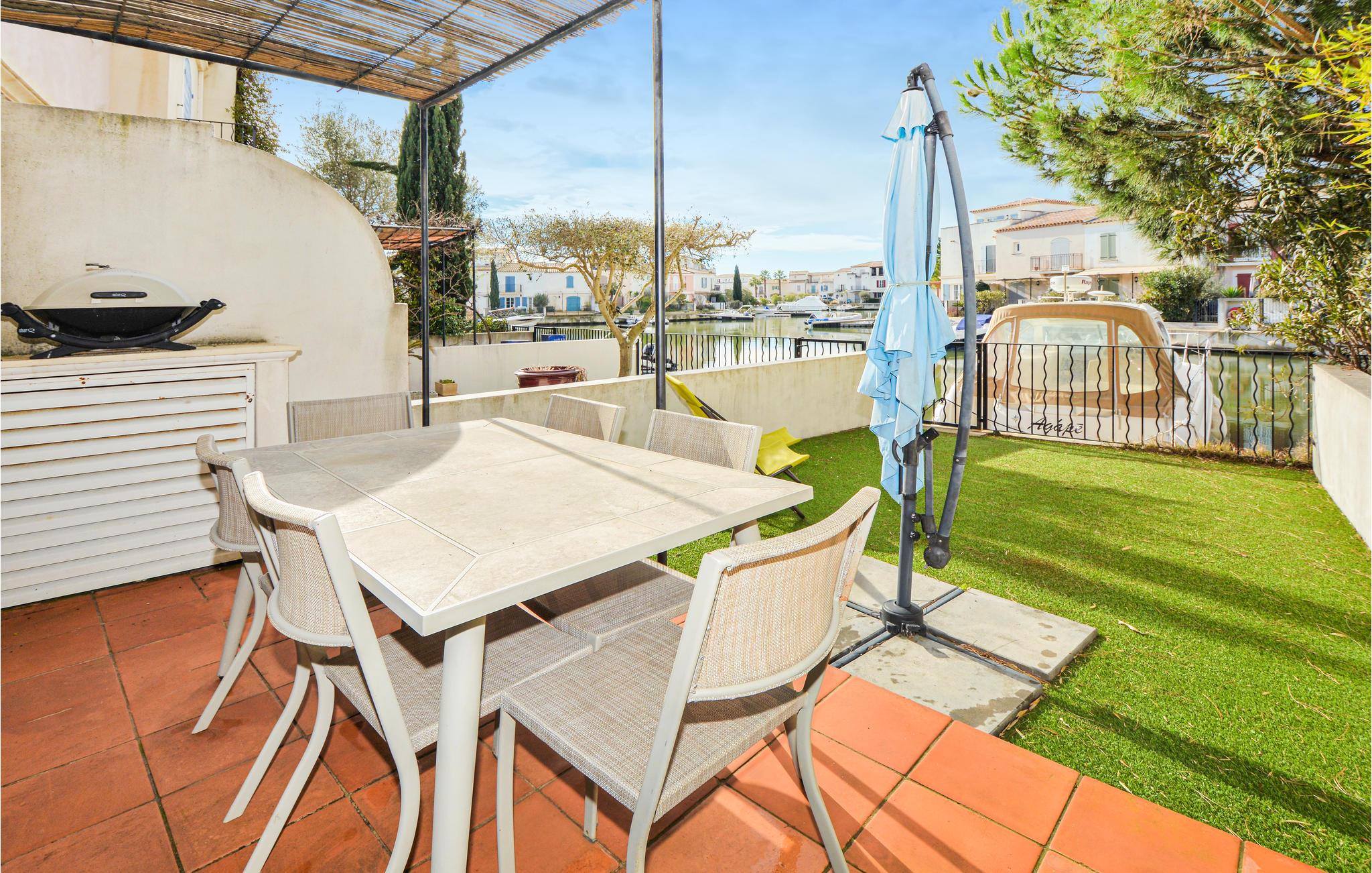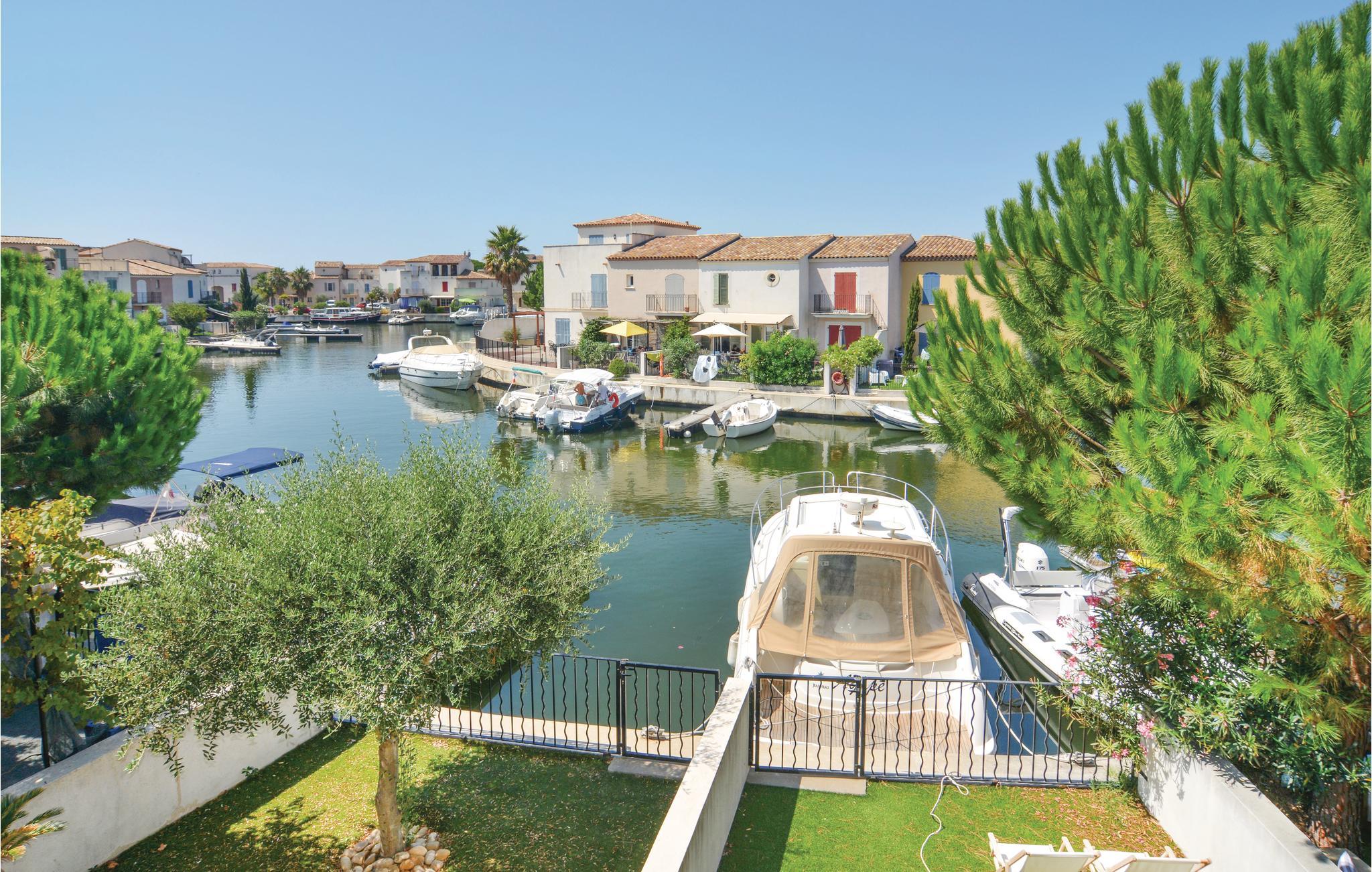 Dejligt feriehus i Aigues-Mortes med herlig udsigt på kanalen og bådstrafikken. Nyd solen på terassen og i haven, mens i ser på båderne, der glider forbi. Husets indretning er elegant og moderne. Gå en tur gennem gamle gader i bymidten og over Place Saint-Louis. Efter en 20 minutters gåtur kommer I til Marinaen, hvor I kan nyde den maritime atmosfære. Opdag den smukke kirke Notre-Dame-des-Sablons og spadser på den gamle bymur, hvorfra I har en fin udsigt på salthaverne. Der er kun 6 km til sandstrandene i Le-grau-du-Roi. Nîmes og Arles looker med imponerende romerske bygninger, og også Montpellier med den populære Place de la Comédie er en udflugt værd. Naturelskere tiltrækkes af Camargue, der efterlader et uforglemmeligt indtryk med sine heste, tyre og lyserøde flamingoer. Med dette dejlige feriedomicil kan jeres ferie i regionen Gard kun blive en succes.