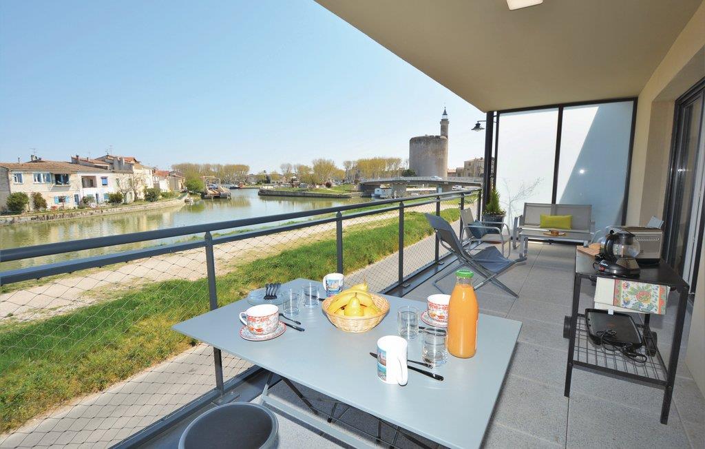 Kanalen fører til Middelhavet, hvor I kan beundre passagen af ??krydstogtskibe samt voldene fra det 13. århundrede og det berømte symbolske tårn i denne smukke by. Denne lejlighed ligger ved porten til Provence på 1. sal i en lukket bolig og har en privat parkeringsplads. Den er smagfuldt møbleret og meget godt udstyret med et amerikansk køkken, et badeværelse og et separat toilet.