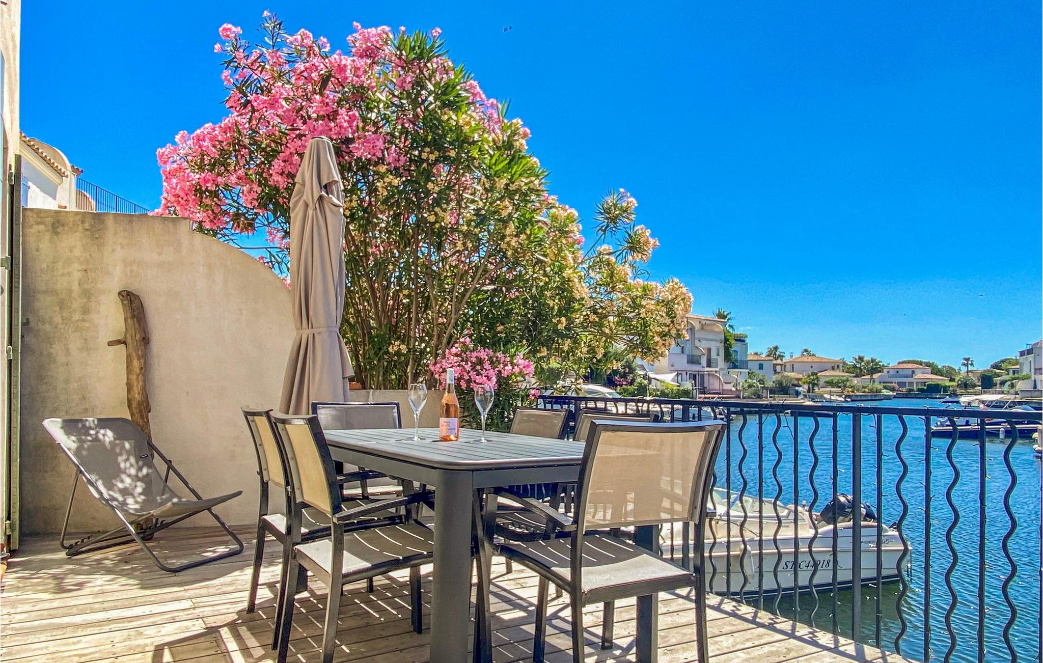 Dette moderne, lyse feriehus i byen Aigues-Mortes er det oplagte sted for en ferie med venner eller familie.Huset er veludstyret med alt, hvad I får brug for på denne ferie. Nyd morgenmaden på den åbne terrasse med udsigt over kanalen, eller sæt jer på en af ??altanerne med en kop kaffe og en god bog. I har også en fælles udendørs pool til rådighed, hvis I trænger til en dukkert. Om aftenen kan I tænde grillen og nyde lækker, hjemmelavet mad og gode samtaler til sent.