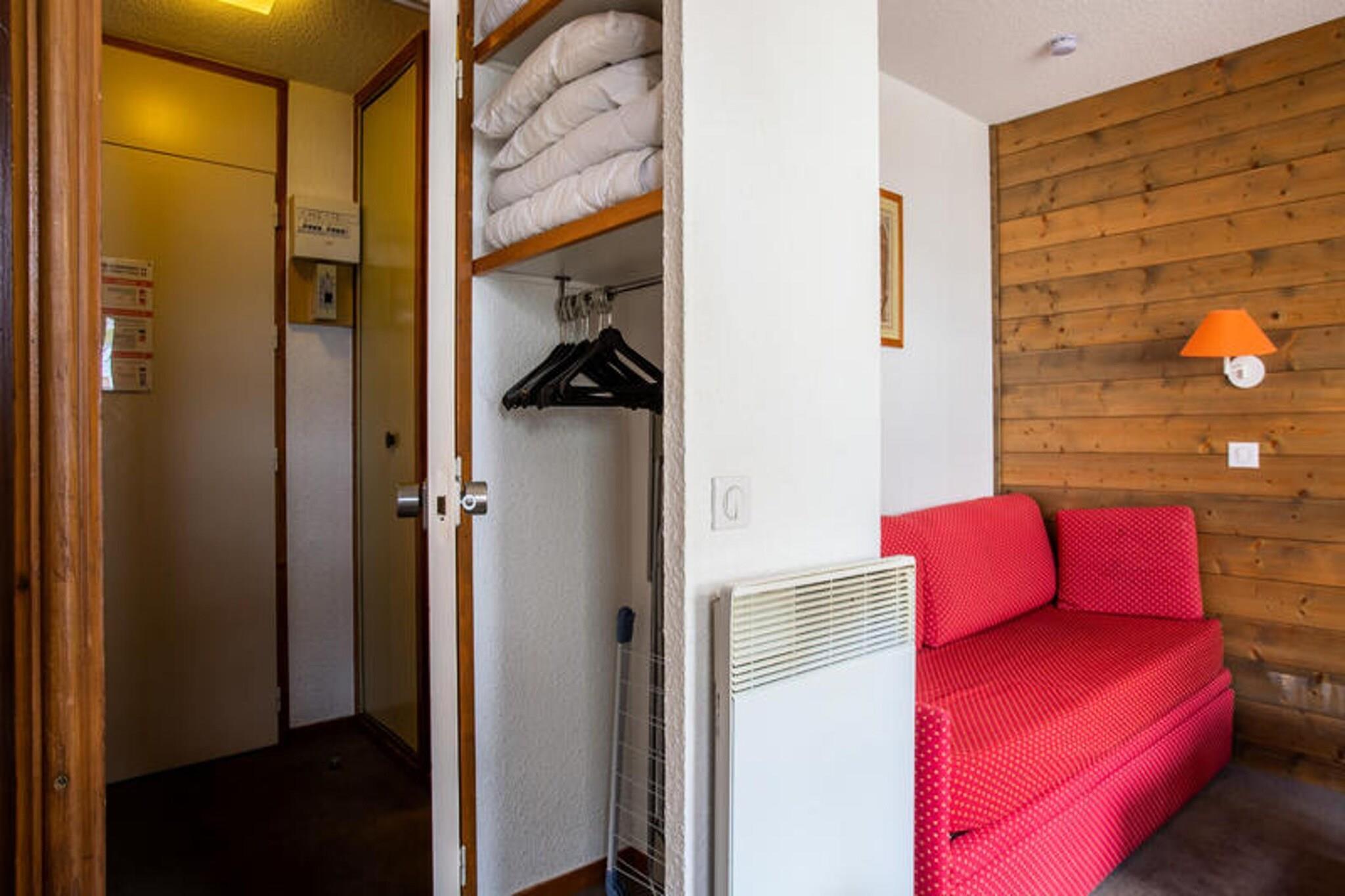 Denne hyggelige studiolejlighed, beliggende i en charmerende træ- og stenhytte, er ideel til en familie eller en gruppe af venner, og tilbyder en sovesofa med plads til to og et kabineområde med to køjesenge. Kæledyr er tilladt mod et ekstra gebyr, og der er gratis parkering om sommeren. Lejligheden er udstyret med altan mod nord/øst, hvilket giver et behageligt uderum. Rengøring er tilgængelig mod et ekstra gebyr, og trådløs internetadgang tilbydes mod et tillæg. Lejligheden er beliggende i hjertet af landsbyens centrum, kun en kort gåtur fra butikker, caféer og underholdningssteder, hvilket gør det til et bekvemt valg for dem, der ønsker at nyde både afslapning og eventyr. Skiløjperne ligger inden for en radius på 100-500 meter, hvilket giver nem adgang til bjergene. Gæsterne kan også nyde nærliggende aktiviteter og udforske lokale markeder, hvor de kan nyde regionale specialiteter. Restauranten K2, som ligger i nærheden, er et fantastisk sted at nyde traditionelle savoyardiske retter. Indvendigt byder lejligheden på et halvåbent køkken, et spisebord med fire stole og et velholdt badeværelse med badekar-bruser kombination. Et separat toilet er tilgængeligt for ekstra bekvemmelighed. Kabineområdet er perfekt til børn eller ekstra gæster, der tilbyder køjesenge i et privat rum. Yderligere tjenester såsom sengelinned, håndklæder og slutrengøring er tilgængelige mod et tillægsgebyr.