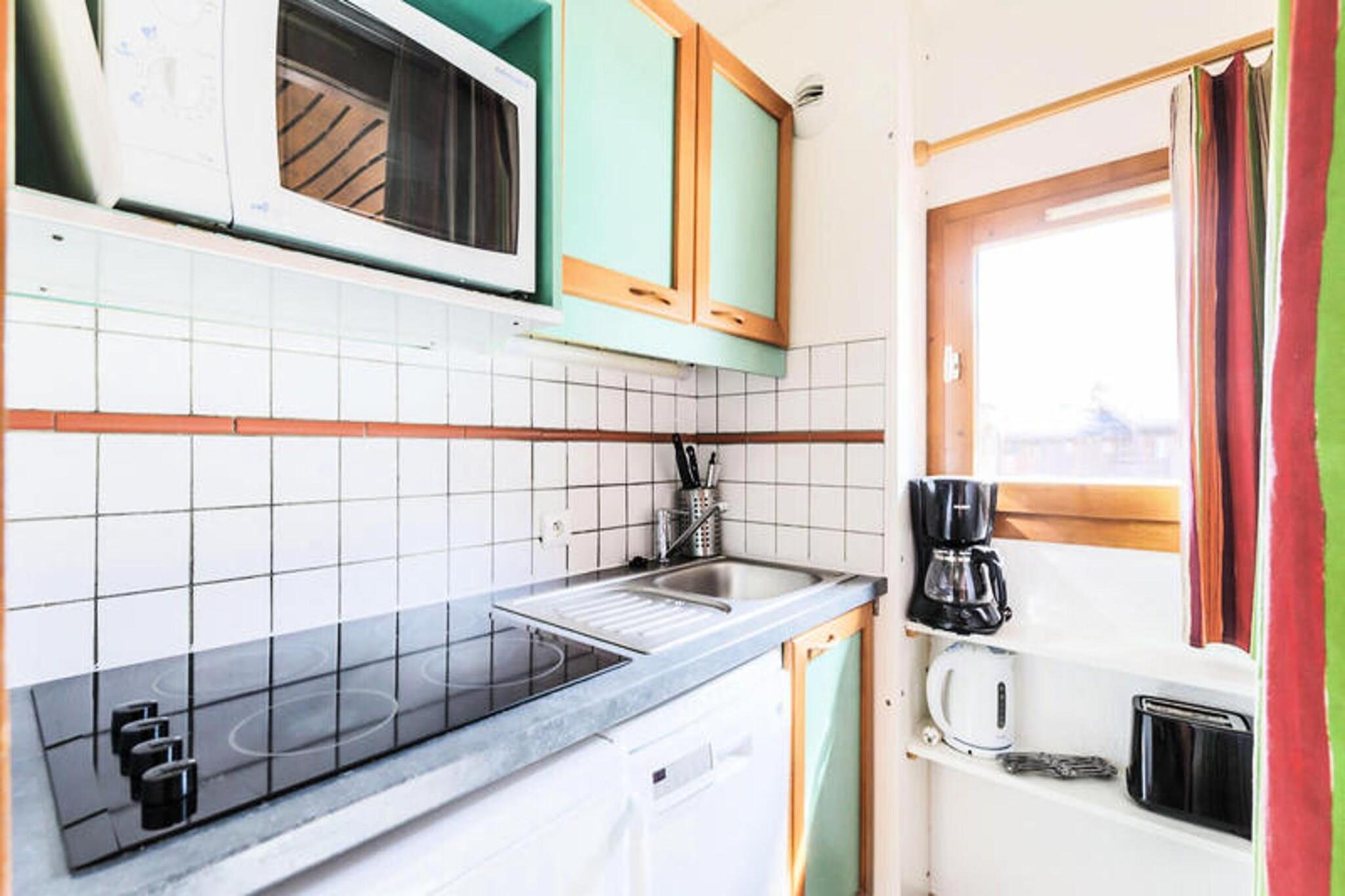 Denne hyggelige lejlighed, beliggende i en hytte af træ og sten, tilbyder en sovesofa til to gæster, et kabineområde med køjesenge og et privat badeværelse med toilet. Kæledyr er velkomne mod et tillægsgebyr, og gratis overdækket parkering er tilgængelig i sommermånederne. Der tilbydes trådløs internetadgang mod et tillægsgebyr, og rengøringsservice kan arrangeres mod et gebyr. Lejligheden har også en nordvendt altan med naturskøn udsigt over dalen, hvilket giver et fredeligt tilflugtssted efter en dag med udendørs aktiviteter. Hytten har en ideel beliggenhed i landsbyens centrum med direkte adgang til pisterne, hvilket gør den perfekt til skiløb og anden vintersport. I nærheden finder du et udvalg af butikker, caféer og underholdningssteder samt en restaurant, der serverer lækre lokale specialiteter. Markeder og andre attraktioner er inden for gåafstand, hvilket sikrer masser af muligheder for fritid og udforskning under dit ophold. Indvendigt har lejligheden et halvåbent køkkenområde med væsentlige apparater, selvom den mangler en separat spiseplads. Boligrummet er lyst og funktionelt med spisebord og stole for ekstra komfort. Ejendommen har også et privat badeværelse med et vandkloser og en balkon for at nyde udsigten. Sengelinned og håndklæder er tilgængelige mod et ekstra gebyr, og slutrengøring er obligatorisk.