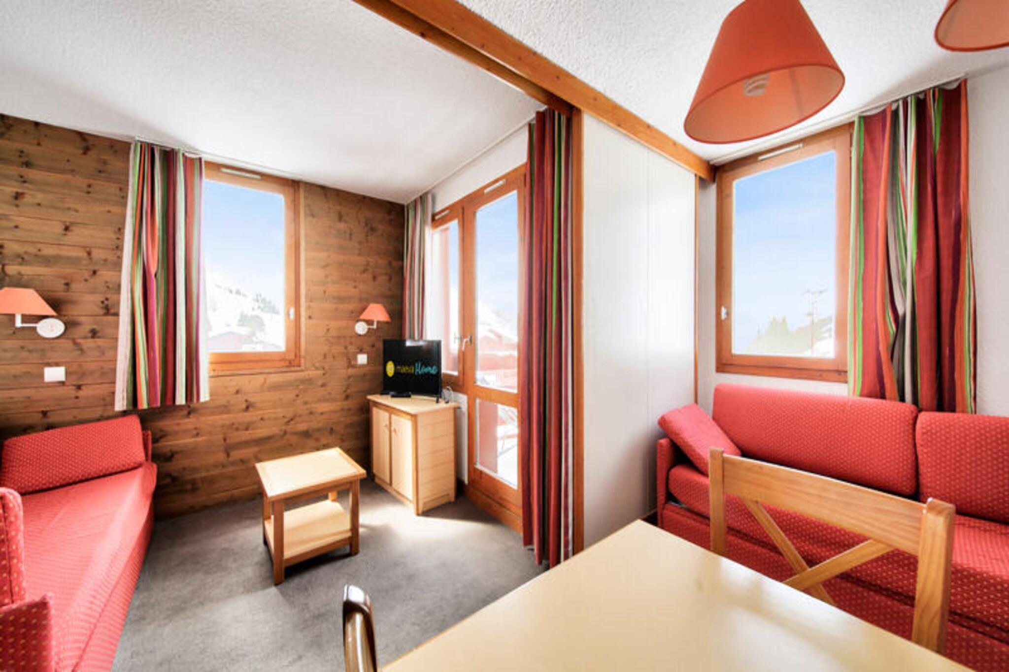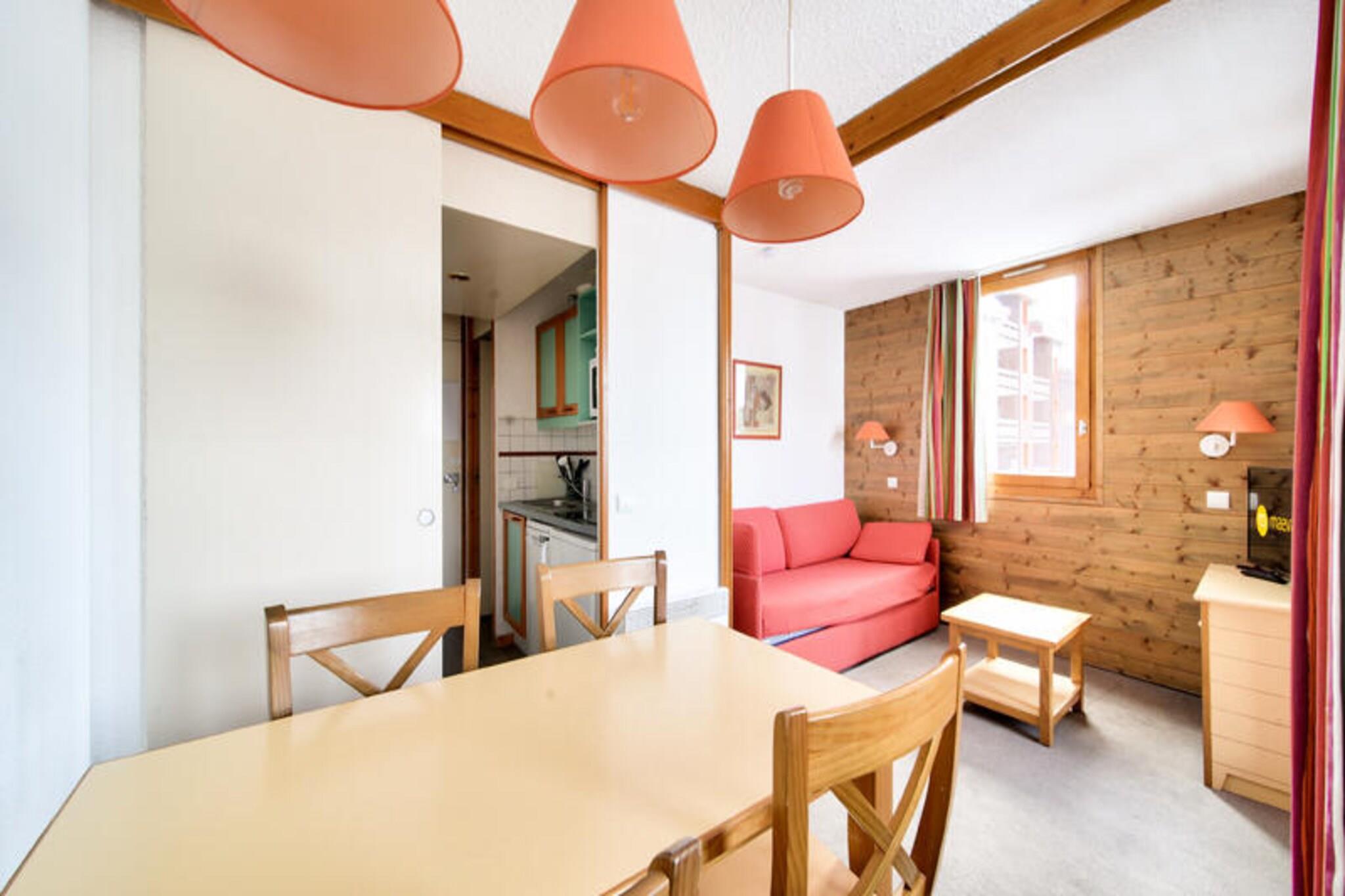 Denne hyggelige studiolejlighed kan rumme op til fire gæster med en sovesofa og tilbyder et kæledyrsvenligt miljø (mod ekstra gebyr). Det omfatter et privat badeværelse, men ingen separat vandkloset. En altan med en smuk daludsigt forstærker oplevelsen. Wi-Fi er tilgængeligt mod et ekstra gebyr, og rengøring kan arrangeres efter anmodning. Parkering er gratis i sommermånederne. Ved foden af ??pisterne giver lejligheden direkte adgang til ski-in/ski-out, ideel for vintersportelskere. Landsbyens centrum, kun en kort gåtur væk, byder på butikker, caféer og markeder. Gæsterne kan nyde lokale retter fra Savoyard på nærliggende restauranter, herunder K2, som er bekvemt placeret tæt på. Denne placering er perfekt til udendørs aktiviteter og afslapning. Lejligheden har et halvåbent køkken, perfekt til enkle måltider. Det har et spisebord til fem og en komfortabel opholdsstue. Badeværelset er i god stand, og rummet er lyst og indbydende. Yderligere tjenester såsom sengetøj, håndklæder og rengøring er tilgængelige mod et ekstra gebyr, hvilket giver et bekvemt og fleksibelt ophold.