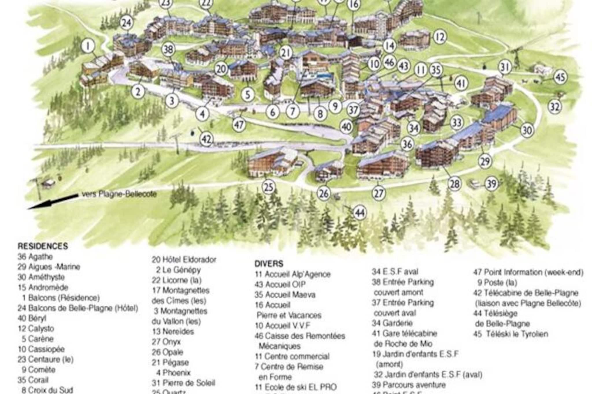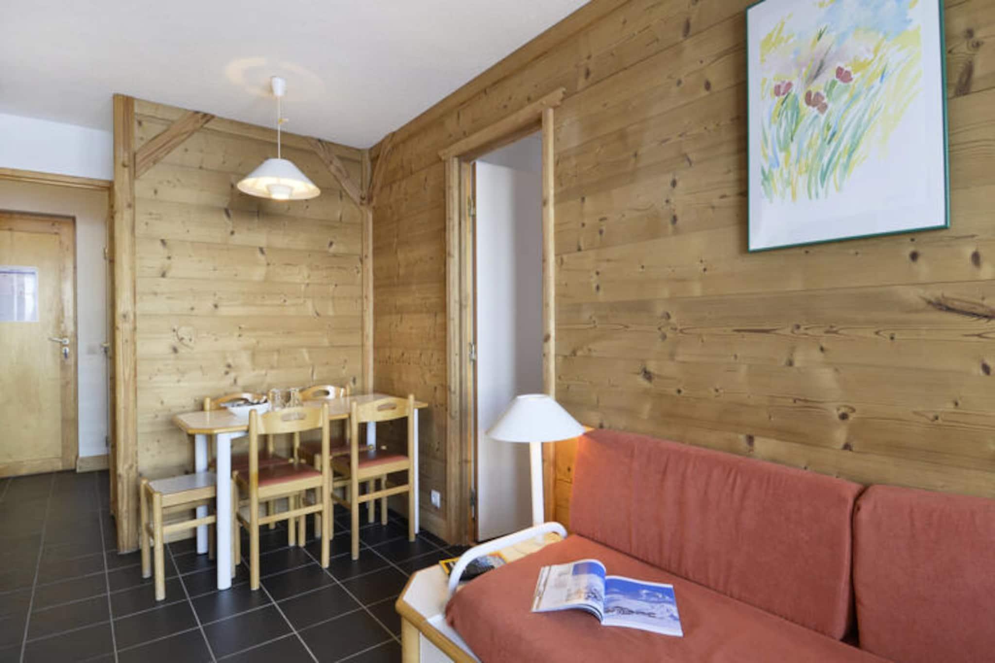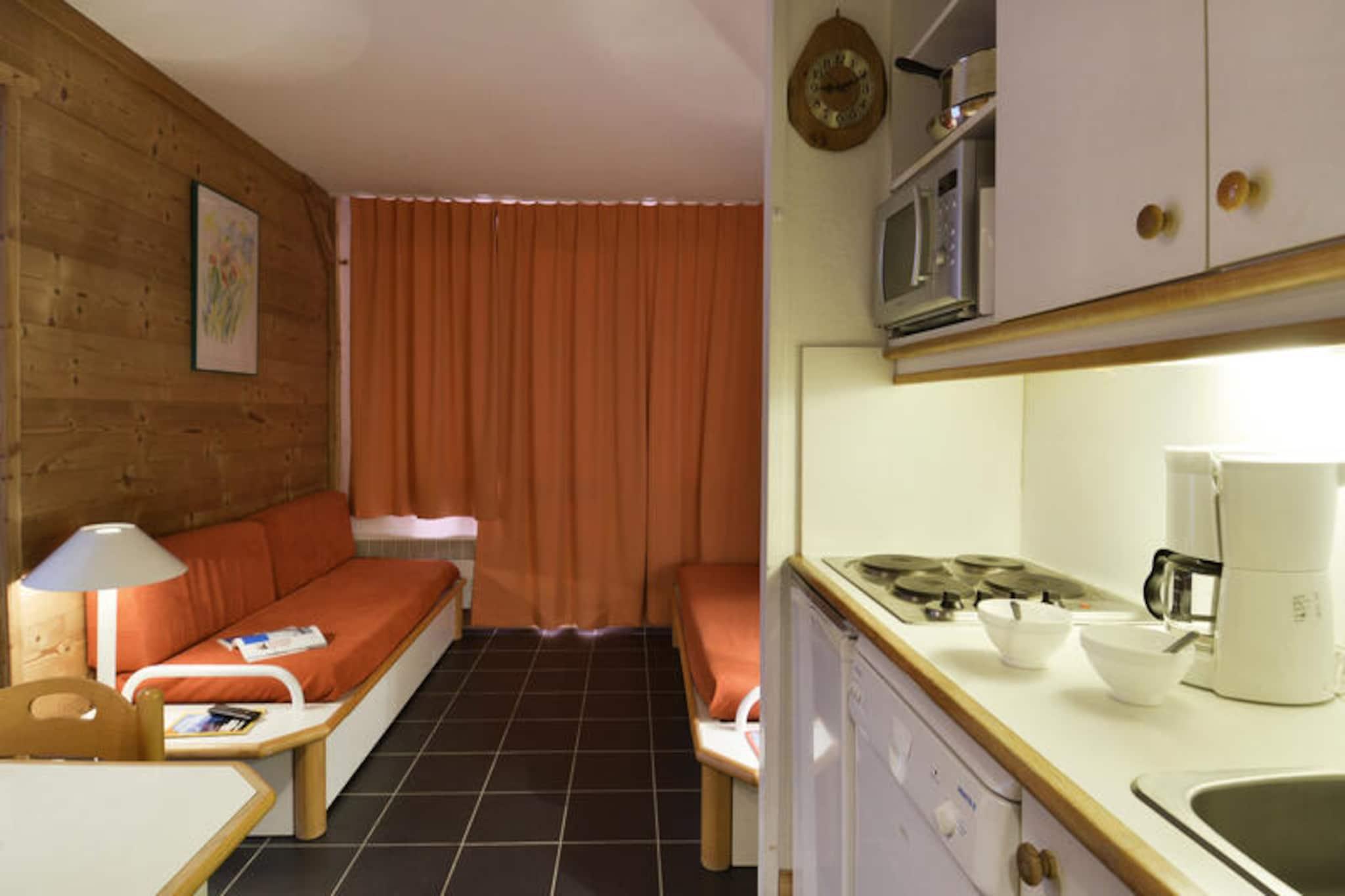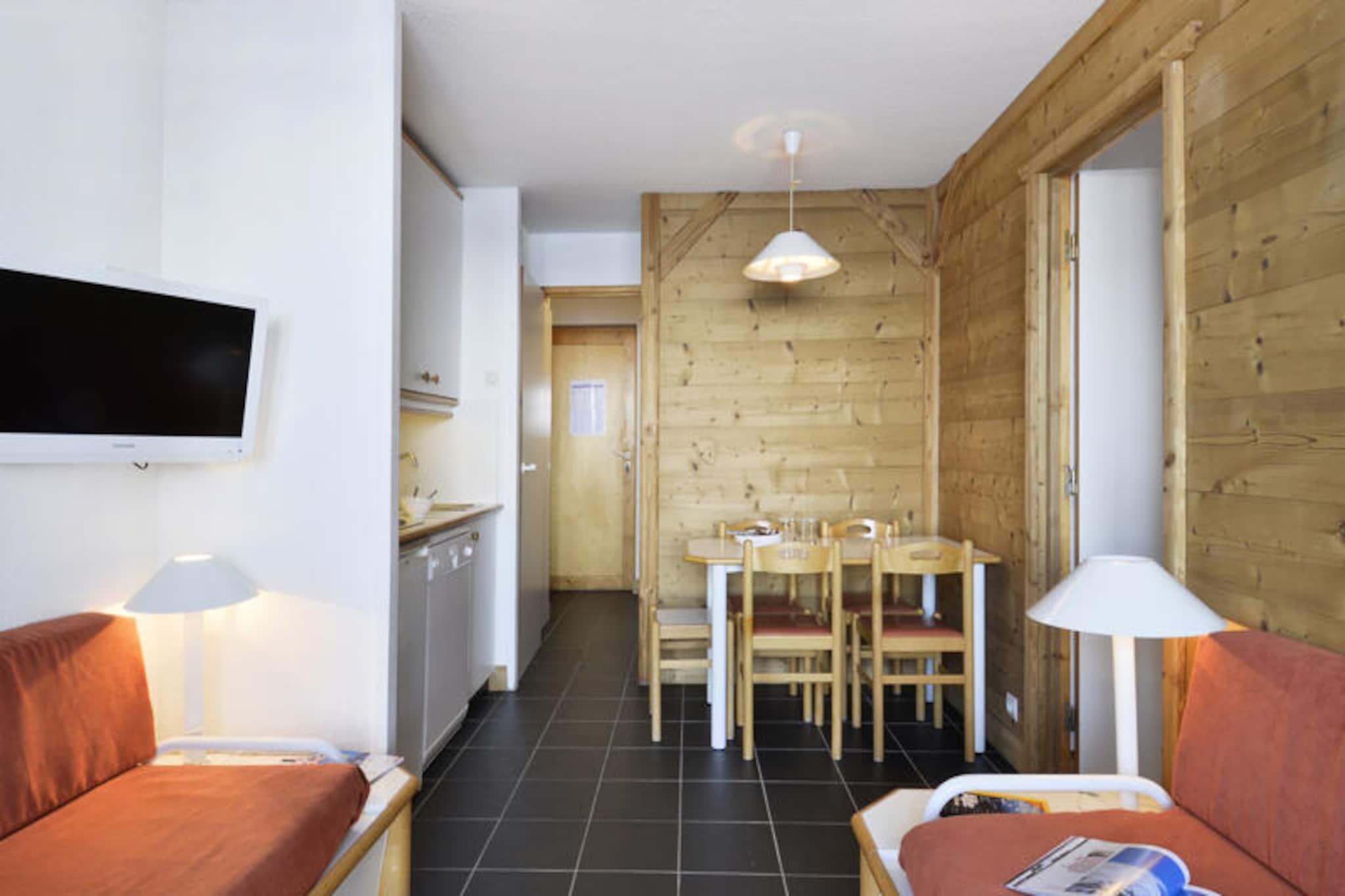 I hjertet af det fortryllende Belle Plagne tilbyder denne hyggelige lejlighed et varmt alpint tilflugtssted med direkte adgang til pisterne. Forestil dig at træde ud af din dør og glide direkte ind i den uberørte sne, omgivet af de franske alpers betagende skønhed. Beliggende i stueetagen af ??en charmerende bolig med syv etager og en elevator, sørger denne sydvendte lejlighed for, at du vågner op til sollys og en fantastisk udsigt over pisterne hver morgen. Perfekt til par eller små familier, kombinerer den komfort og bekvemmelighed i et af de mest maleriske hjørner af feriestedet. Den 27 m² store lejlighed har komfortabel plads til op til fem gæster. Stuen har to sovesofaer, en udtræksseng og et fladskærms-tv, hvilket skaber et hyggeligt rum at slappe af efter en dag med eventyr. Køkkenet, der er udstyret med fire elektriske kogeplader, en mikrobølgeovn, en grill, en opvaskemaskine og et køleskab, giver alt hvad du behøver for at tilberede solide måltider. Et separat soveværelse med en dobbeltseng sikrer afslappende nætter, mens badeværelset har et badekar til et afslappende bad. Med et separat toilet og individuelt skiskab er hver detalje omhyggeligt designet til din bekvemmelighed. Beliggende i den øvre del af feriestedet tilbyder boligen betalt parkeringskælder med direkte adgang, hvilket gør dit ophold problemfrit. Alle nødvendige butikker ligger kun 100 meter væk, hvilket sikrer, at du har alt, hvad du behøver, inden for rækkevidde. Uanset om du er her for at stå på ski, udforske eller blot slappe af, tilbyder Belle Plagne magiske omgivelser for uforglemmelige minder. Med sin kæledyrsvenlige politik og valgfri betalt Wi-Fi byder denne lejlighed dig velkommen til at opleve Alpernes charme i enhver sæson. Fra den friske bjergluft til den pulserende landsbyatmosfære er dette din perfekte base for en alpin ferie.