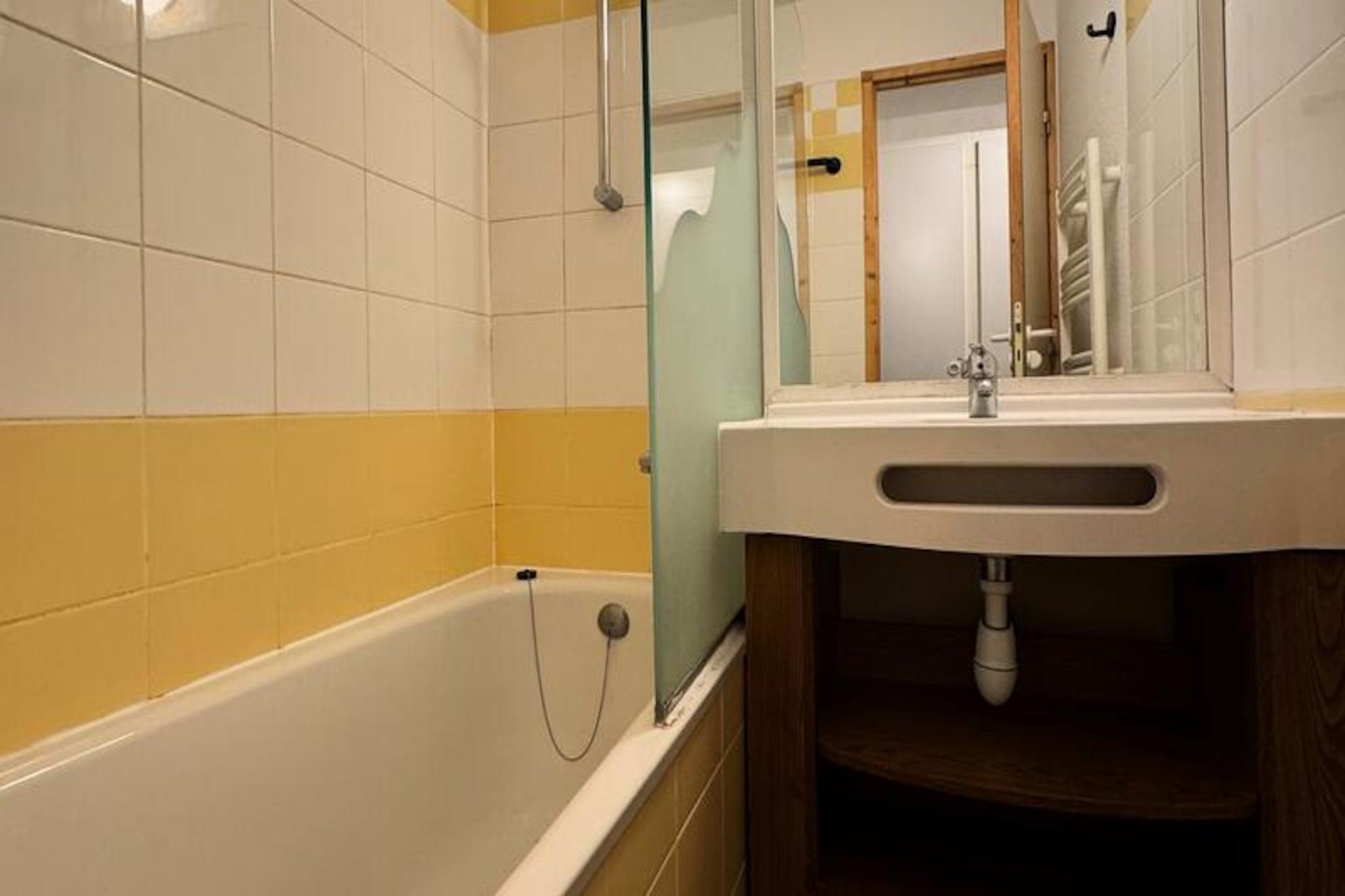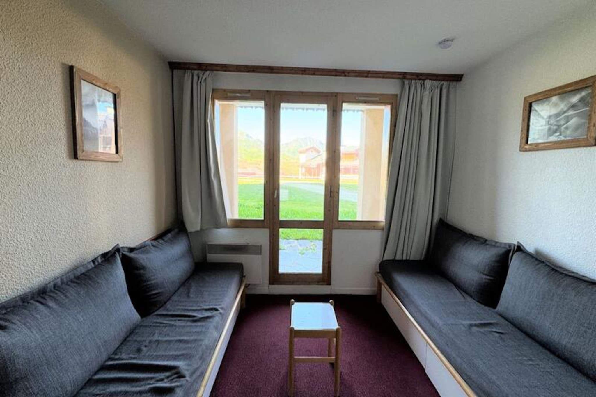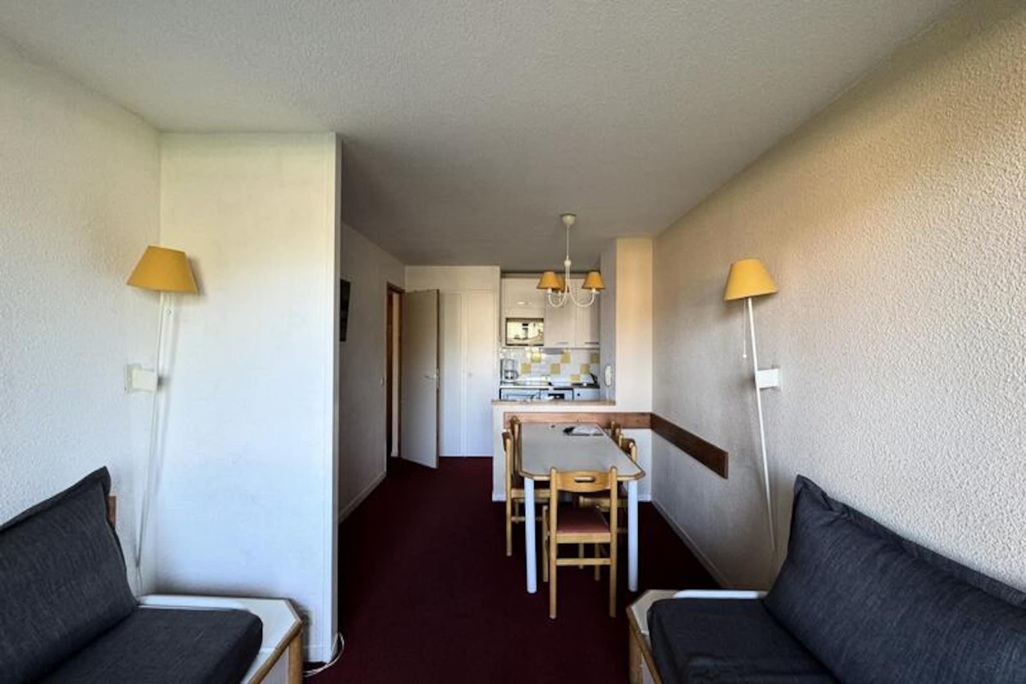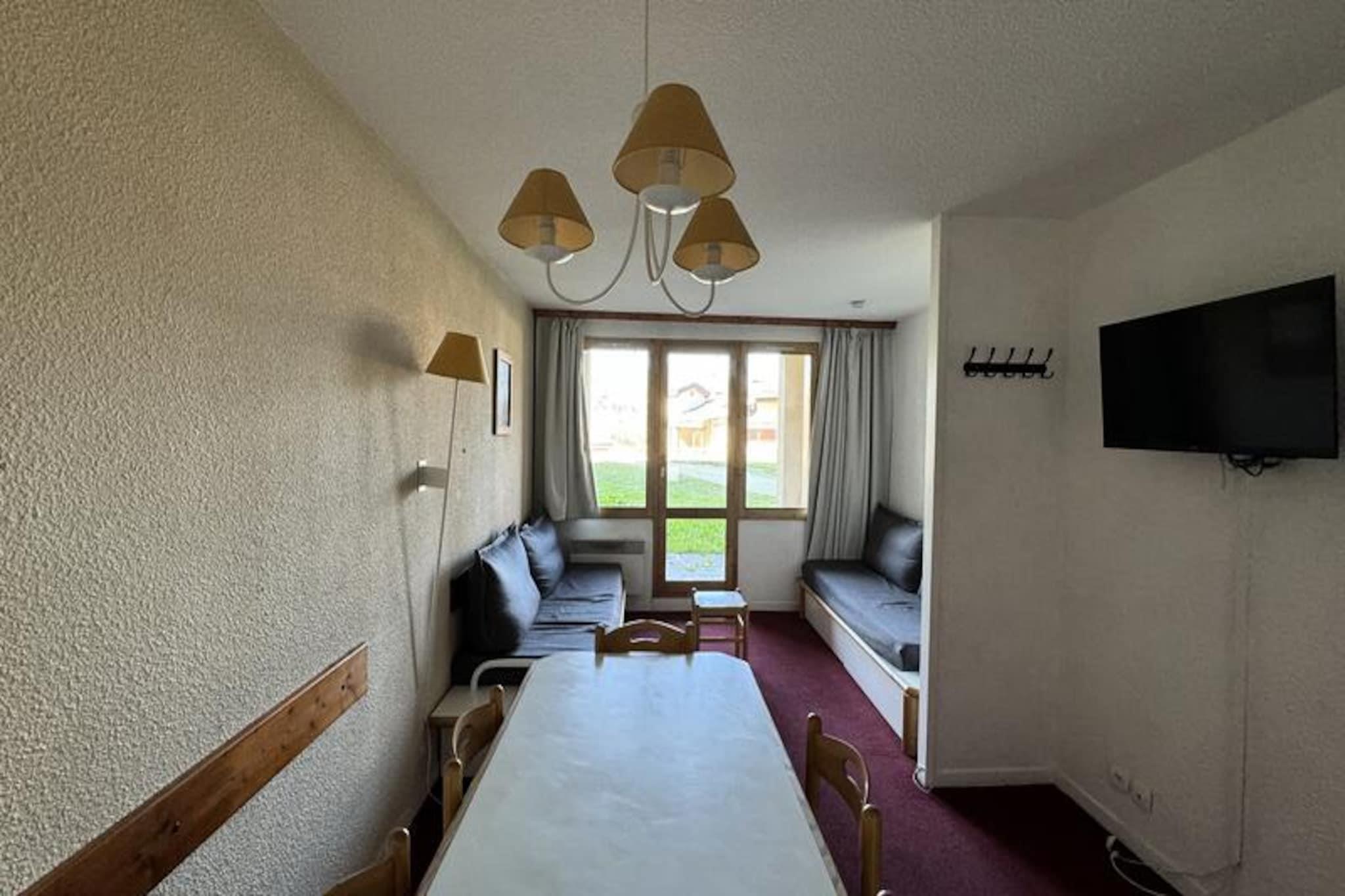 Højt oppe i den fredfyldte alpelandsby Belle Plagne tilbyder denne charmerende ski-in/ski-out-lejlighed en plads på første række til de uberørte pister i skiområdet Paradiski. Forestil dig at træde direkte ud i sneen fra dit opholdssted i stueetagen med det betagende bjerglandskab som baggrund. Boligen, der ligger i den øvre del af resortet, kombinerer bekvemmelighed med ro, hvilket gør den til den perfekte base for dit næste alpine eventyr. Indenfor er den 35 m² store lejlighed omhyggeligt designet til at rumme op til seks gæster. Det åbne køkken er udstyret med en kombiovn, opvaskemaskine, keramisk kogeplade og køleskab, hvilket sikrer, at du har alt, hvad du behøver for at tilberede solide måltider efter en dag på pisterne. Opholdsstuen har to enkeltsofaer og en udtræksseng, mens det hyggelige soveværelse har en komfortabel dobbeltseng. Yderligere sovepladser inkluderer køjesenge i entréen. Et fladskærms-tv, badekar og separat toilet bidrager til bekvemmeligheden, mens den sydvestvendte orientering sikrer masser af naturligt lys og en fantastisk udsigt over pisterne. Kun 100 meter fra boligen finder du et udvalg af butikker, hvilket gør det nemt at købe de nødvendige varer eller nyde et måltid ude. Den betalte parkeringskælder med direkte adgang til boligen gør dit ophold endnu nemmere. Uanset om du står på ski om vinteren eller udforsker bjergstierne om sommeren, tilbyder Belle Plagne charme og aktiviteter året rundt. Med sin uovertrufne beliggenhed, moderne faciliteter og hyggelige atmosfære er denne lejlighed et ideelt valg for familier, venner eller par, der ønsker at fordybe sig i de franske alpers skønhed. Skab uforglemmelige minder i dette alpine paradis, hvor eventyr og afslapning går hånd i hånd.