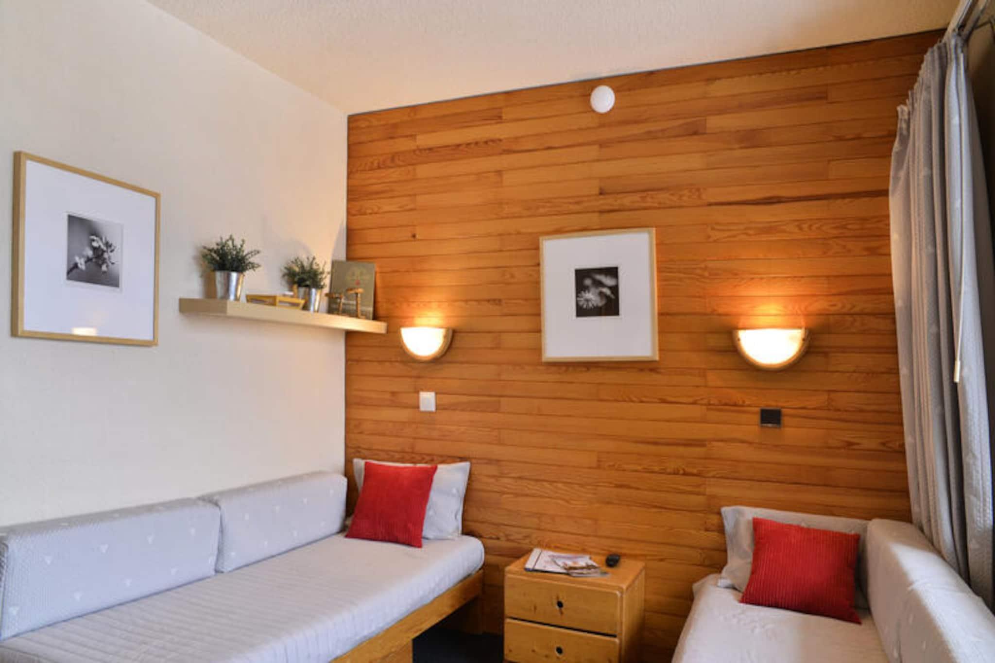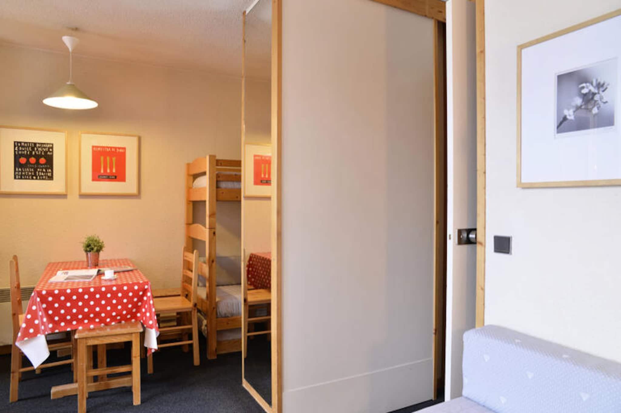 Højt over den fredfyldte dal Plagne Bellecôte tilbyder dette charmerende studie et hyggeligt alpint tilflugtssted for op til fire gæster. Forestil dig at vågne op til frisk bjergluft og eventyrlyst med direkte adgang til pisterne kun få skridt fra din dør. Uanset om du er her for at grave dig gennem uberørt sne eller udforske naturskønne stier i de varmere måneder, placerer denne bolig dig i hjertet af begivenhederne i Paradiski-området. Den indbydende lobby og sikre digitale adgang sikrer en problemfri og komfortabel ankomst og sætter tonen for et uforglemmeligt ophold. \n\nIndenfor er det delbare studie omhyggeligt designet til at maksimere plads og komfort. Den nordvestvendte balkon giver et roligt sted at slappe af efter en dag med udforskning, mens det separate køkken er udstyret med moderne faciliteter, herunder opvaskemaskine, kombineret mikrobølgeovn, køleskab og keramisk kogeplade. Opholdsstuen har tre enkeltsenge og to køjesenge samt et fladskærms-tv til afslappende aftener. Badeværelset har badekar, og det separate toilet er praktisk for familier eller små grupper. Tæpper er inkluderet, men gæsterne skal medbringe deres egne lagner og håndklæder. \n\nResidensen ligger kun 200 meter fra butikker og spisesteder og tilbyder nem adgang til alt, hvad du behøver. Overdækkede parkeringspladser og betalt udendørs og indendørs parkering sikrer problemfri transport, mens individuelle skibokse holder dit udstyr sikkert. Selvom kæledyr ikke er tilladt, og adgang til poolen koster et gebyr, gør residensens nærhed til pisterne og de livlige resortfaciliteter det til et ideelt valg for både vintersportsentusiaster og naturelskere. \n\nUanset om du søger spændende nedkørsler, fredelige vandreture eller blot en afslappende ferie i de franske alper, inviterer dette studie i Plagne Bellecote dig til at skabe varige minder i en af ??Europas mest ikoniske bjergdestinationer.