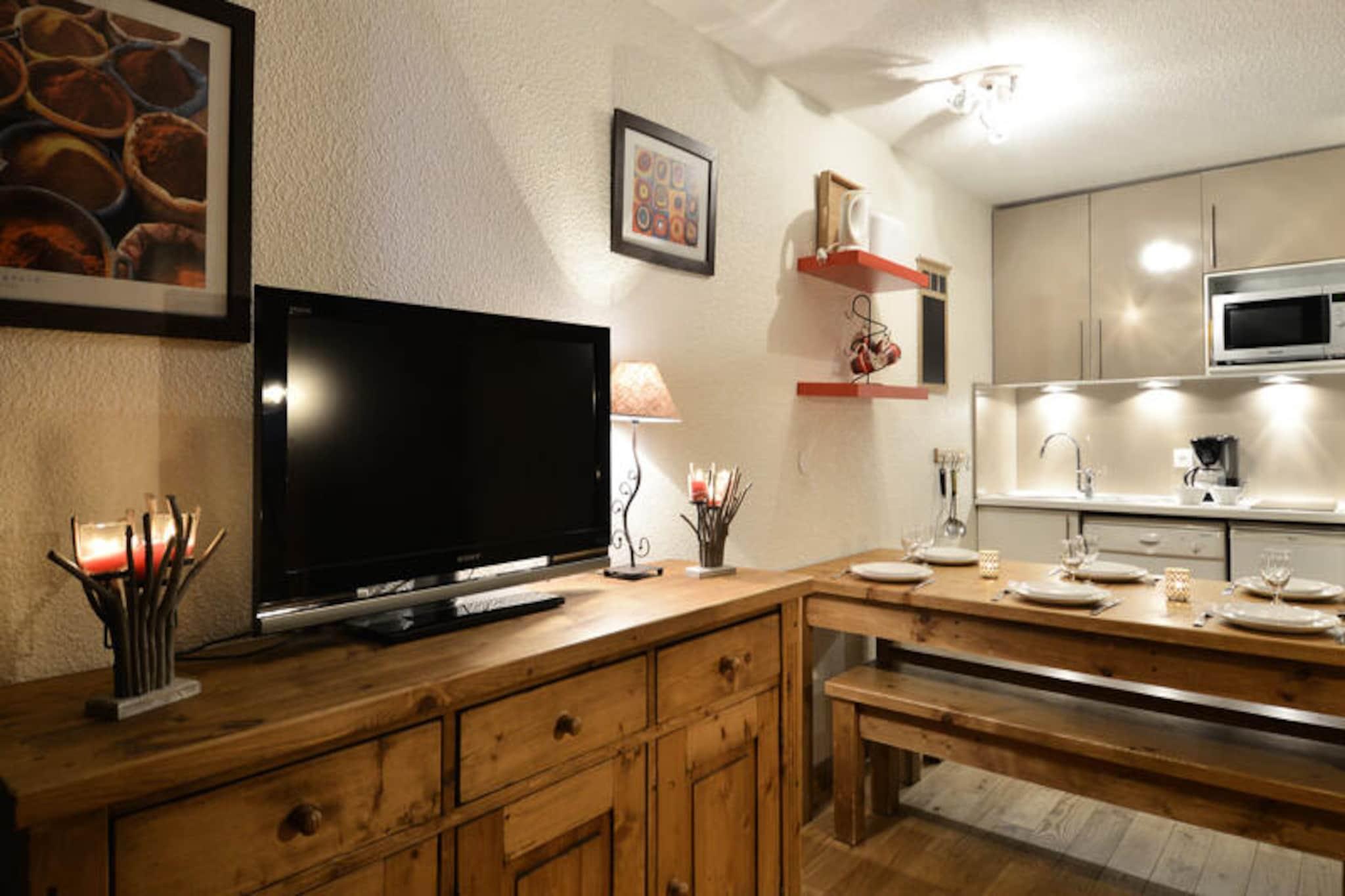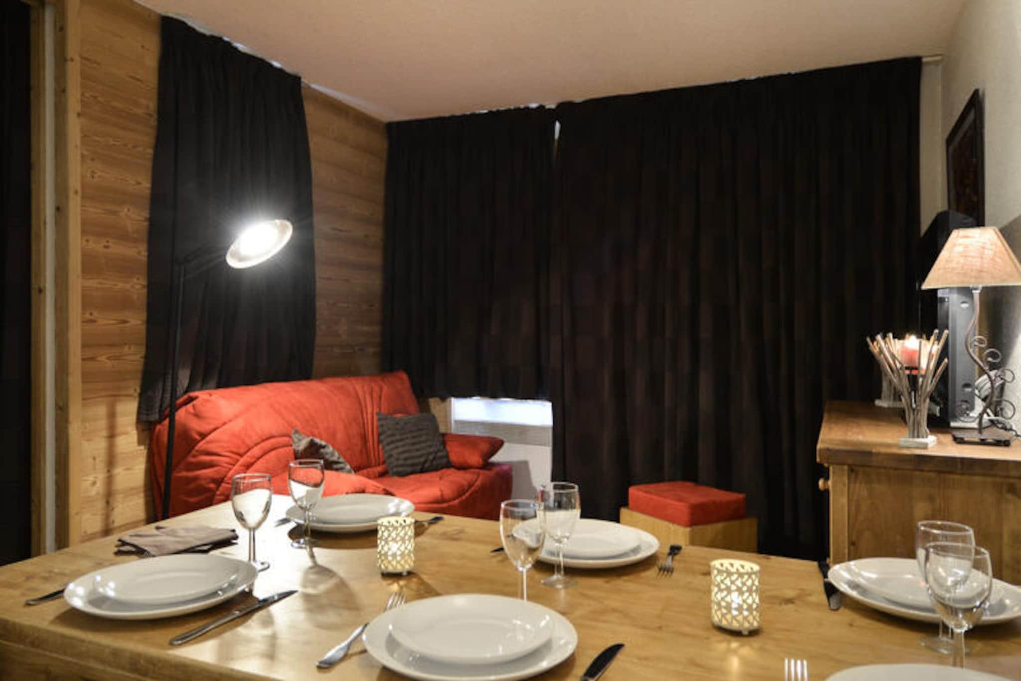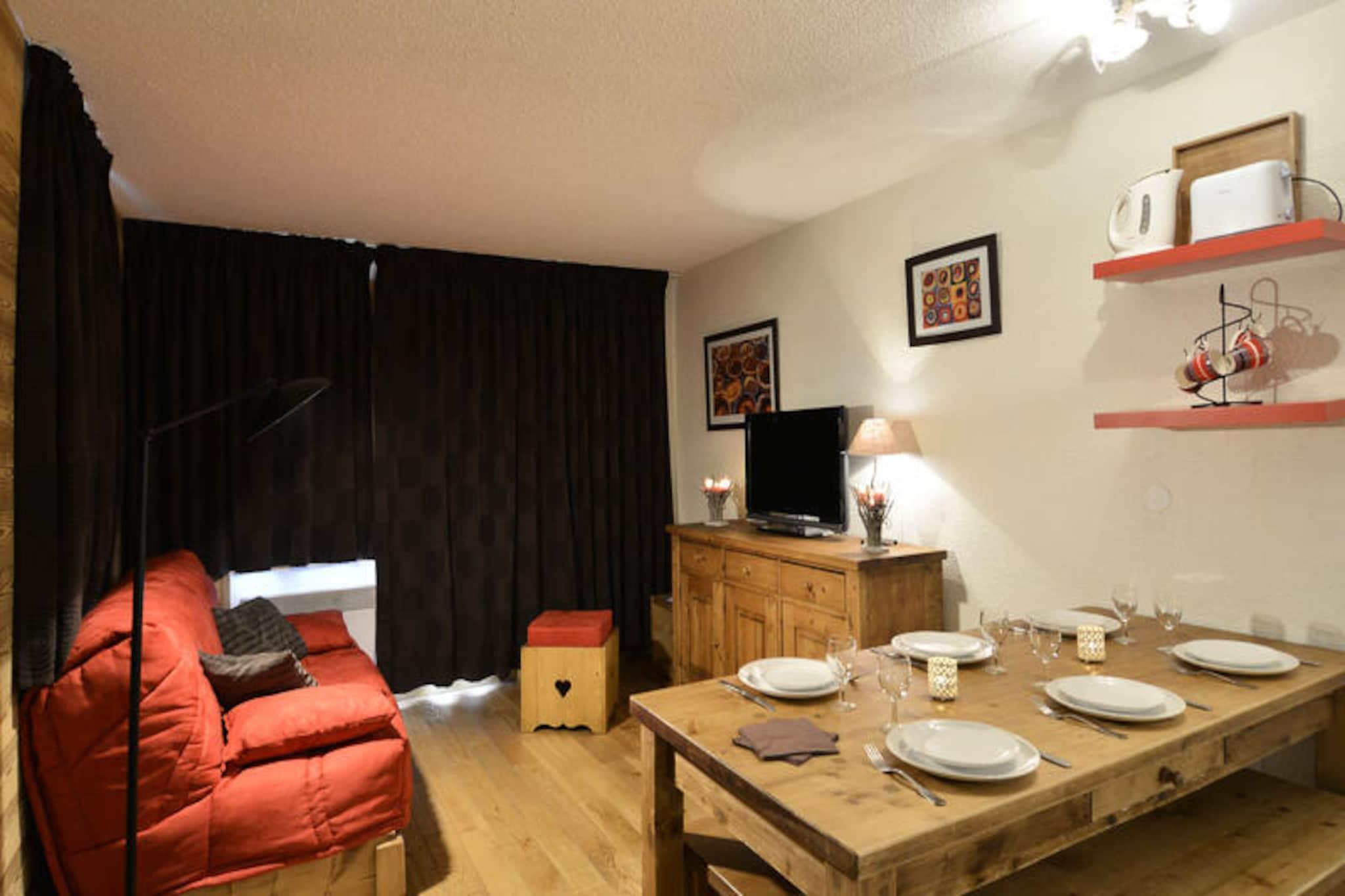 Højt over det fortryllende Belle Plagne-resort inviterer denne hyggelige lejlighed dig til at opleve magien i de franske alper. Forestil dig at vågne op til de solbeskinnede pister lige uden for dit vindue, med den uberørte sne, der kalder på en start på dagen. Uanset om du er her for spændende skieventyr eller et roligt bjergophold, tilbyder denne ejendom den perfekte balance mellem komfort og bekvemmelighed i et af regionens mest maleriske omgivelser. \n\nDenne nyrenoverede 36 m² store lejlighed i stueetagen er omhyggeligt designet til at rumme op til seks gæster. Stuen har en dobbelt sovesofa og et fladskærms-tv, hvilket skaber et indbydende rum at slappe af efter en dag på pisterne. Køkkenet, der er udstyret med keramisk kogeplade, mikrobølgeovn og opvaskemaskine, gør det nemt at tilberede måltider. To hyggelige soveværelser har en dobbeltseng og køjesenge, hvilket sikrer en afslappende nat for alle. Det moderne badeværelse med bruseniche og separat toilet bidrager til komforten, mens parketgulv giver en varm, alpin charme. \n\nBeliggende i den øverste del af resortet tilbyder boligen direkte adgang til pisterne, hvilket gør den til en drøm for skientusiaster. Butikker er bekvemt placeret kun 100 meter væk, og underjordisk parkering med direkte adgang til bygningen sikrer problemfri ankomst. For ekstra bekvemmelighed er der individuelle skibokse og betalt Wi-Fi på resortet. \n\nUanset om du udforsker Paradiski-området eller blot nyder den betagende udsigt, er denne lejlighed din port til uforglemmelige alpine minder. Med sin førsteklasses beliggenhed og gennemtænkte faciliteter er det det ideelle valg for familier, venner og alle, der søger skønheden i Belle Plagne.