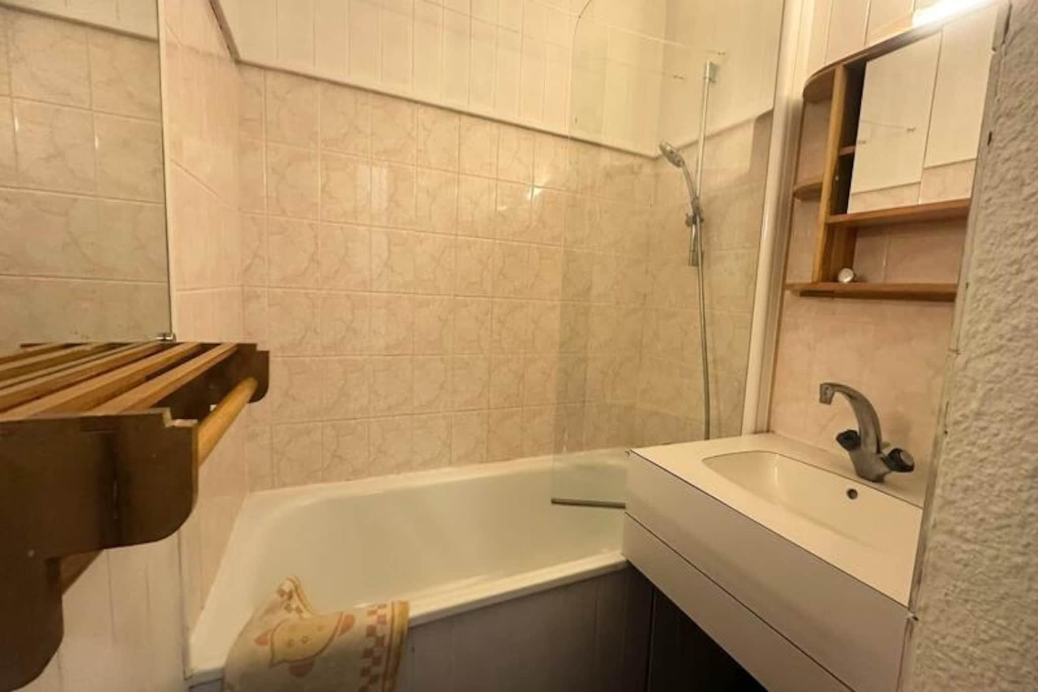 Højt over Tarentaise-dalen inviterer denne charmerende lejlighed i Plagne Bellecote dig til at opleve magien i de franske alper. Med sin sydøstvendte balkon, der tilbyder en betagende udsigt over de snedækkede pister, føles hvert øjeblik her som et postkort, der kommer til live. Uanset om du søger spændende skieventyr eller rolig alpin ro, placerer denne bolig dig i hjertet af det hele, kun få skridt fra snefronten og omgivet af feriestedets pulserende energi. \n\nIndenfor kan lejligheden prale af en hyggelig, men funktionel indretning, perfekt til op til fem gæster. Det separate køkken er fuldt udstyret med ovn, mikrobølgeovn, køleskab, opvaskemaskine og elektriske kogeplader, hvilket gør det nemt at tilberede solide måltider efter en dag på pisterne. Stuen har to enkeltsenge og en udtræksseng samt et fladskærms-tv til afslappede aftener. Soveværelset har to ekstra enkeltsenge, der sikrer en afslappende nat for alle. Et badeværelse med badekar og et separat toilet gør dit ophold mere behageligt, mens dyner er til rådighed for ekstra komfort. \n\nTræd udenfor og oplev alt, hvad du behøver, inden for 100 meter, fra butikker til spisesteder. Residensen tilbyder også gratis adgang til en pool, hvilket giver et forfriskende touch til din alpine ferie. For dem, der har brug for at holde sig forbundet, er der betalt Wi-Fi på resortet tilgængeligt. Med sikre skibokse og både indendørs og udendørs parkeringsmuligheder er dit ophold lige så problemfrit, som det er behageligt. \n\nUanset om du er her for vintersport eller sommervandreture, er Plagne Bellecote den perfekte destination for uforglemmelige minder i de franske alper. Lad den friske bjergluft og de fantastiske udsigter inspirere dit næste eventyr.