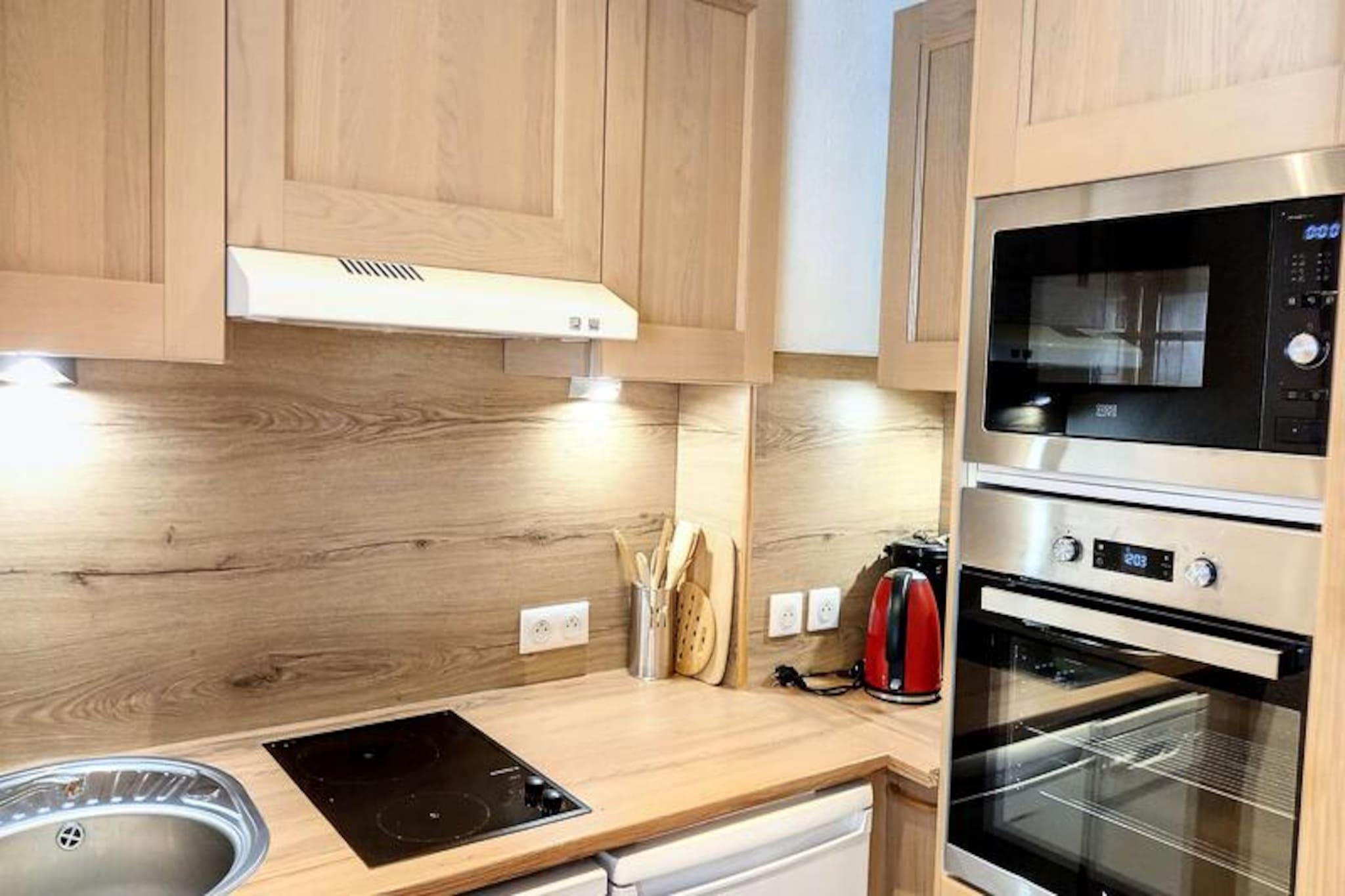 I hjertet af Plagne Bellecôte tilbyder denne charmerende lejlighed på 28 m² et hyggeligt tilflugtssted for op til fire gæster. Beliggende på 5. sal i Carroley A-residensen, tilbyder den nem adgang til den pulserende snefront, kun få skridt væk. Residensen kan prale af ni etager med elevator og sikre skibokse, hvilket sikrer bekvemmelighed og ro i sindet til dine alpine eventyr. Selvom balkonen vender mod nord og ikke har udsigt over pisterne, tilbyder den et roligt sted at slappe af efter en dag på bjerget. \n\nIndvendigt er lejligheden for nylig blevet renoveret for at kombinere moderne komfort med praktiske bekvemmeligheder. Det åbne køkken er fuldt udstyret med en almindelig ovn, mikrobølgeovn, keramisk kogeplade, køleskab, opvaskemaskine og vaskemaskine, hvilket gør madlavning til en leg. Stuen har en komfortabel sovesofa til to og et fladskærms-tv, mens det separate soveværelse har en hyggelig dobbeltseng. Badeværelset har et badekar, og der er et separat toilet for ekstra bekvemmelighed. Uden tæpper føles lejligheden frisk og nem at vedligeholde, og der er tæpper til rådighed til dit ophold. Gæsterne kan nyde gratis adgang til resortets swimmingpool, hvilket tilføjer et strejf af afslapning til deres ferie. Alle nødvendige butikker ligger kun 100 meter væk, og der er både indendørs og udendørs betalt parkering. For dem, der rejser med kæledyr, er de velkomne mod et mindre tillægsgebyr. Plagne Bellecôtes centrale beliggenhed gør det til en ideel base for at udforske Paradiski-området, der tilbyder uendelige muligheder for skiløb, snowboarding og bjergeventyr. Uanset om du er her for at køre på pisterne eller blot nyde den alpine atmosfære, lover denne lejlighed et mindeværdigt ophold i hjertet af de franske alper.