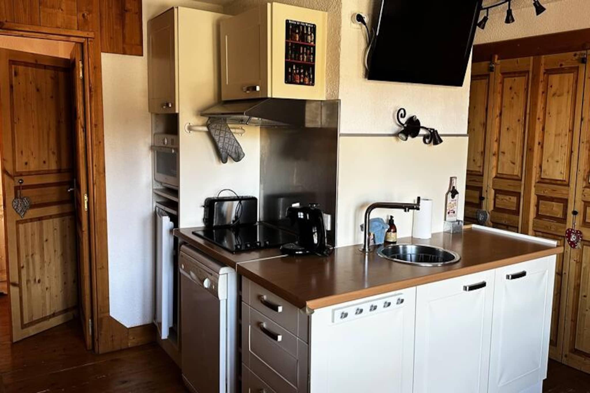 I hjertet af det maleriske Belle Plagne-resort tilbyder dette charmerende alpine feriested den perfekte balance mellem komfort og bekvemmelighed til din bjergferie. Med sin sydvendte terrasse med udsigt over pisterne kan du vågne op til en betagende udsigt og træde ind i feriestedets pulserende energi, kun 100 meter fra skilifterne og de lokale butikker. Uanset om du er her for spændingen ved skiløb eller roen i den alpine atmosfære, placerer denne bolig dig i centrum af det hele. Lejligheden, der strækker sig over 50 m², er omhyggeligt designet til at rumme op til syv gæster. Det åbne køkken er udstyret med en keramisk kogeplade med 4 blus, ovn og opvaskemaskine, hvilket gør det nemt at tilberede måltider efter en dag med eventyr. Den hyggelige stue har to enkeltsenge, en udtræksseng og et fladskærms-tv, perfekt til at slappe af med familie eller venner. To soveværelser tilbyder afslappende soveforhold: et med en dobbeltseng og et andet med køjesenge. Et badeværelse med badekar, et separat brusebad og et separat toilet sikrer bekvemmelighed for alle gæster. Belle Plagne er et paradis for friluftsentusiaster med ski-in/ski-out-adgang og et væld af aktiviteter lige uden for døren. De nærliggende butikker og restauranter tilbyder alt, hvad du behøver for et behageligt ophold, mens feriestedets livlige atmosfære sikrer, at der altid er noget at nyde. Betalingsparkeringskælder er bekvemt placeret kun 50 meter væk, og individuelle skibokse gør opbevaring af dit udstyr problemfri. Uanset om du søger spændende dage på pisterne eller fredelige aftener, hvor du nyder den alpine charme, er denne lejlighed din port til uforglemmelige øjeblikke i de franske alper. Lad Belle Plagnes skønhed fortrylle dig og skabe minder, der vil vare hele livet.